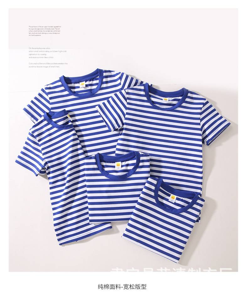 2024 여름 어린이 바다 영혼 셔츠 파란색과 흰색 줄무늬 소년과 소녀 반팔 순수 코튼 네이비 셔츠 선원 복장 복고풍 티셔츠스토어 가기