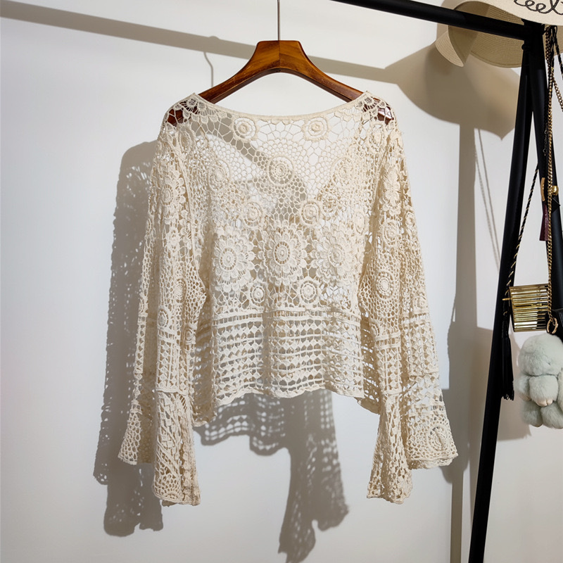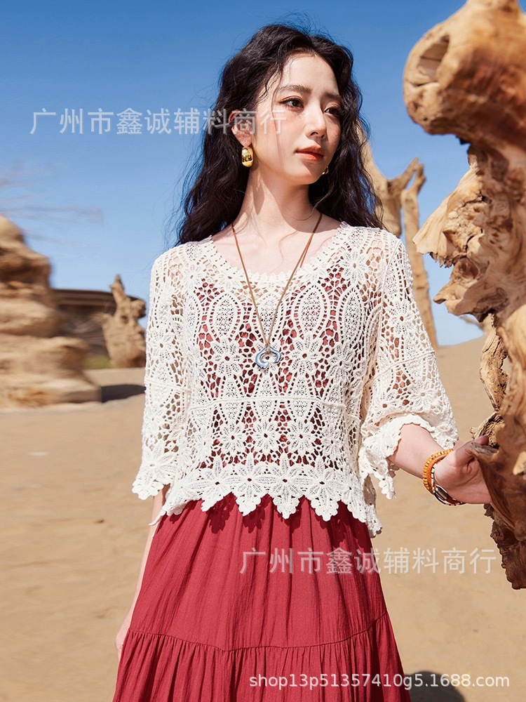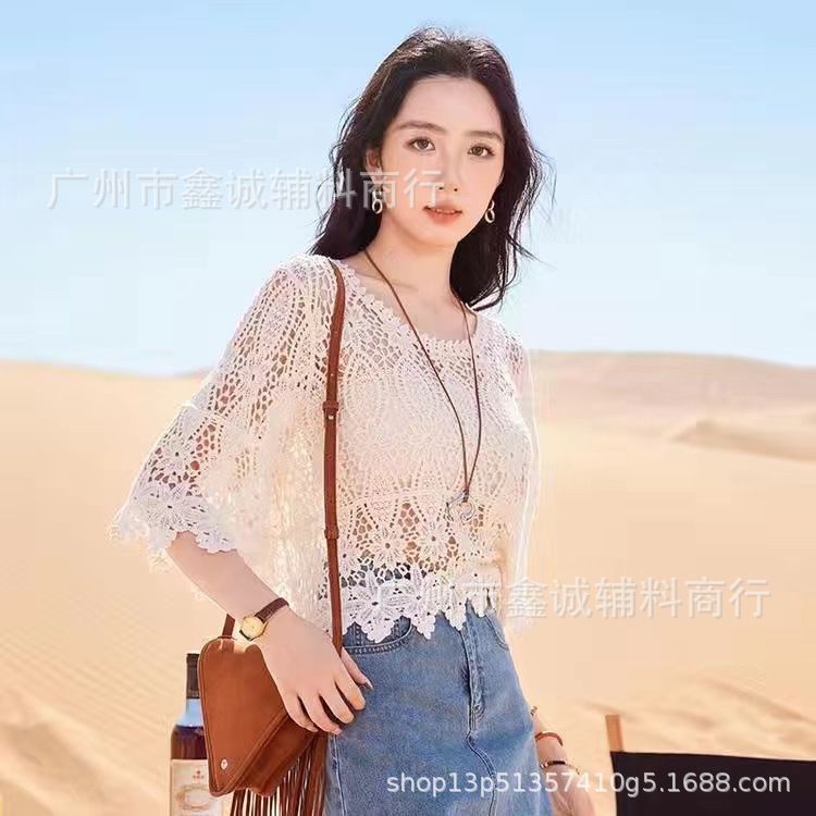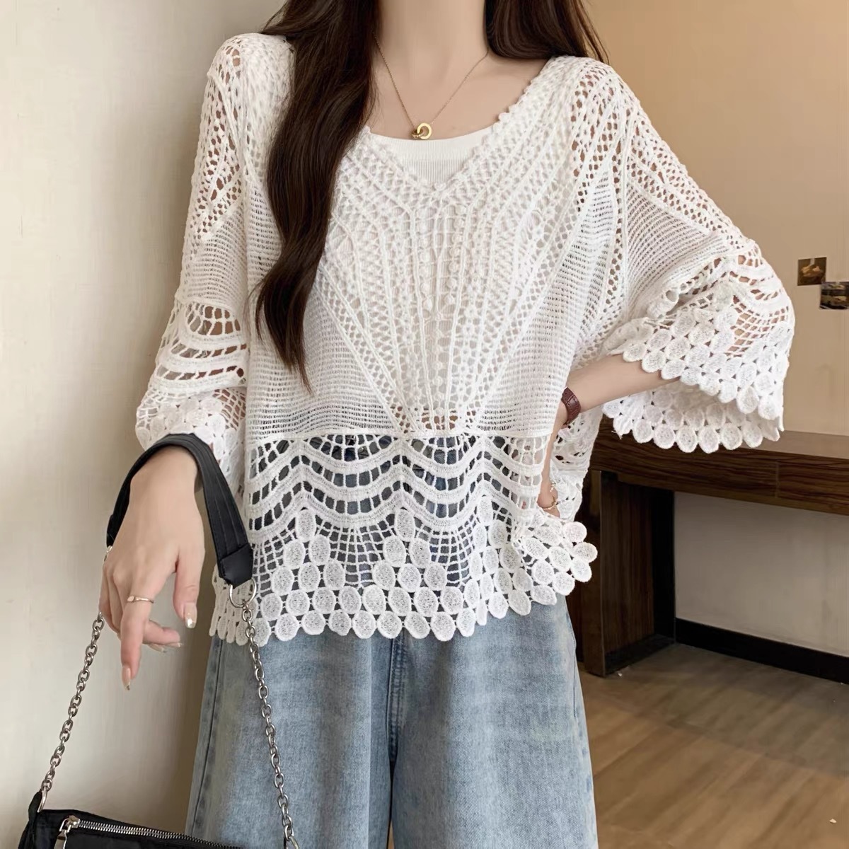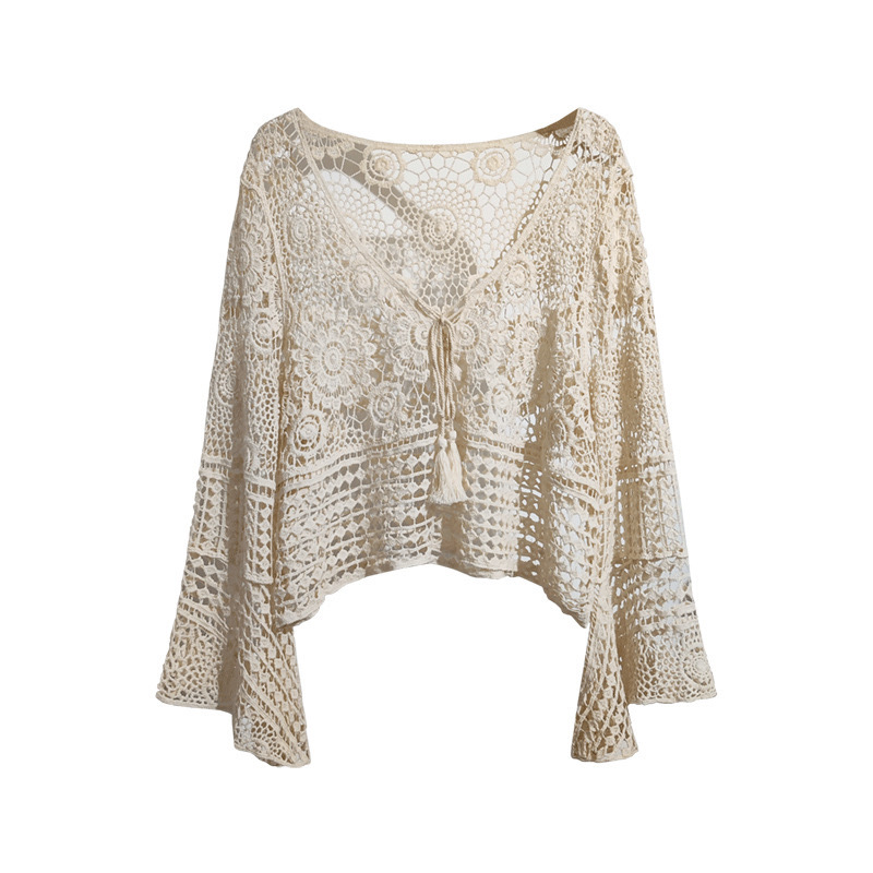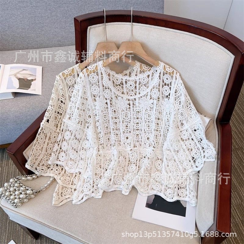 샤넬 스타일 빈 V-넥 니트 스웨터 여성용 여름 얇은 느슨한 드로우 선 스크린 블라우스 디자인 센스 쇼트 탑스토어 가기