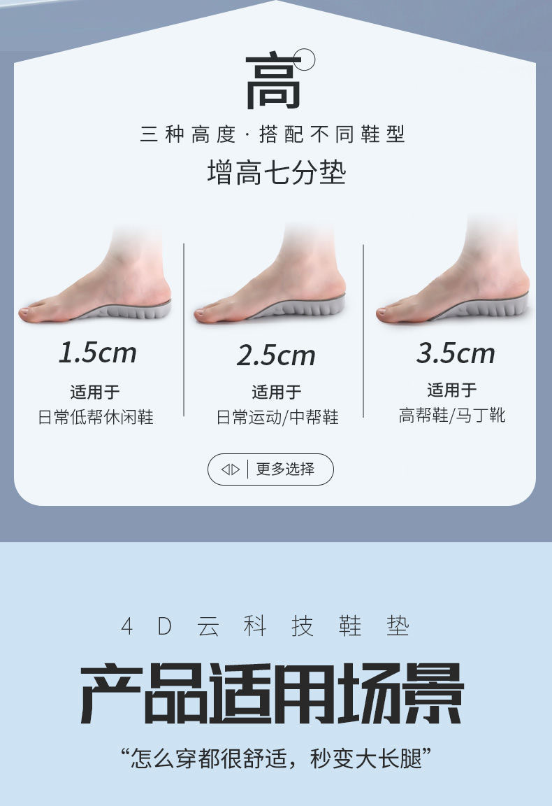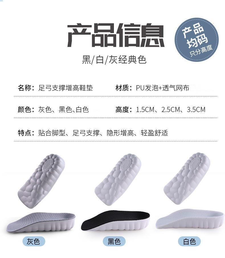내부 강화 깔창 하프 패드 에바 통기성 편안한 보이지 않는 상승 패드 힐 충격 흡수는 도매 분포를 절단 할 수 있습니다스토어 가기