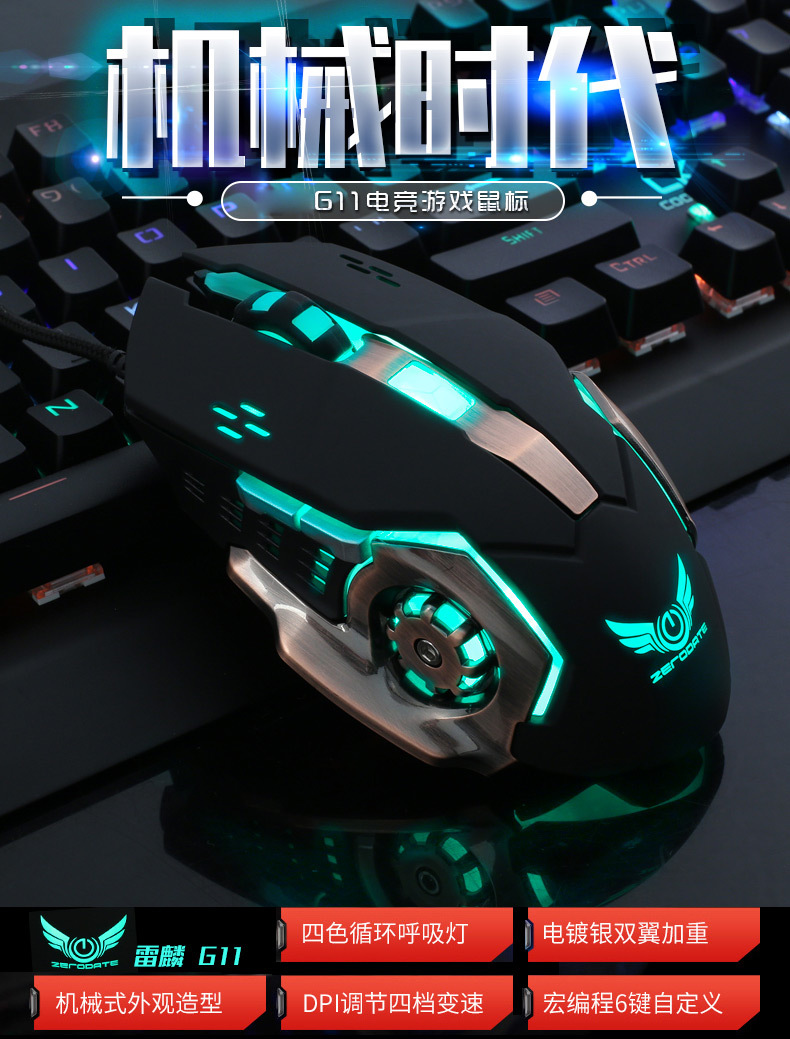 랭글러 G11 게임 전자 스포츠 기계 마우스 매크로 정의 다채로운 빛나는 유선 USB 마우스 공장 직접 공급스토어 가기