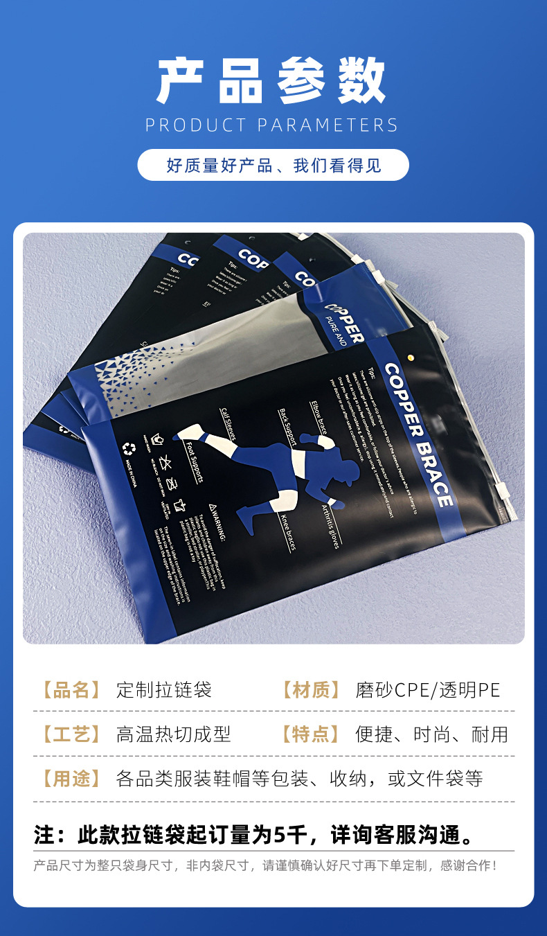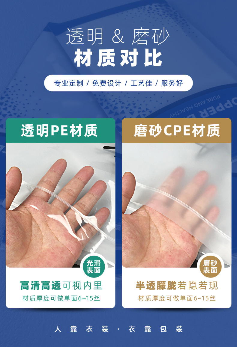 제조 업체 도매 지퍼 가방 두꺼운 CPE 젖빛 자체 밀봉 가방 의류 포장 가방 플라스틱 속옷 양말 보관 가방