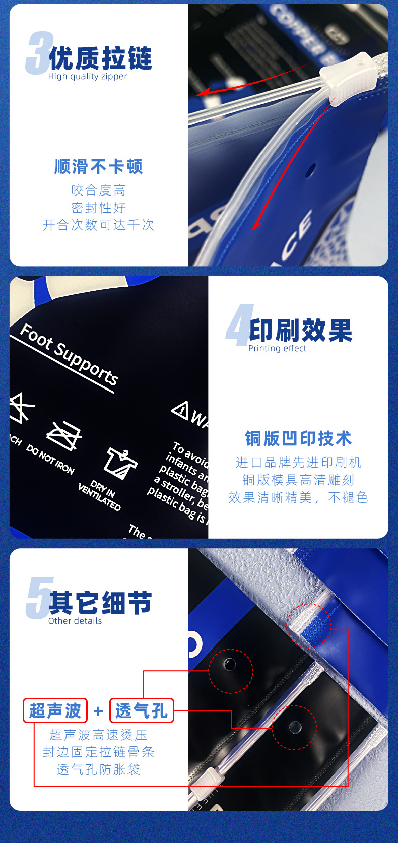 제조 업체 도매 지퍼 가방 두꺼운 CPE 젖빛 자체 밀봉 가방 의류 포장 가방 플라스틱 속옷 양말 보관 가방스토어 가기