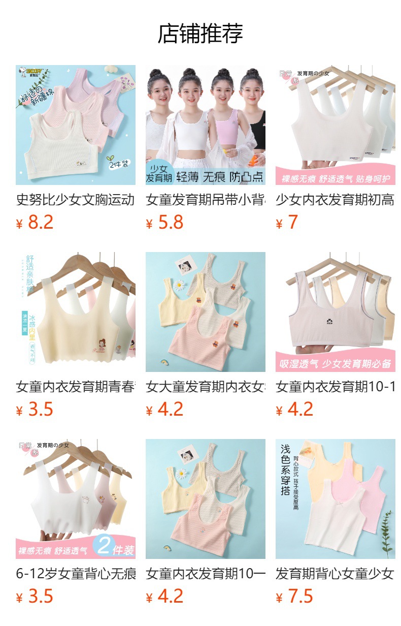 발달 소녀 속옷 안티 범프 초등학교 소녀 작은 조끼 학생 중학생 여자 발달 얇은 여름스토어 가기