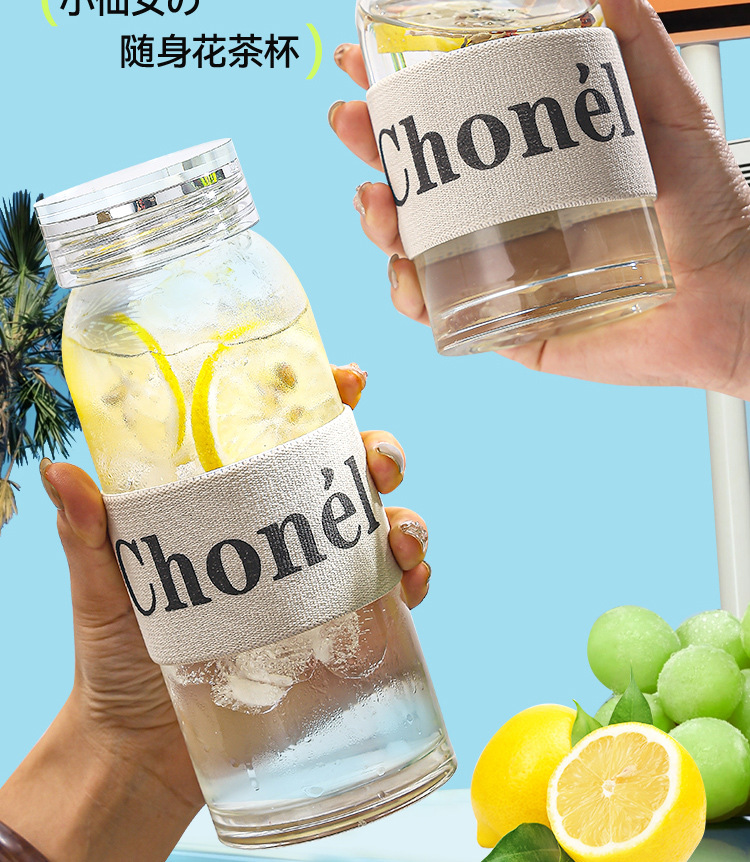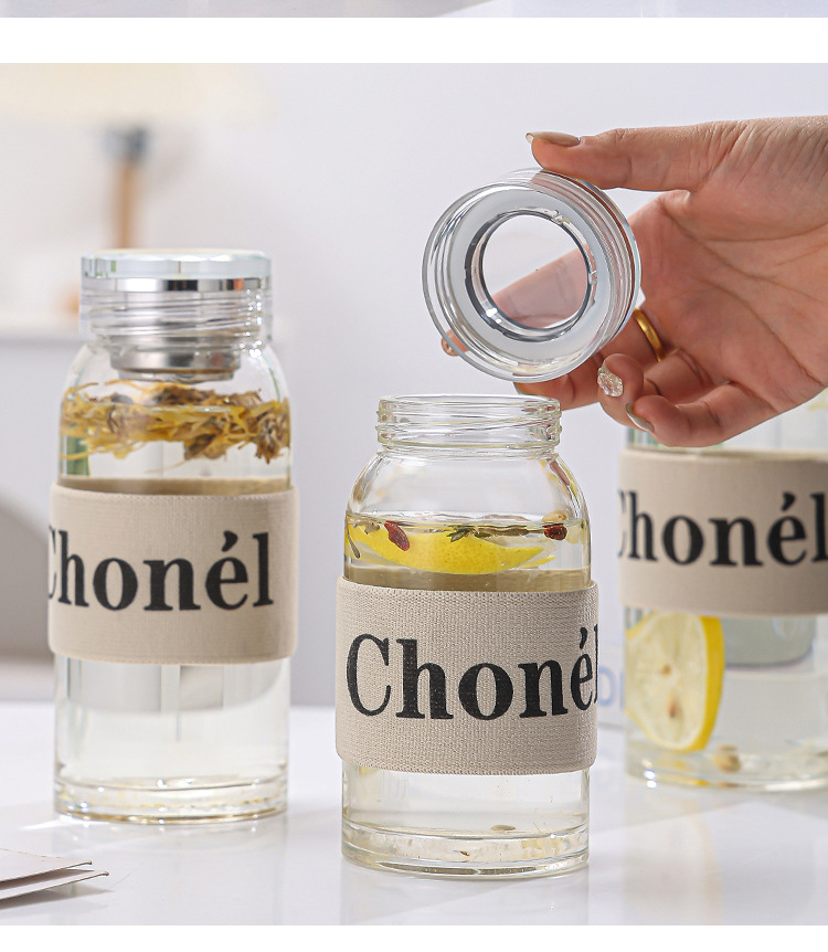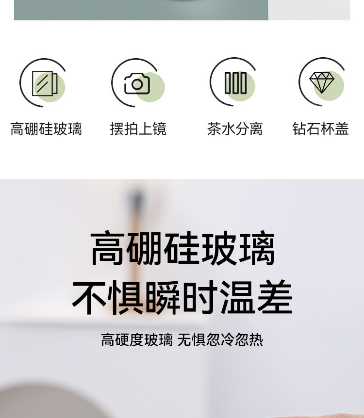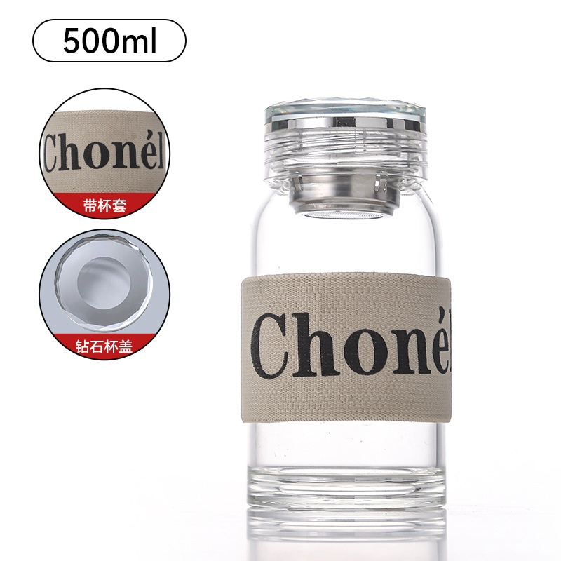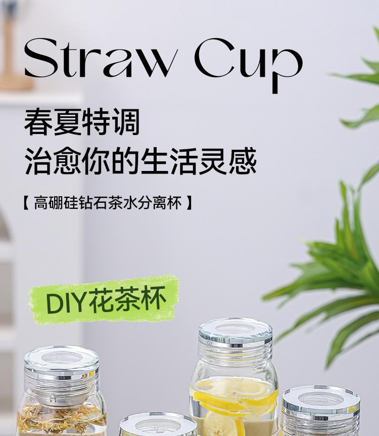 고붕규산 유리 물컵, 두꺼운 인터넷 연예인 스타일 다이아몬드 커버 차 물 분리 컵, 절연 휴대용 꽃 차 컵