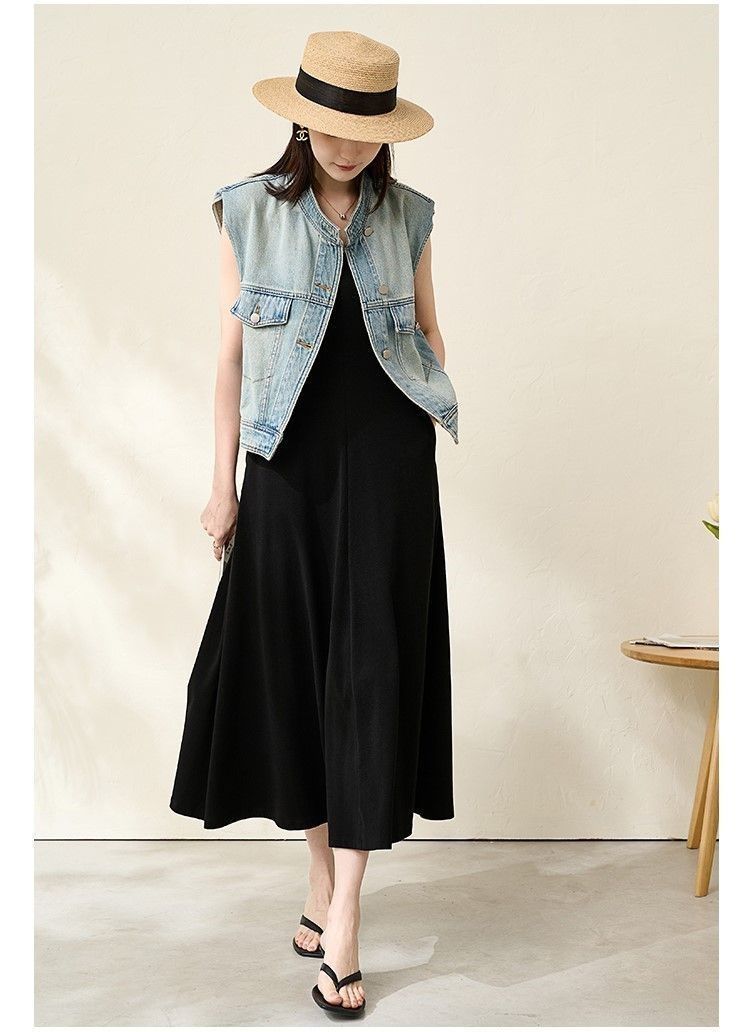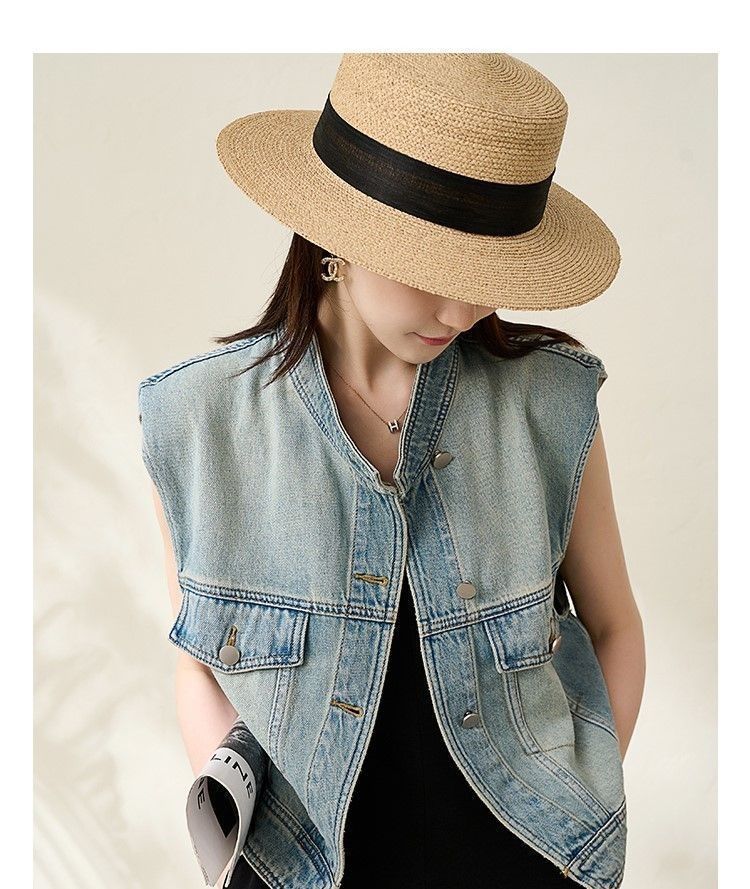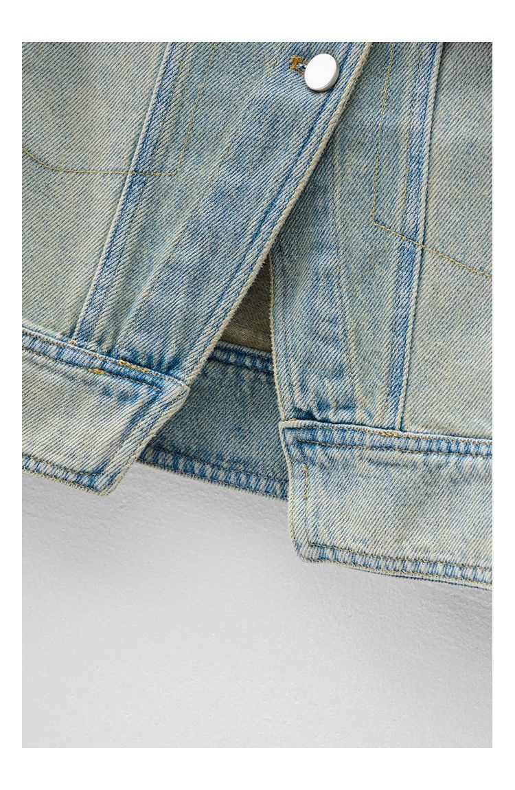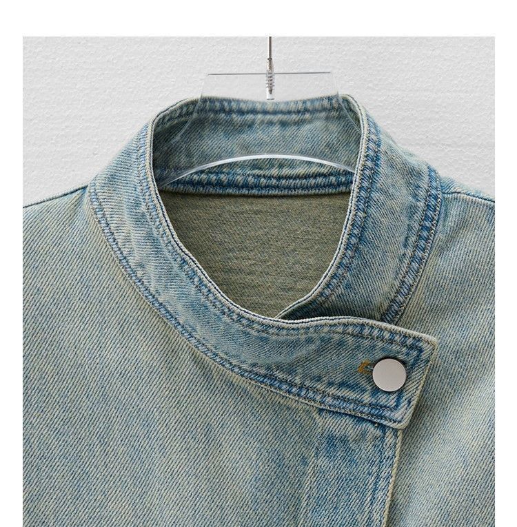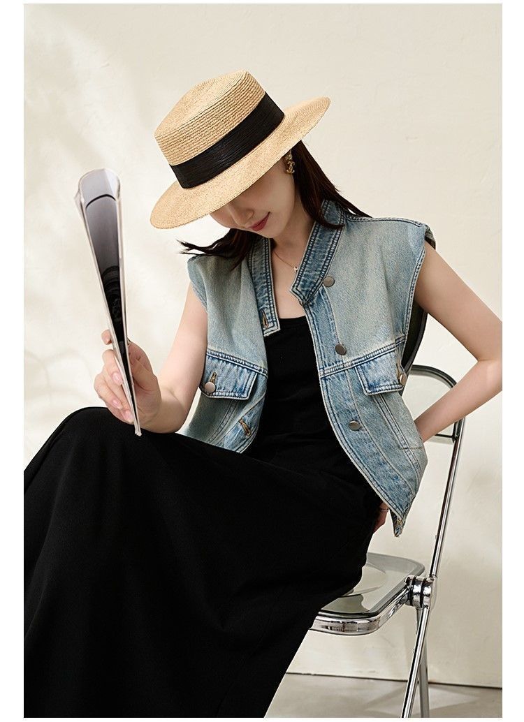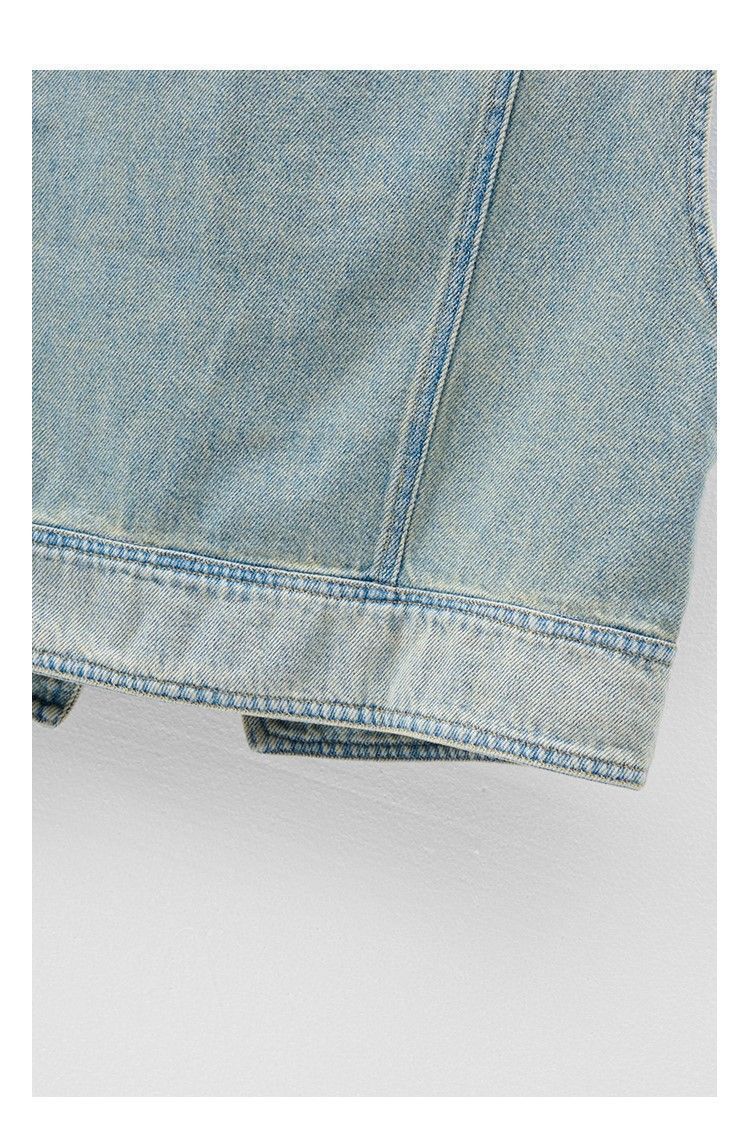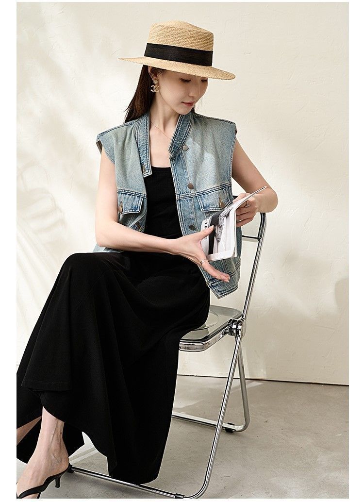 유럽 빈티지 고민 어깨 패드 데님 양복 조끼 여성 2024 년 봄과 여름 칼라 양복 조끼 느슨한 민소매 불규칙한 코트