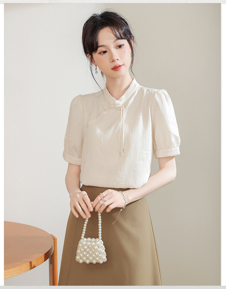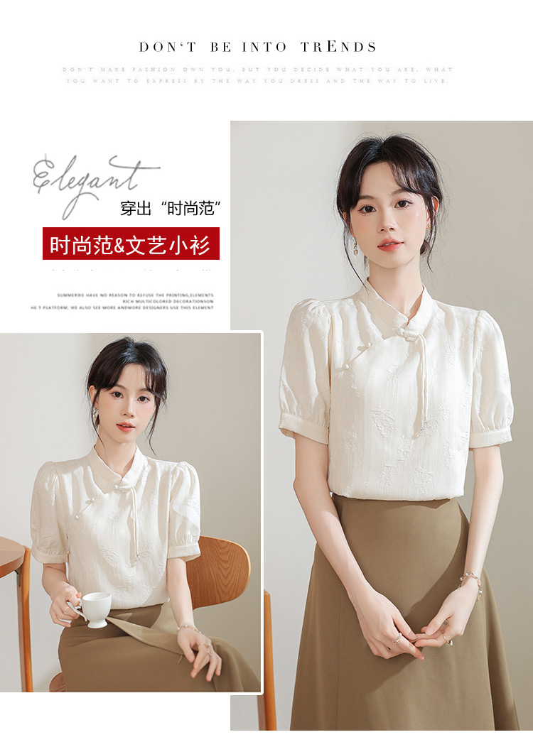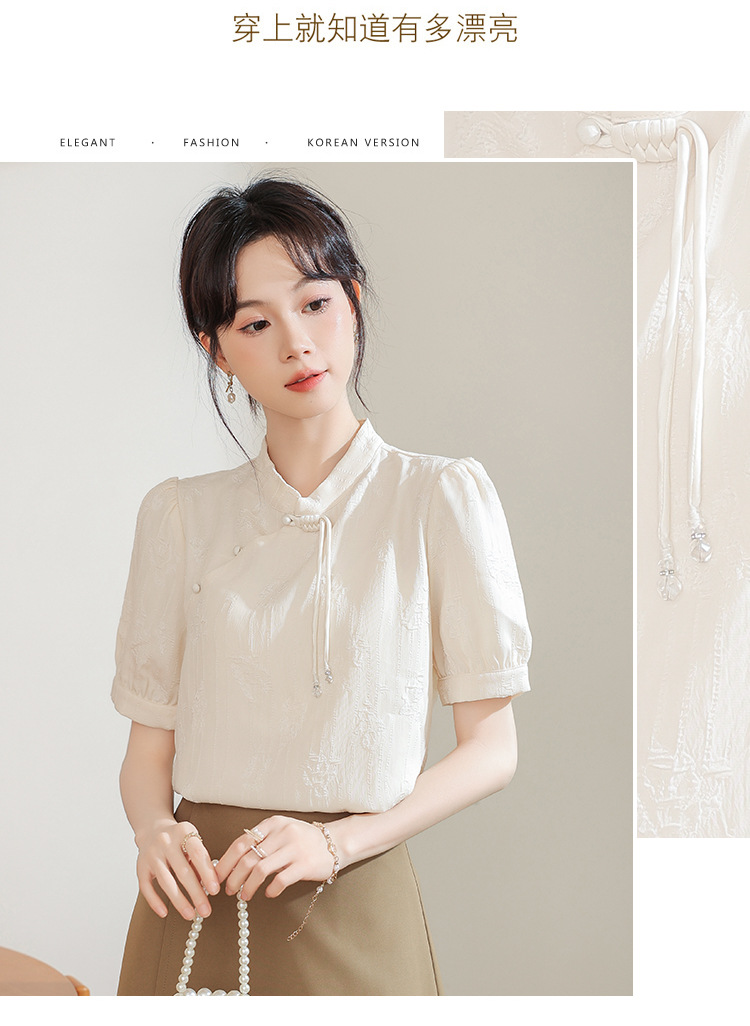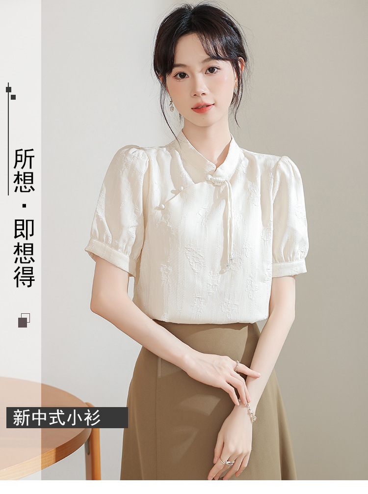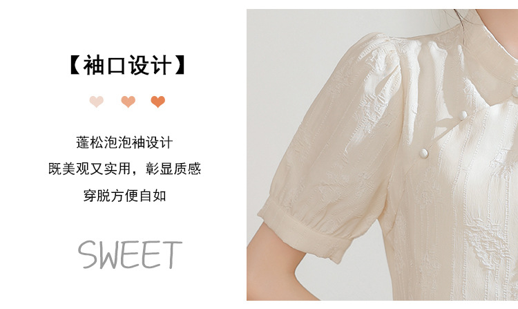 새로운 중국 스타일 국가 스타일 버튼 탑 우아한 쉬폰 셔츠 여성의 2024 여름 새로운 슬리밍 올 매치 반팔 셔츠스토어 가기