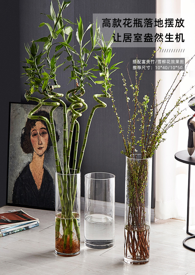 직선형 유리 꽃병, 투명한 장식용 식물 화병, 고급스러운 거실용 바닥 장식