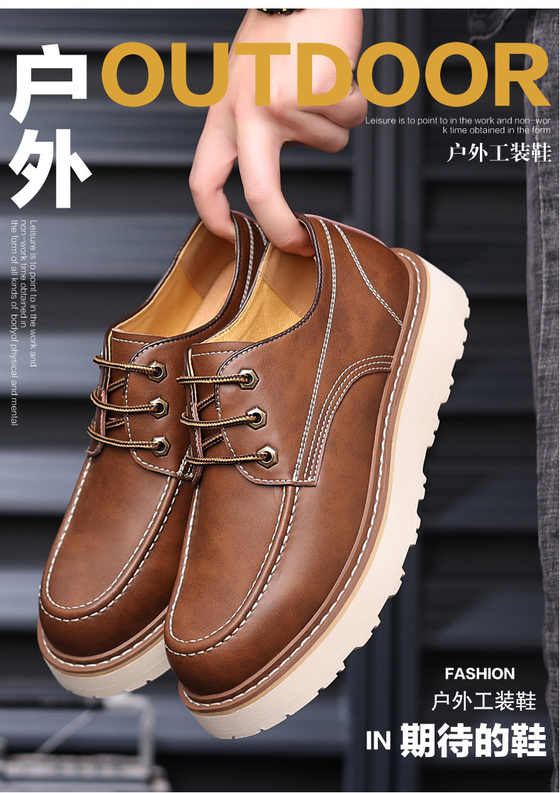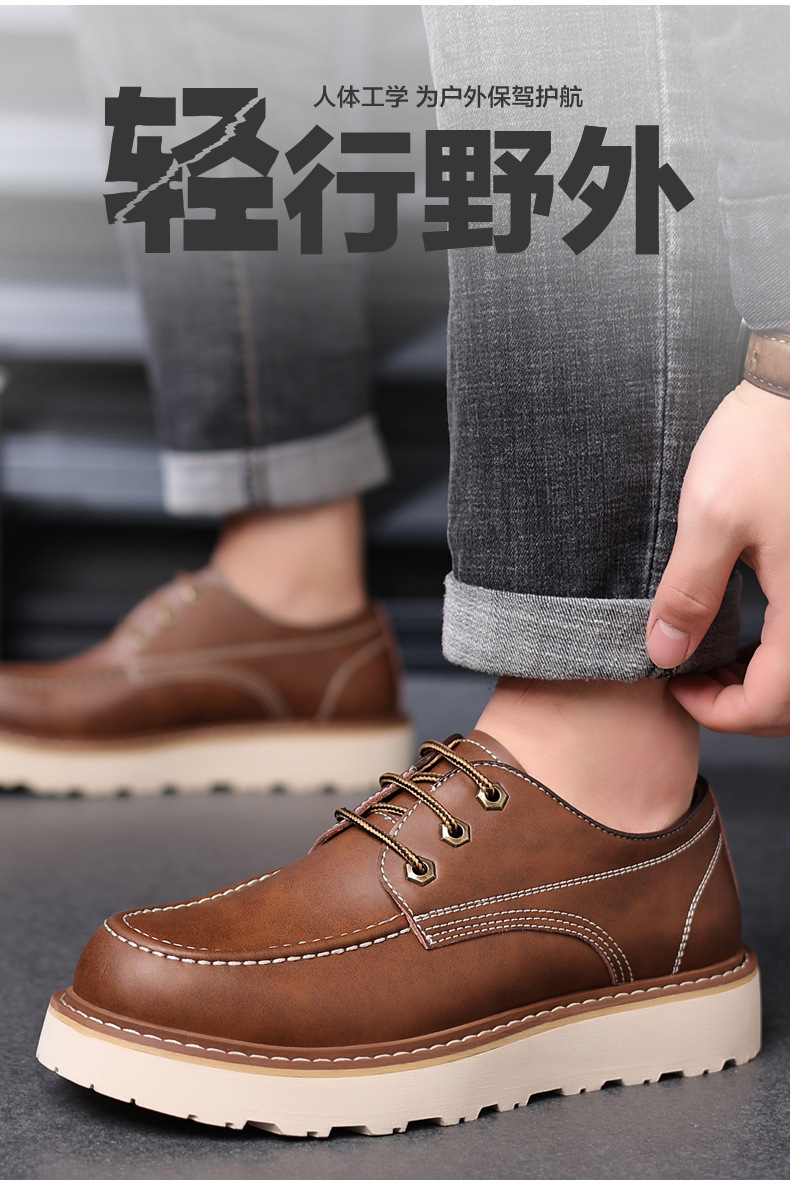 마틴 부츠 봄 2024 새로운 로우 컷 남성 신발 짧은 부츠 야외 툴링 신발 손으로 꿰매는 큰 발가락 가죽 신발