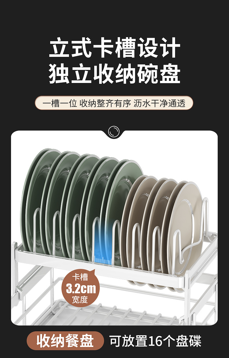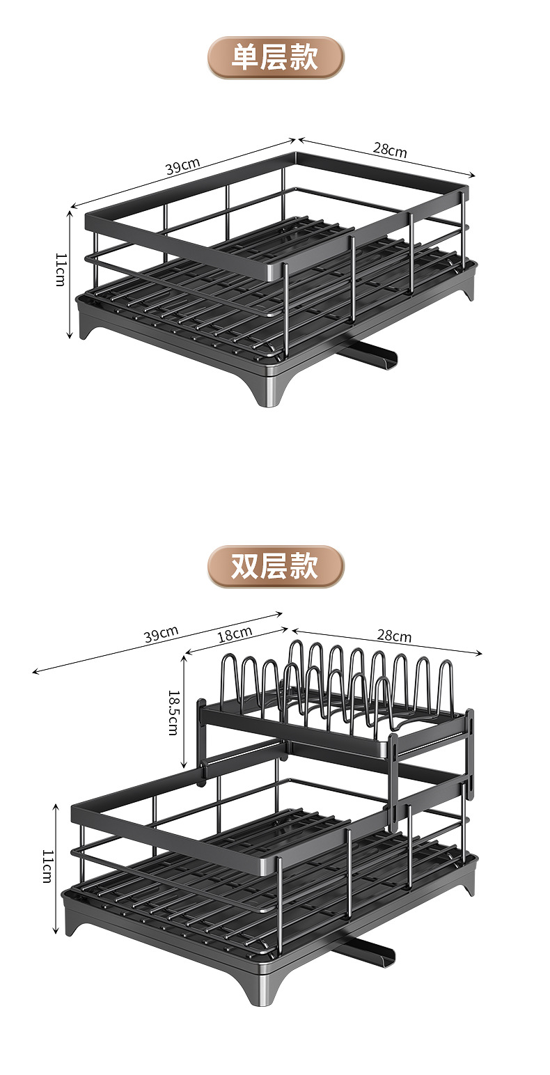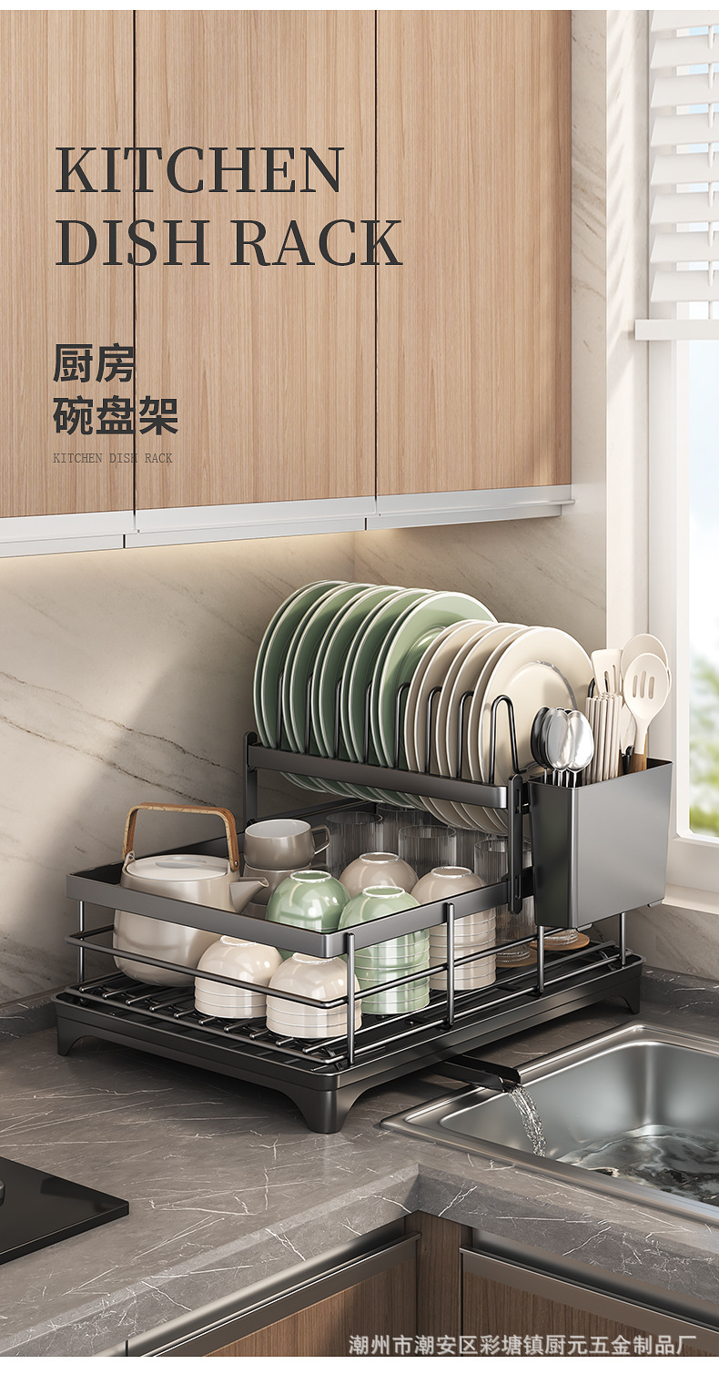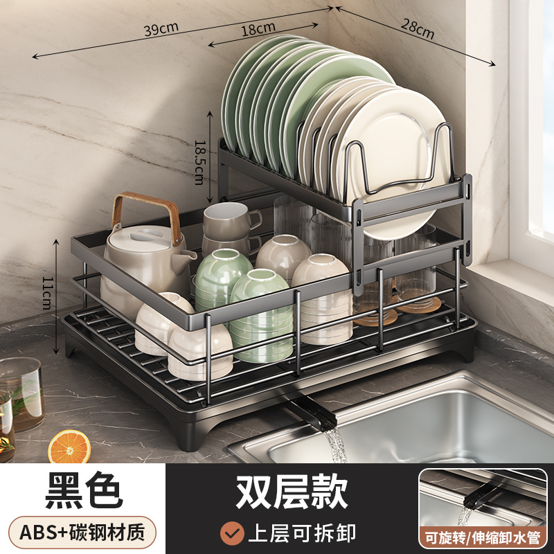 • 두꺼운 더블 레이어 접시 랙 (블랙)