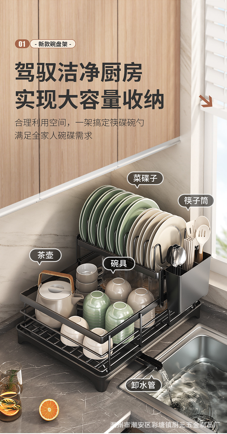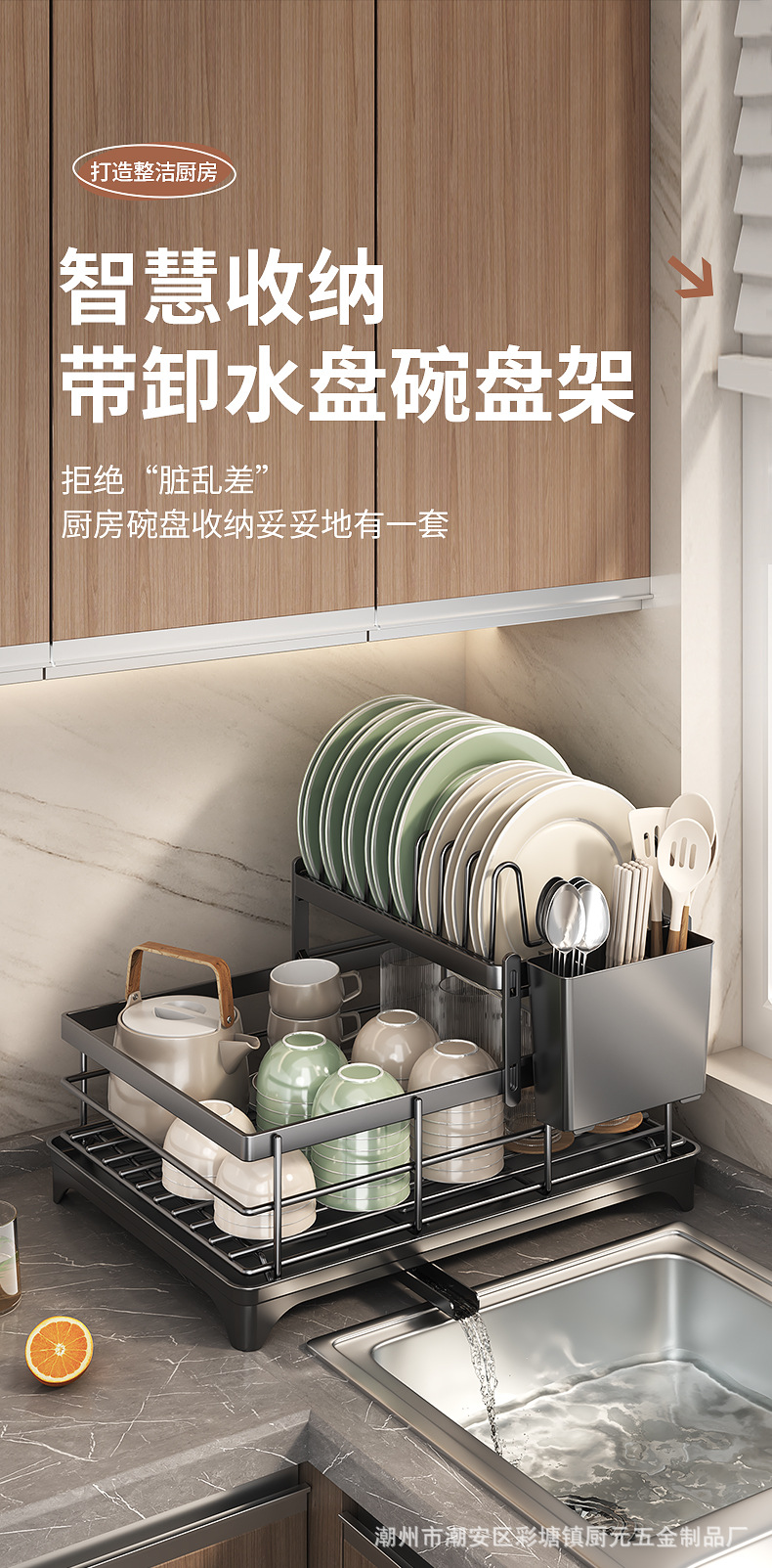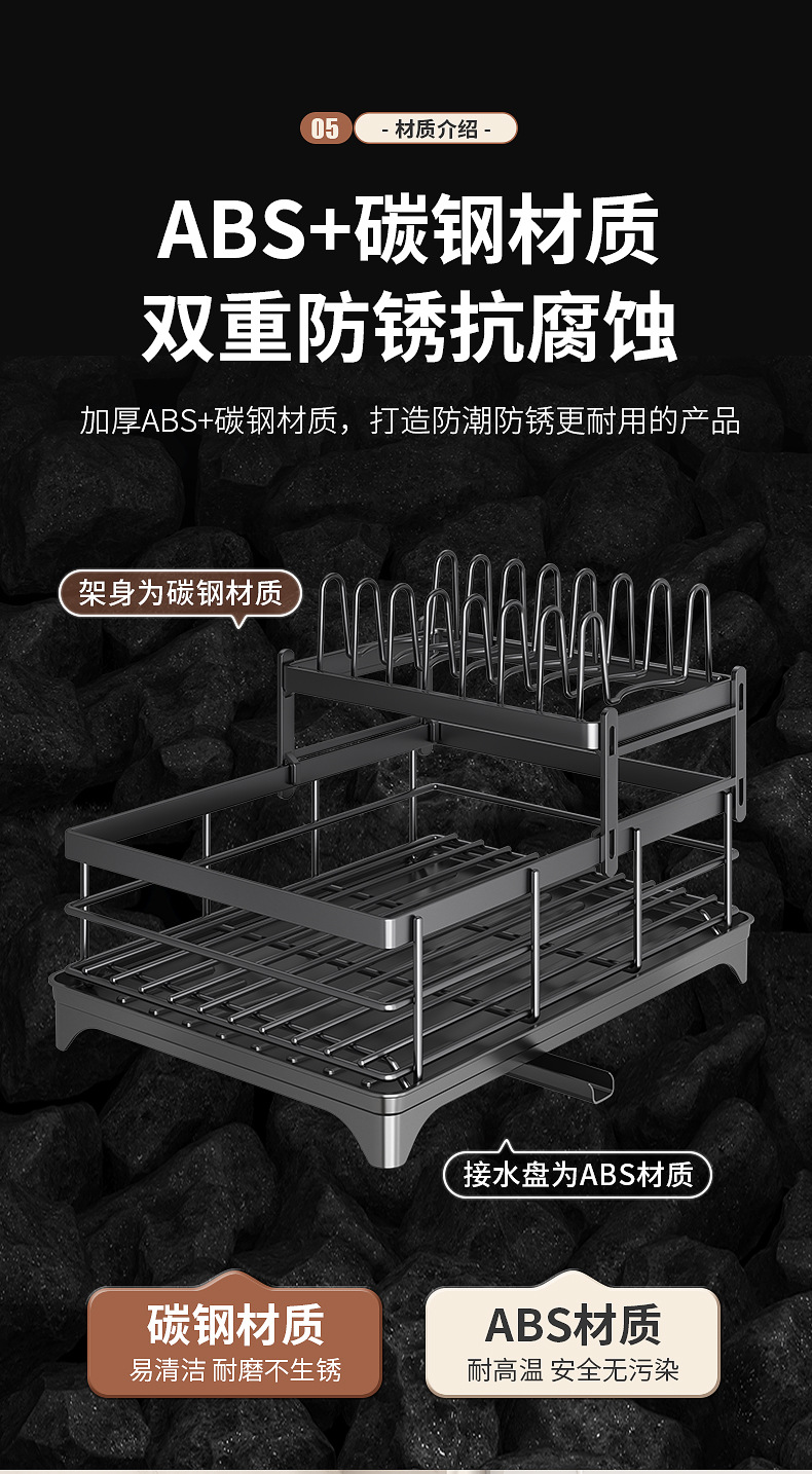 • 두꺼운 더블 레이어 접시 랙 (블랙)