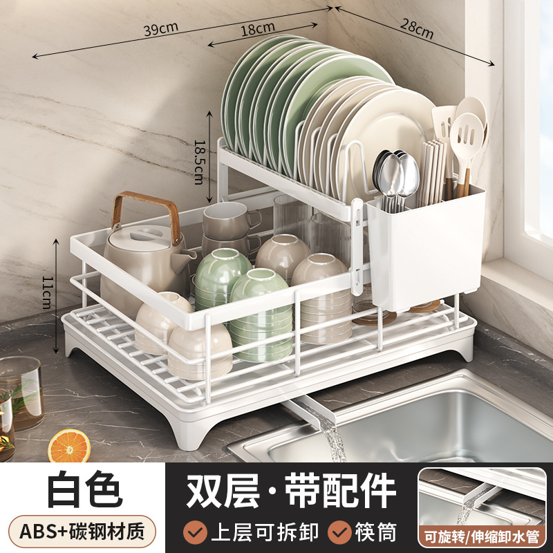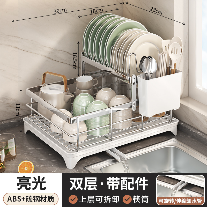 • 두꺼운 더블 레이어 접시 랙 (흰색)