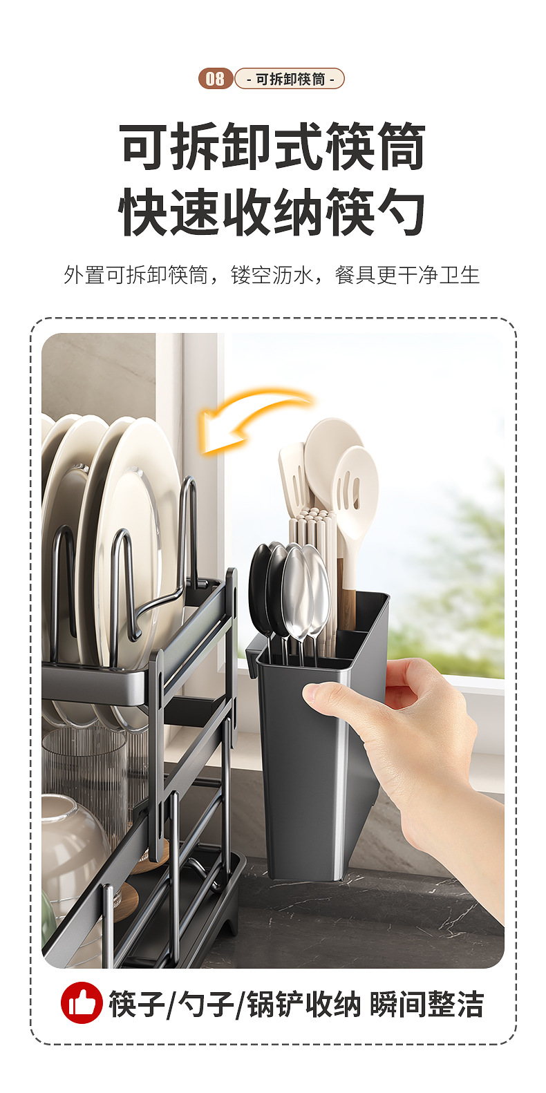 • 두꺼운 더블 레이어 접시 랙 (블랙) 젓가락 튜브