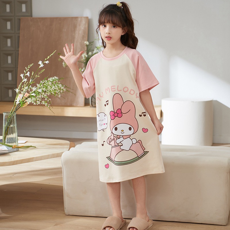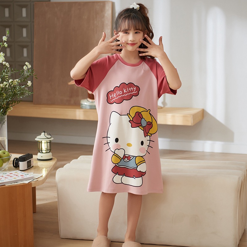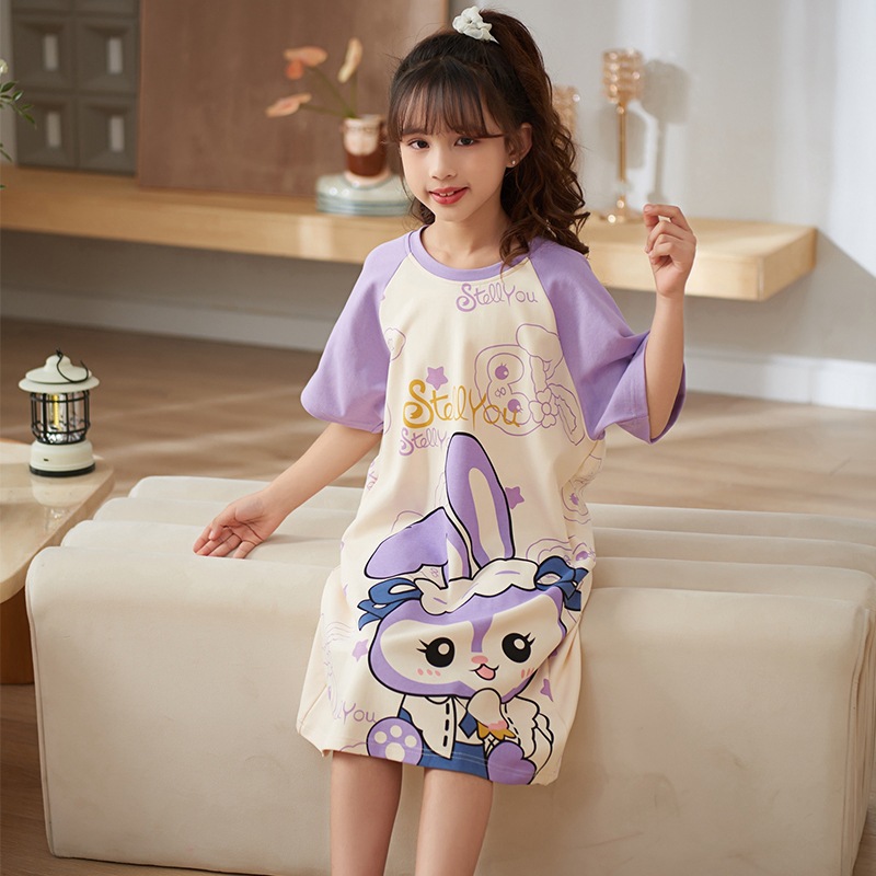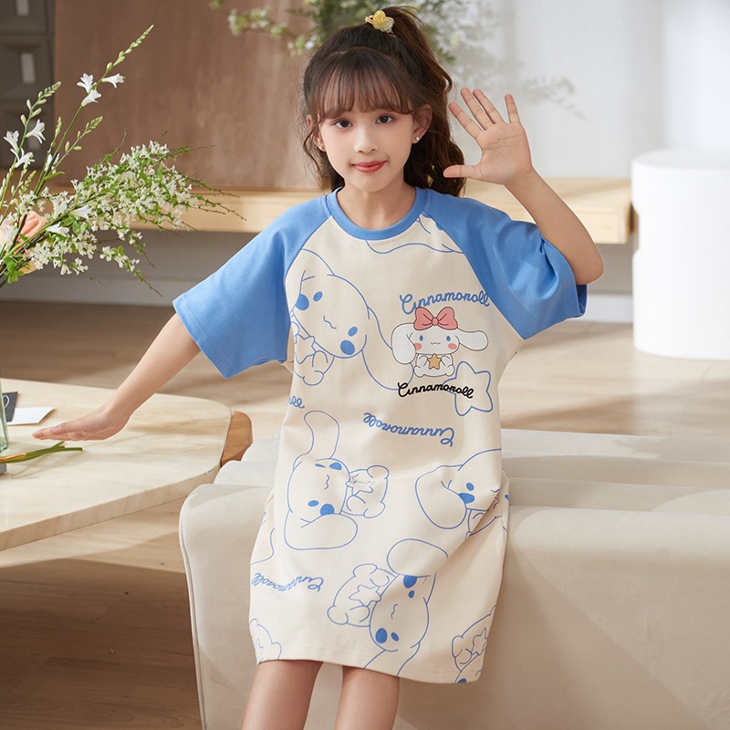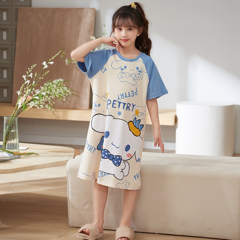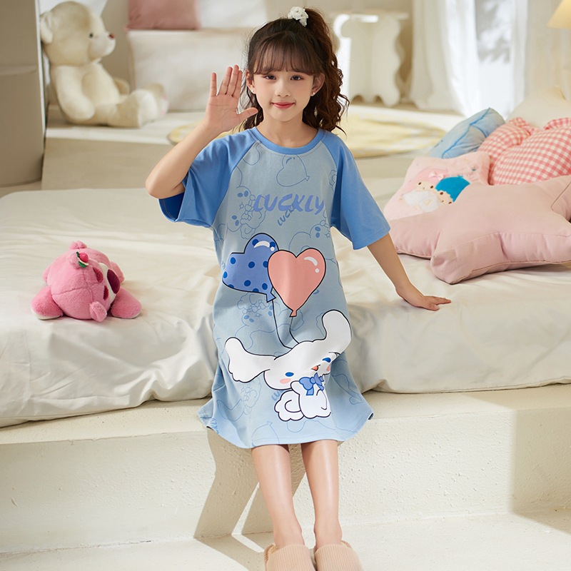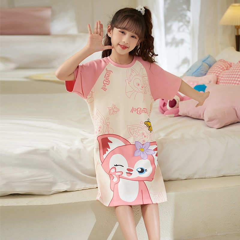 여자 나이트가운 면화 여름 반팔 중대형 어린이 어린 소녀 귀여운 만화 어린이 집 옷 부모-자식 잠옷스토어 가기
