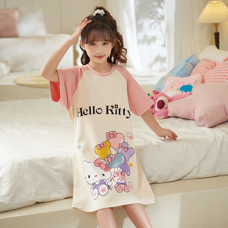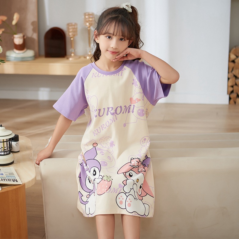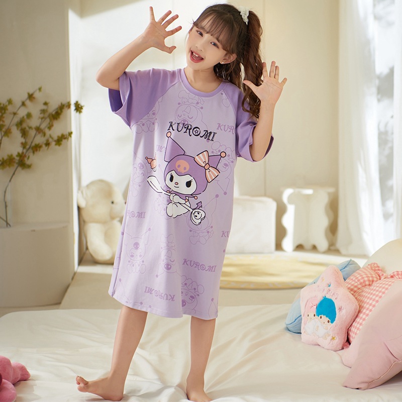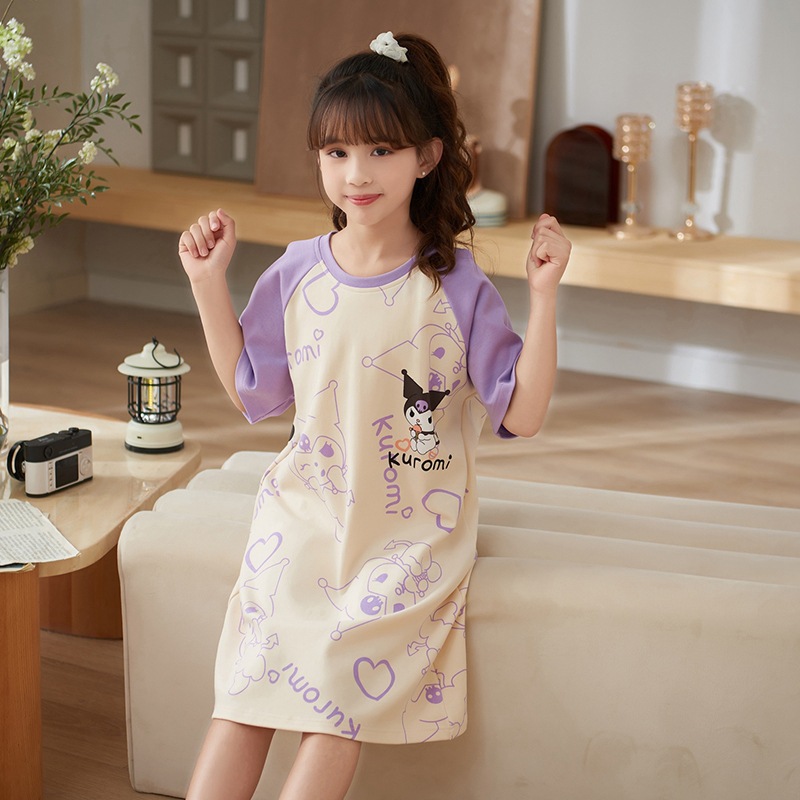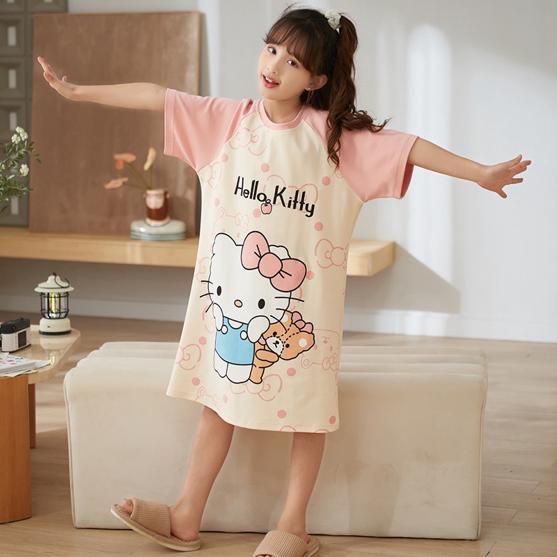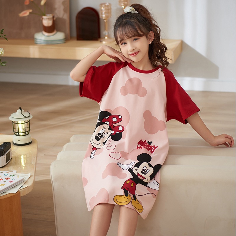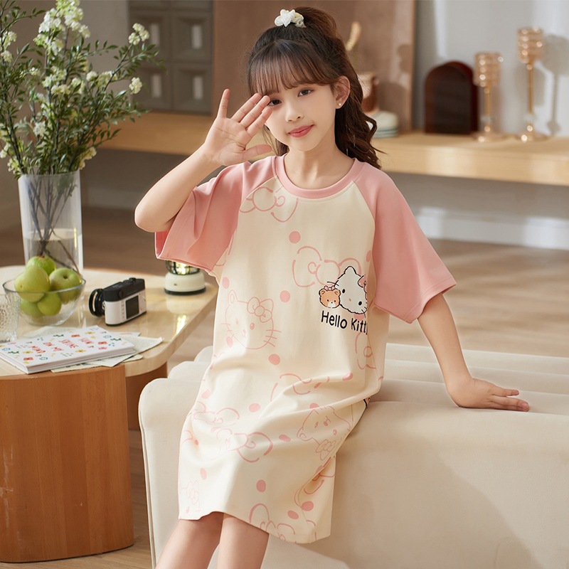 여자 나이트가운 면화 여름 반팔 중대형 어린이 어린 소녀 귀여운 만화 어린이 집 옷 부모-자식 잠옷스토어 가기