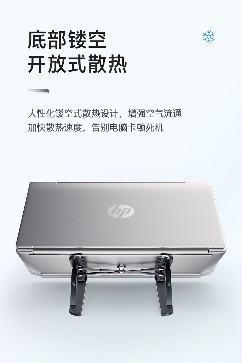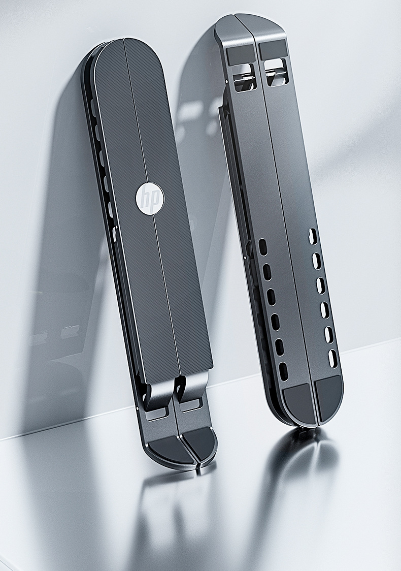 HP ZJ10 블랙 알루미늄 합금 노트북 스탠드, 접이식 휴대용 높이 조절 가능 소형 냉각 거치대