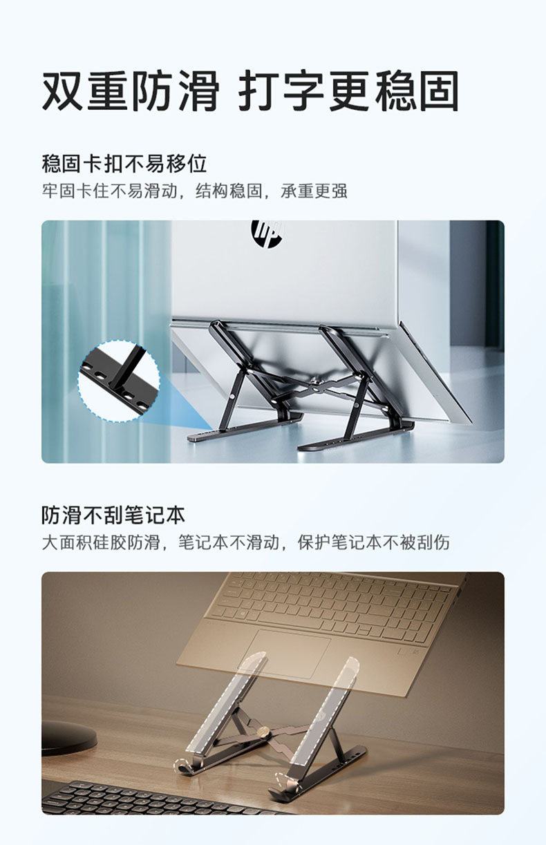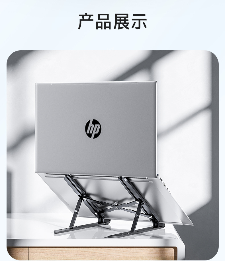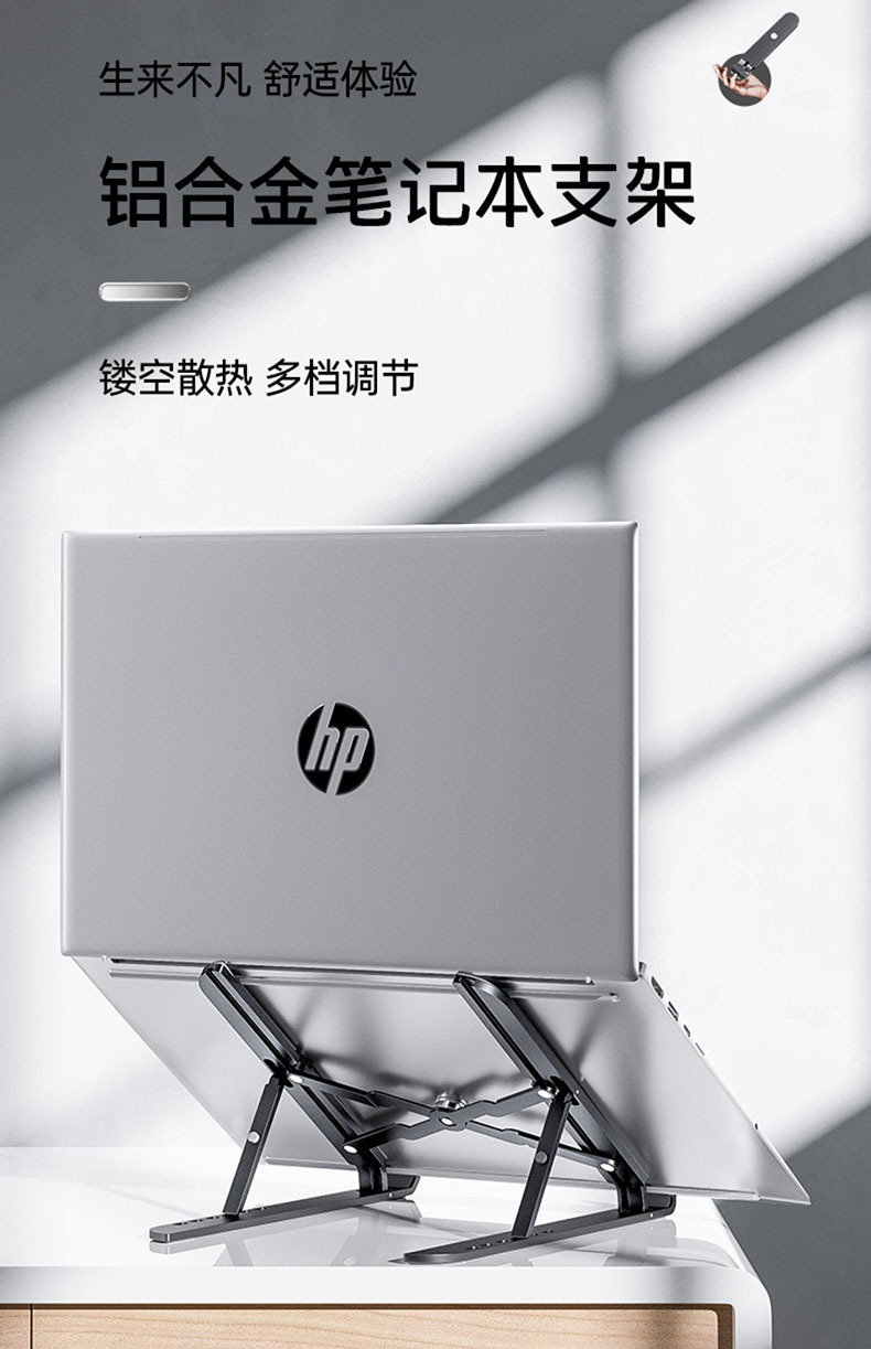 HP ZJ10 블랙 알루미늄 합금 노트북 스탠드, 접이식 휴대용 높이 조절 가능 소형 냉각 거치대스토어 가기