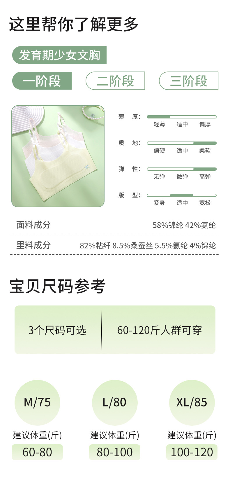 학생 개발 소녀 속옷 소녀 안티 범프 편안한 슬링 작은 조끼 뽕나무 실크 라이닝의 첫 번째 단계스토어 가기