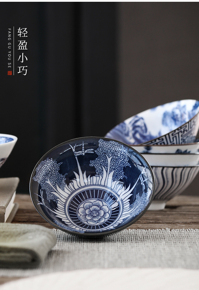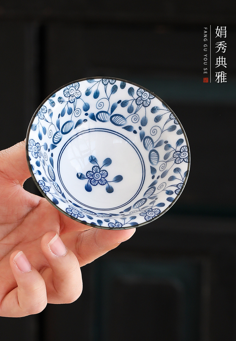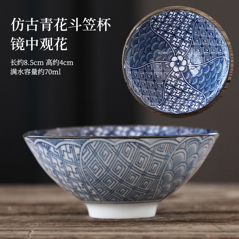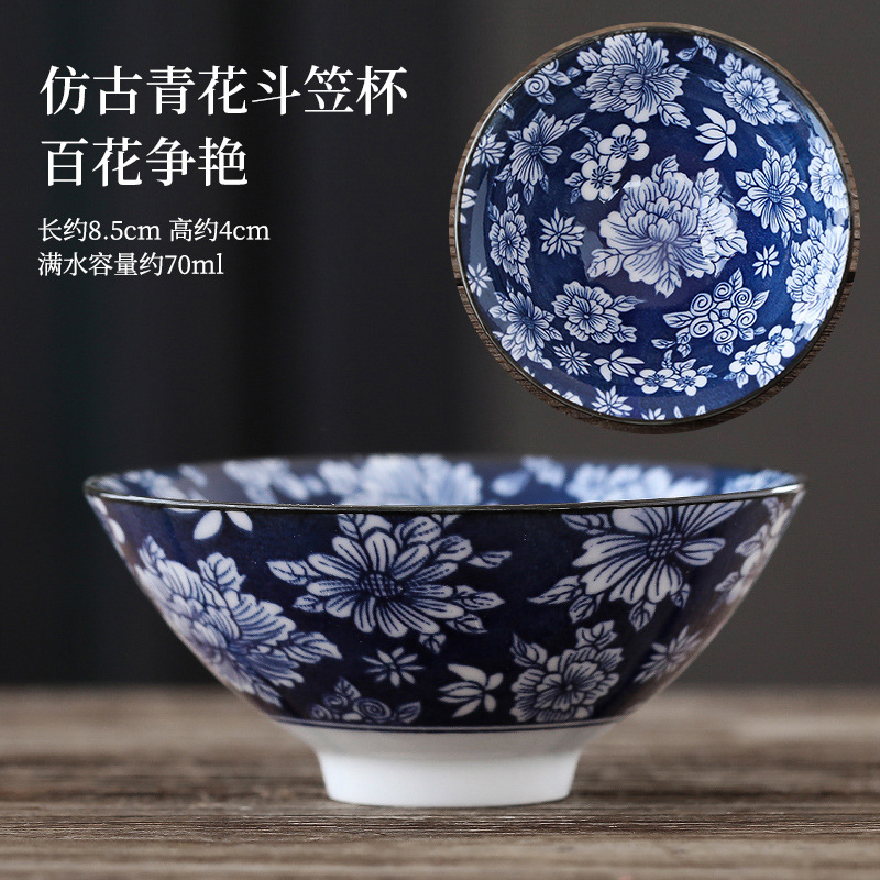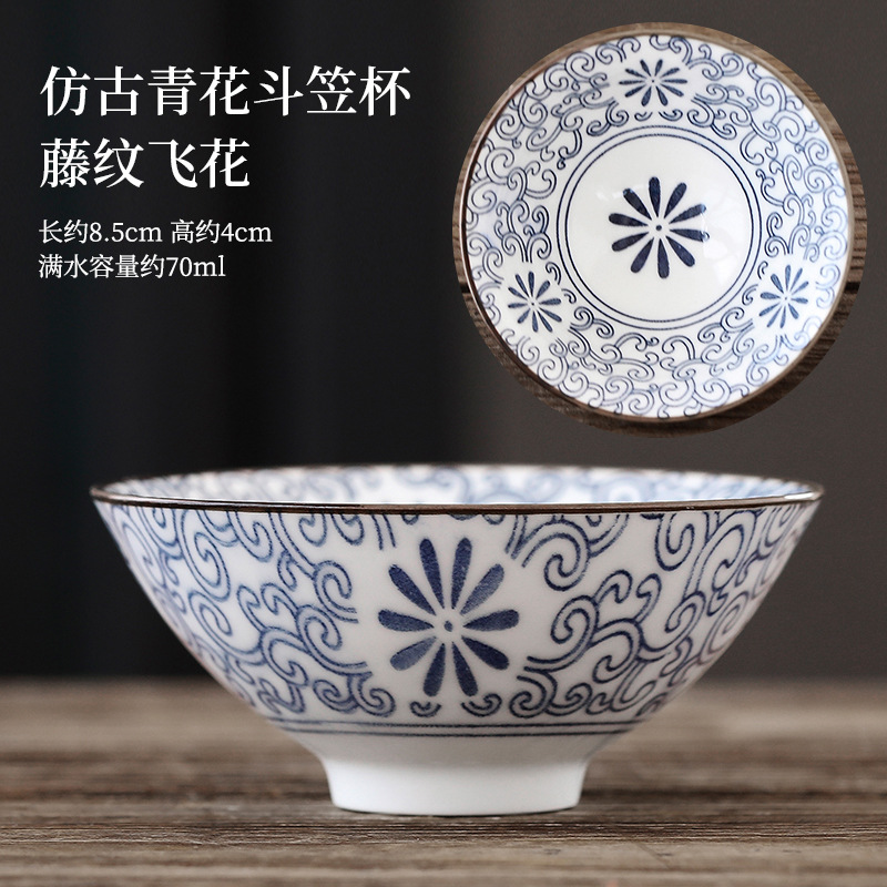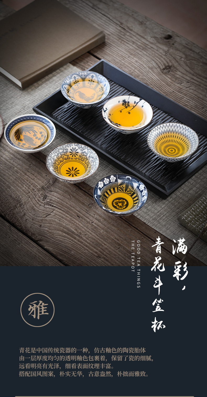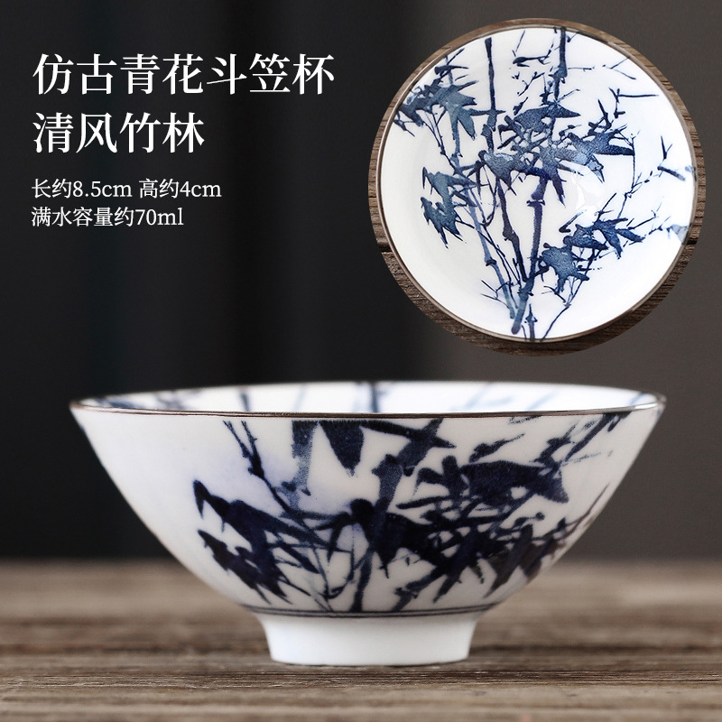 빈티지 블루와 화이트 보검 컵 언더 유약 컬러 세라믹 가정용 쿵푸 티 컵 게스트 컵 차 시음 컵 사무실 일본식 티 컵스토어 가기