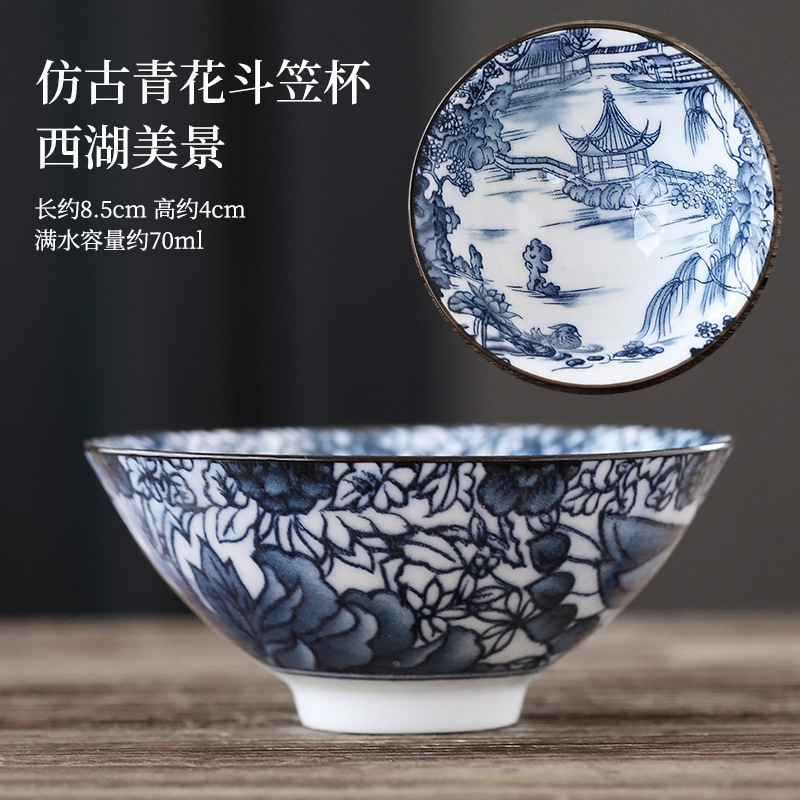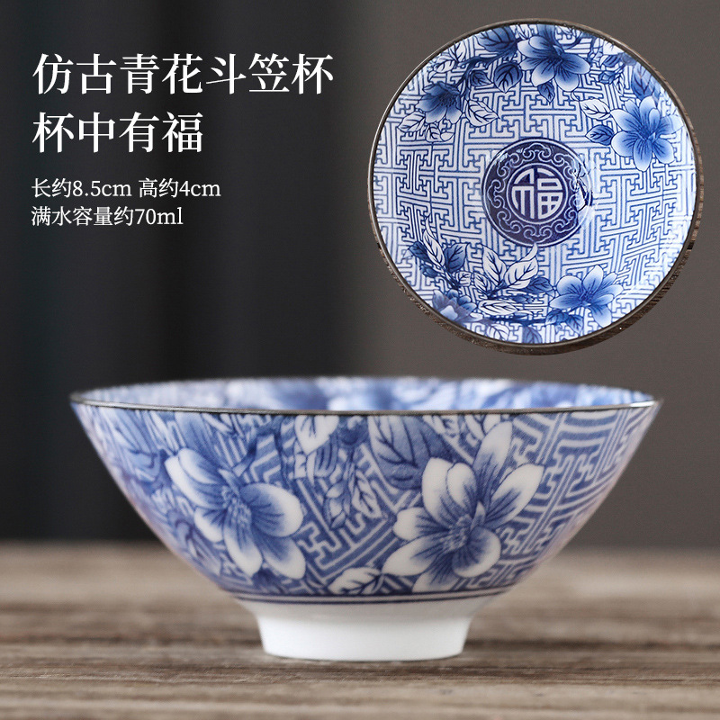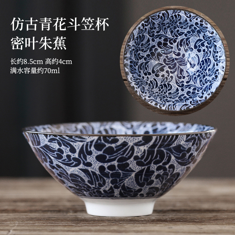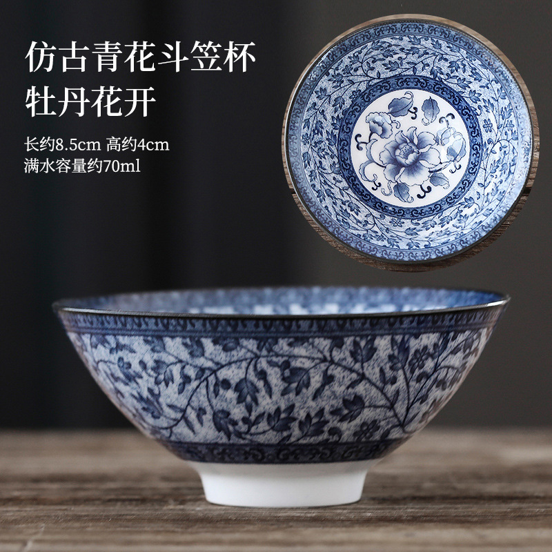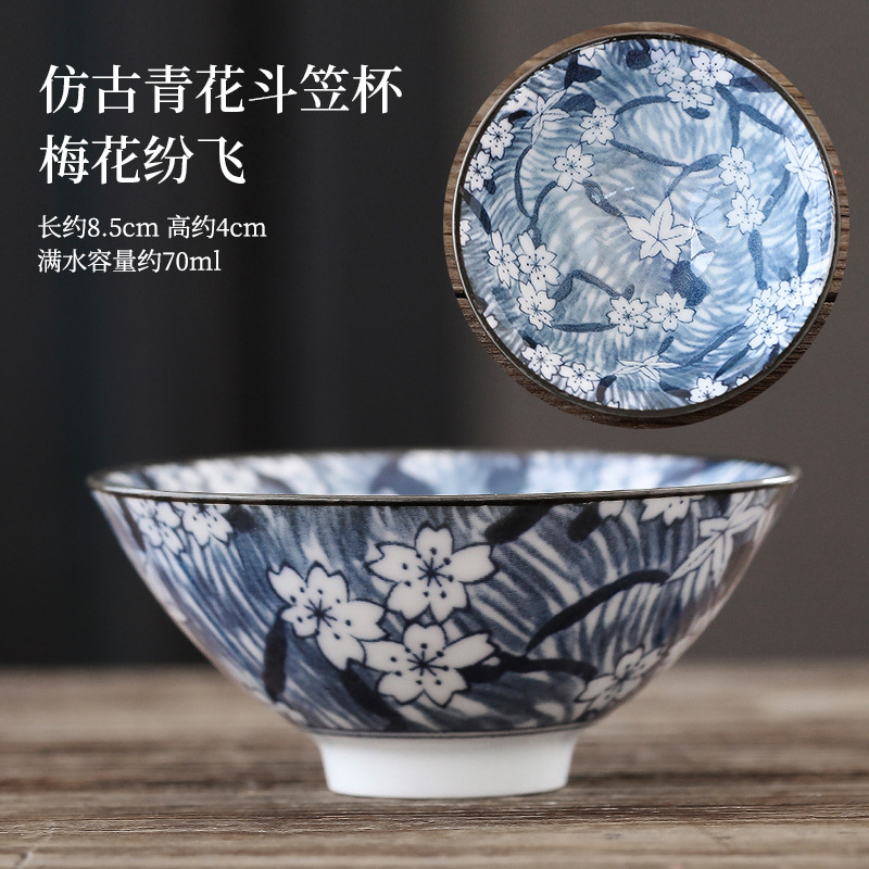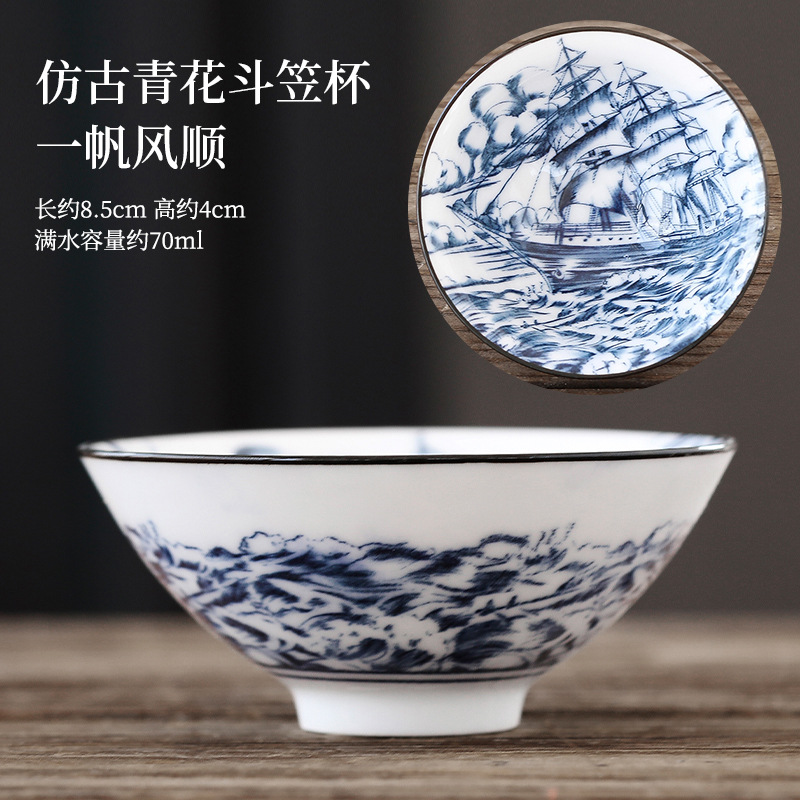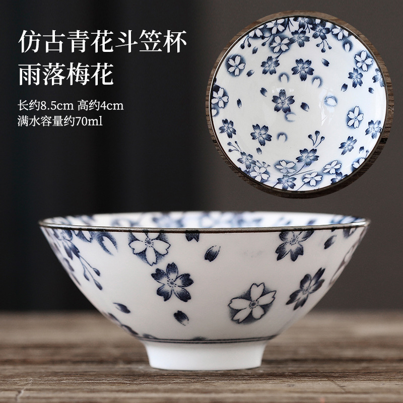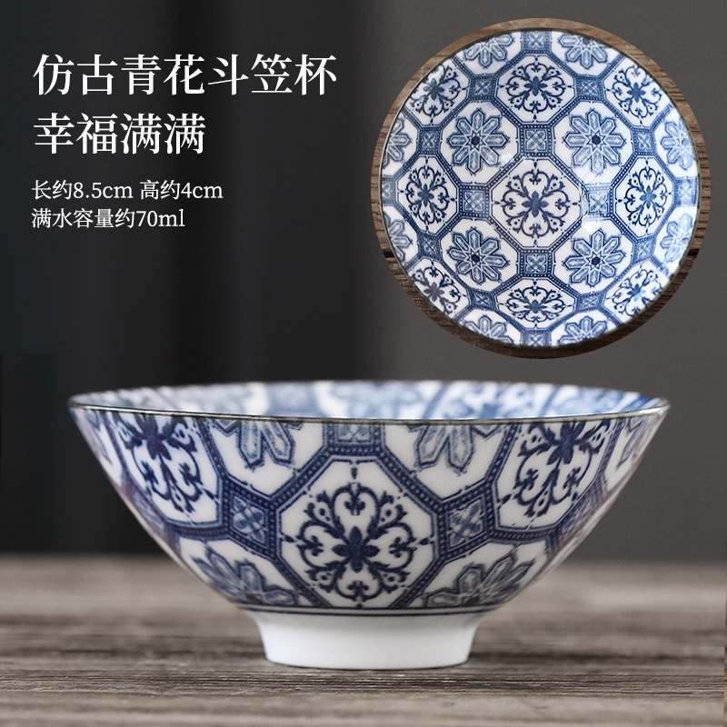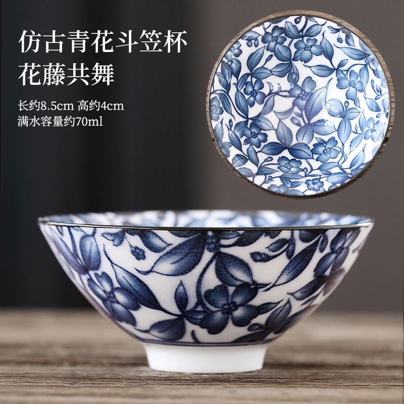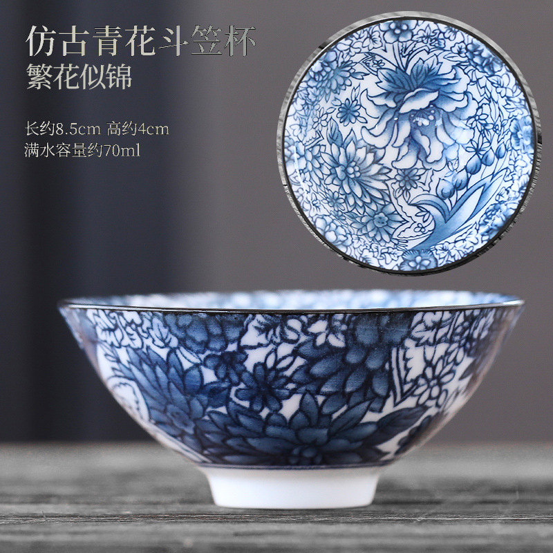 빈티지 블루와 화이트 보검 컵 언더 유약 컬러 세라믹 가정용 쿵푸 티 컵 게스트 컵 차 시음 컵 사무실 일본식 티 컵스토어 가기