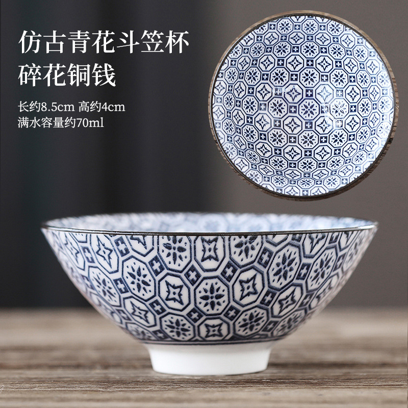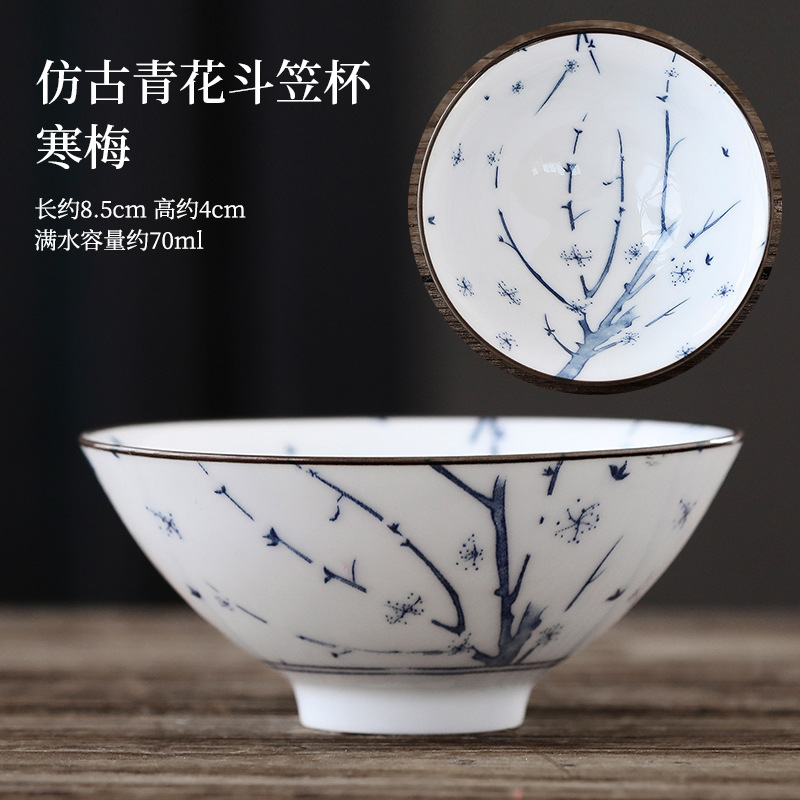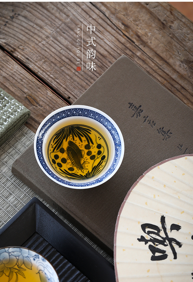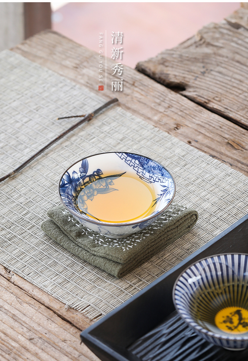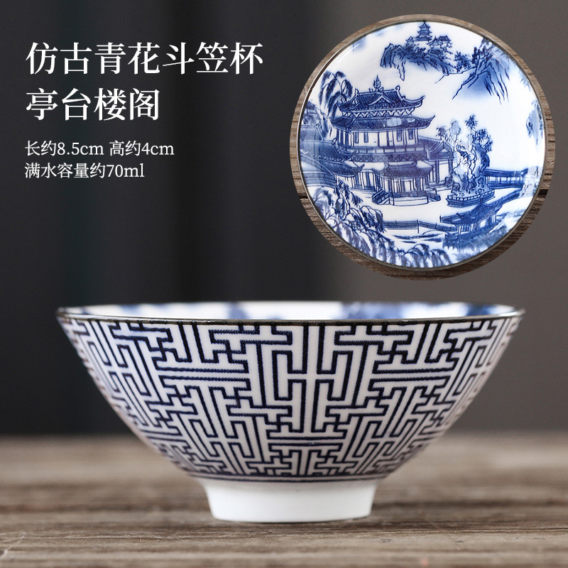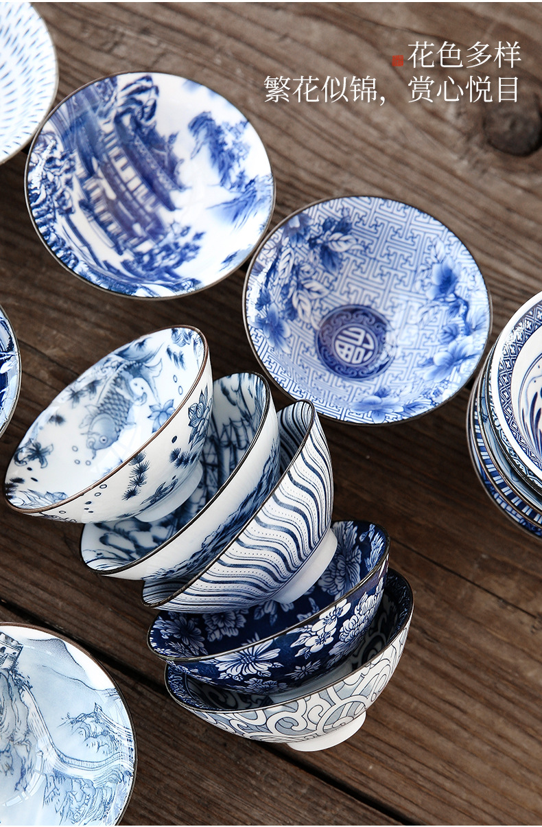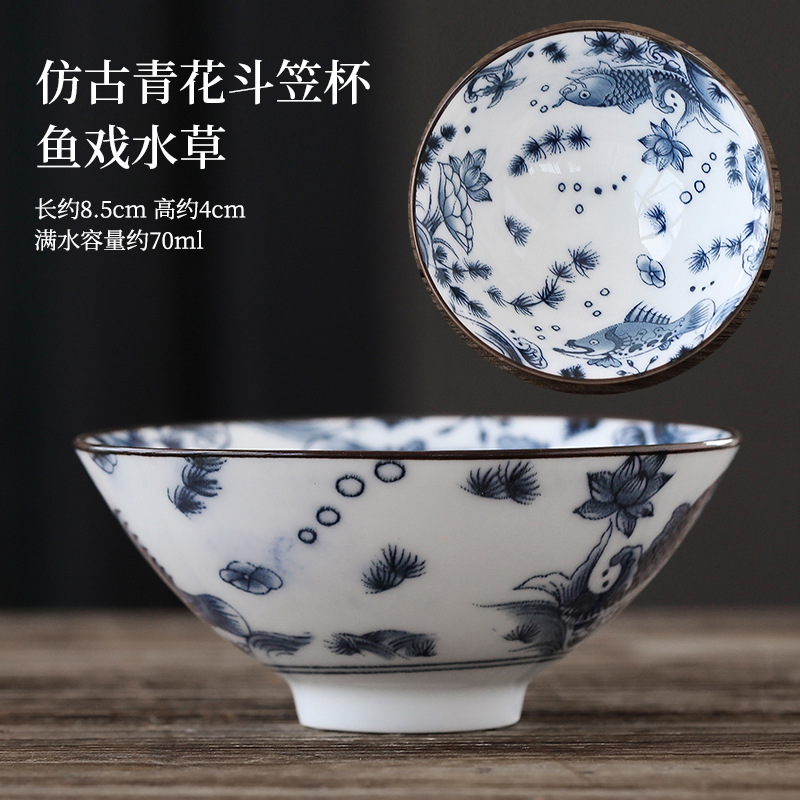 빈티지 블루와 화이트 보검 컵 언더 유약 컬러 세라믹 가정용 쿵푸 티 컵 게스트 컵 차 시음 컵 사무실 일본식 티 컵스토어 가기