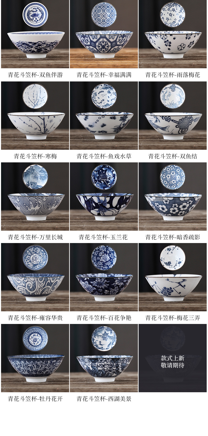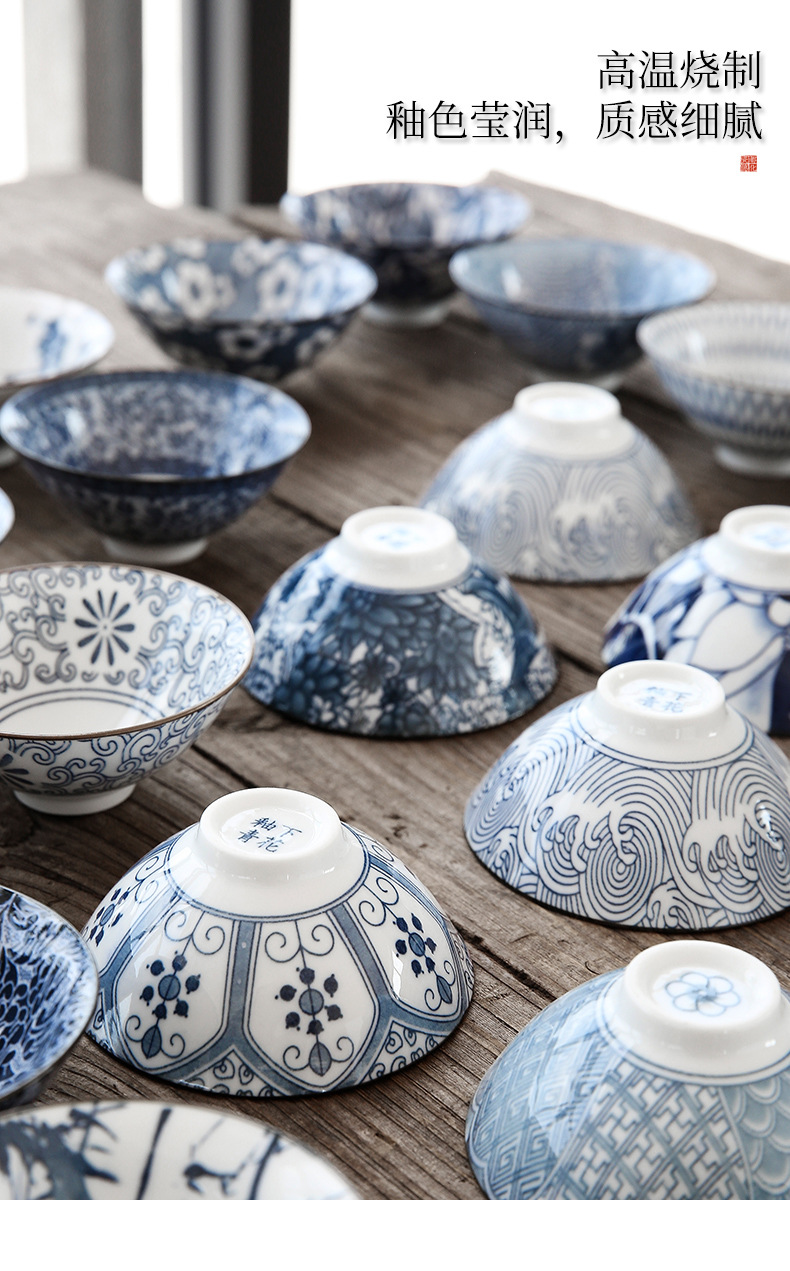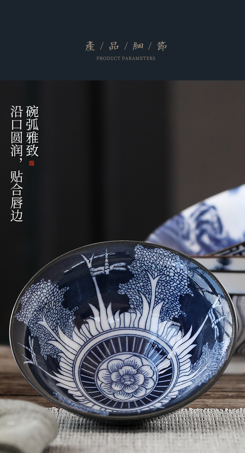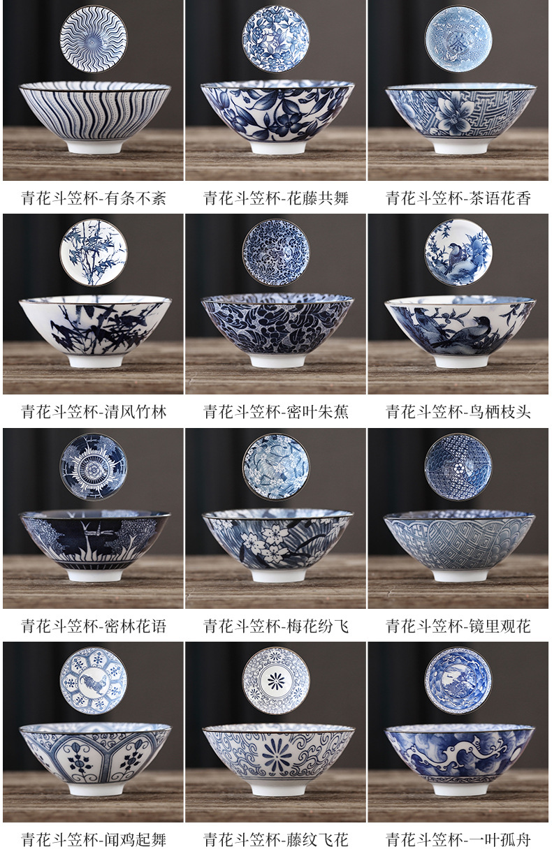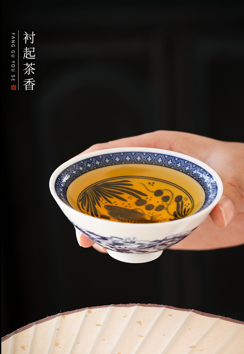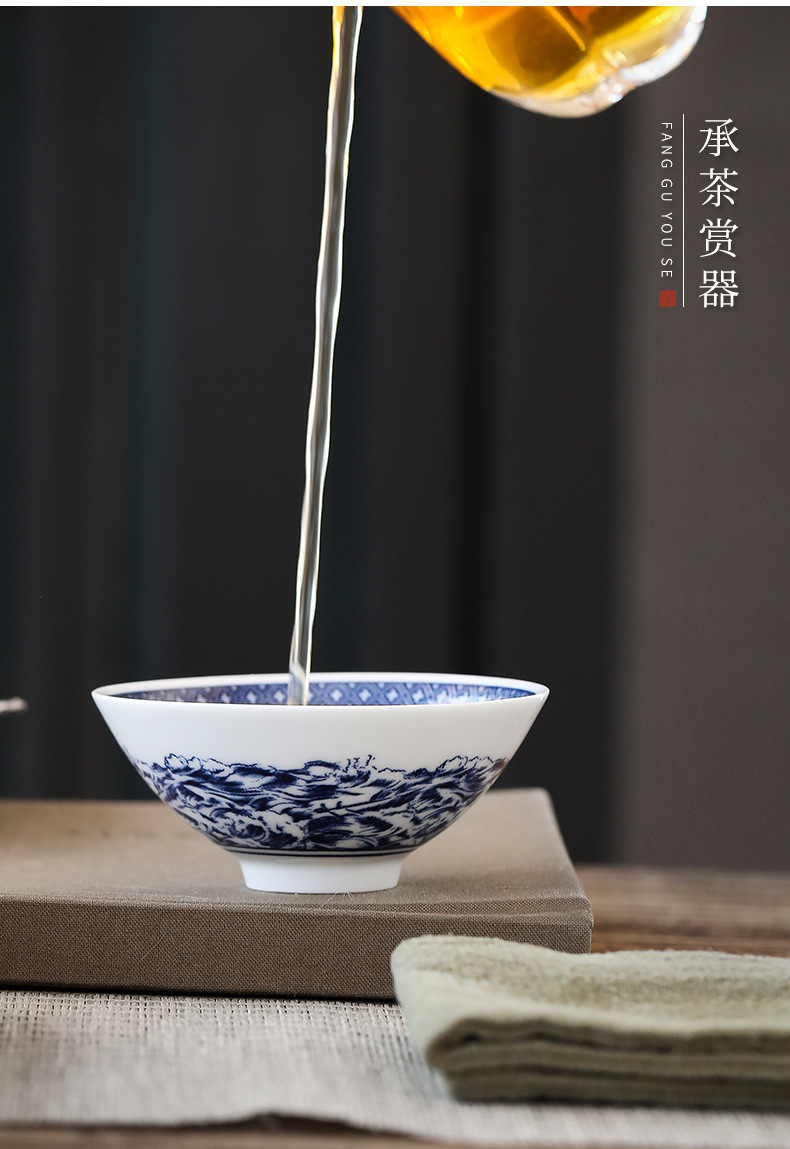 빈티지 블루와 화이트 보검 컵 언더 유약 컬러 세라믹 가정용 쿵푸 티 컵 게스트 컵 차 시음 컵 사무실 일본식 티 컵스토어 가기