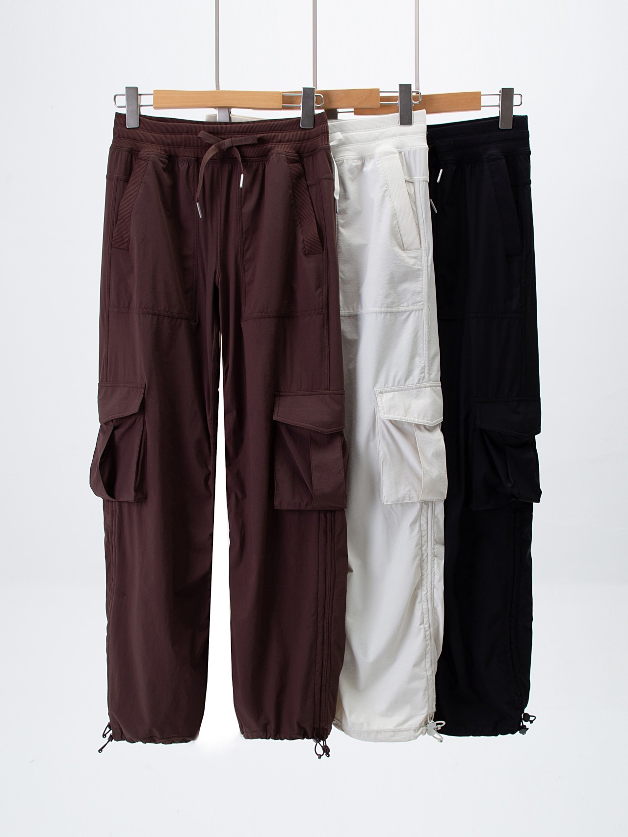 새로운 중간 허리 스포츠 바지 여성용 캐주얼 스트레이트 바지 슬림 룩 느슨한 춤 드롭 바지 작업 세트 산 야외 신 바지