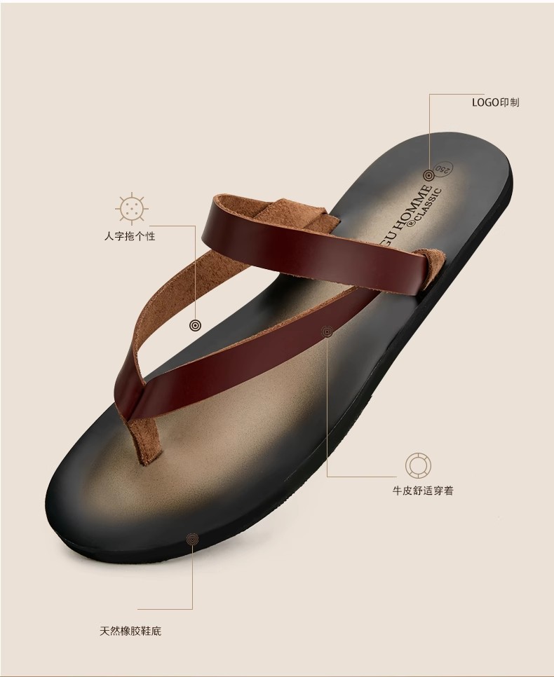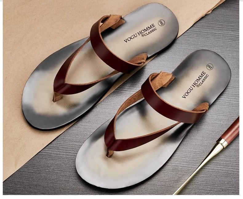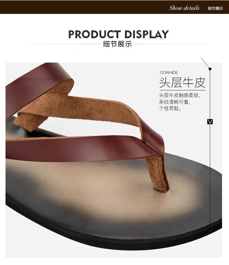 대형 도크 레이어 Cowhide 여름 슬리퍼 남성용 슬립 캐주얼 정품 가죽 플립 플립-플롭 유행 통기성 샌들