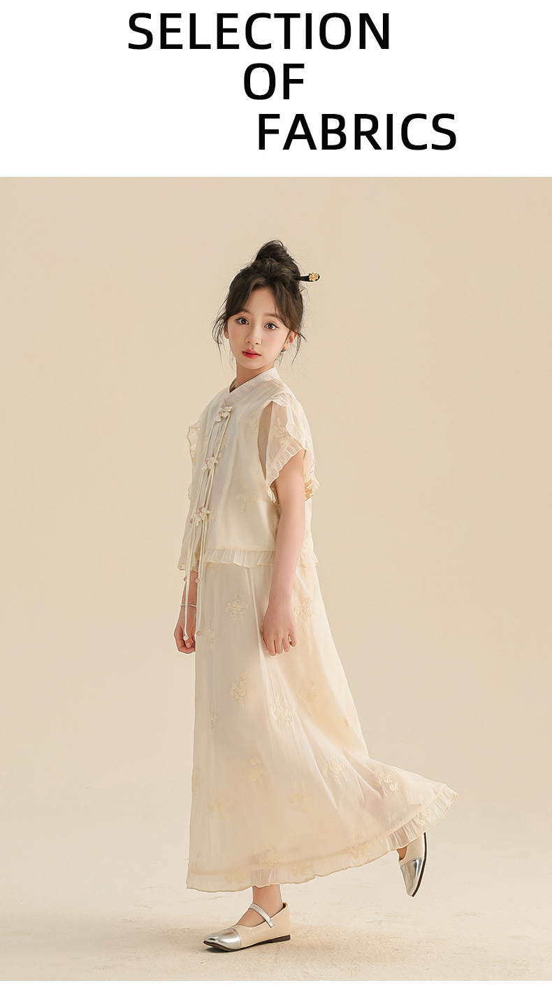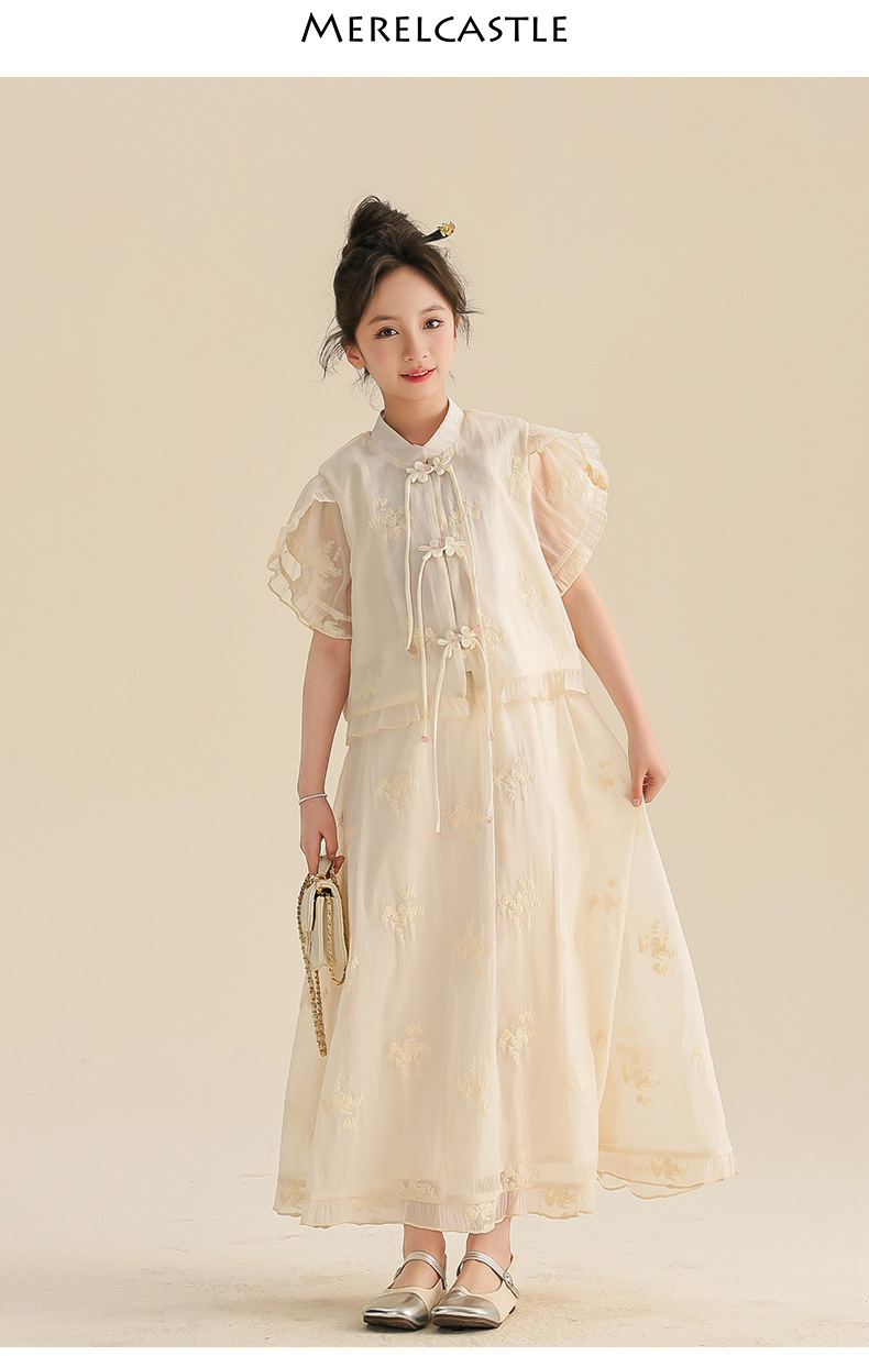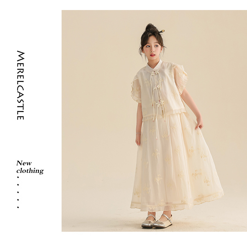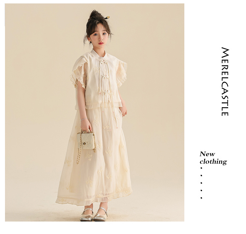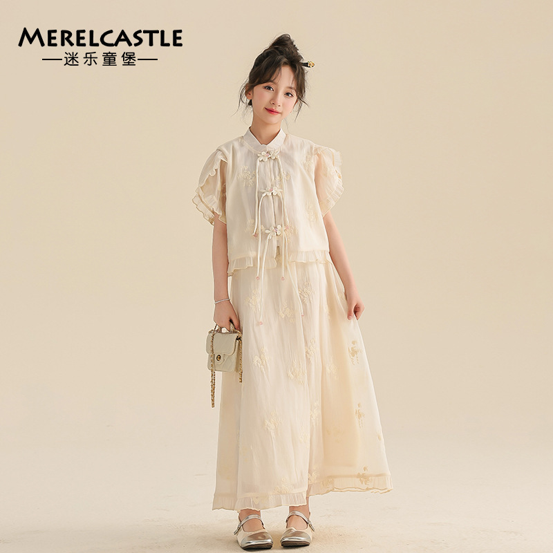 소녀 원피스 여름 2025 새로운 어린이 여름 새로운 중국 스타일 국가 스타일 세트 소녀 하이 스타일 원피스