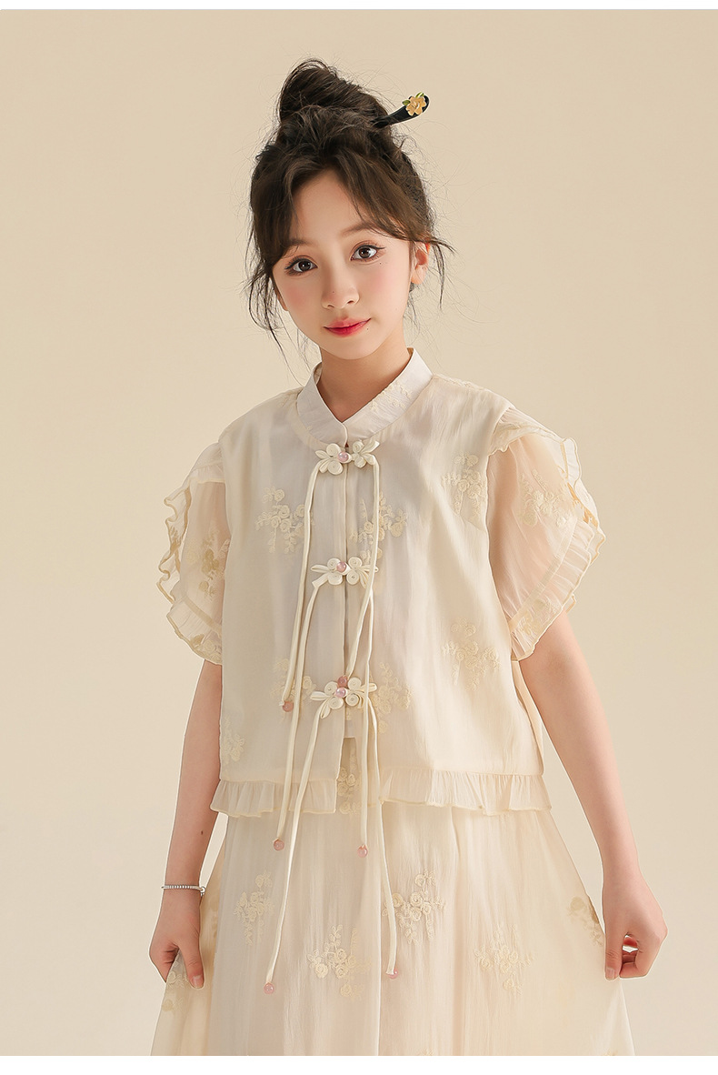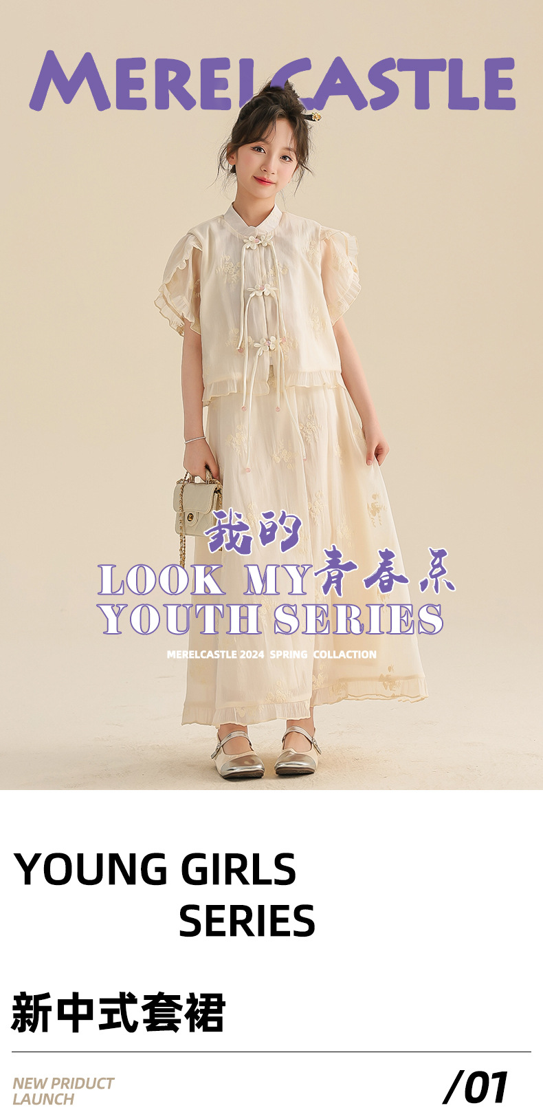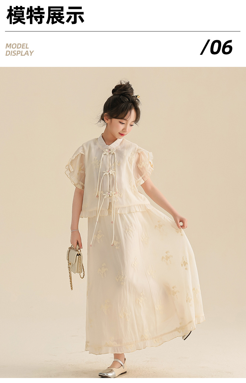 소녀 원피스 여름 2025 새로운 어린이 여름 새로운 중국 스타일 국가 스타일 세트 소녀 하이 스타일 원피스
