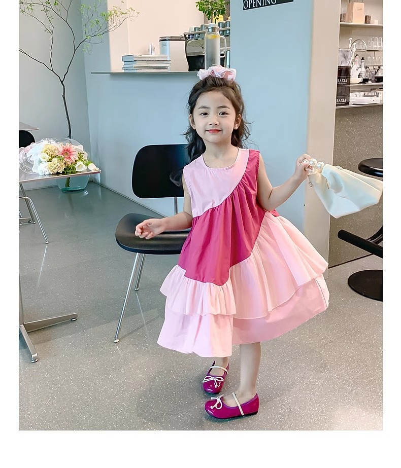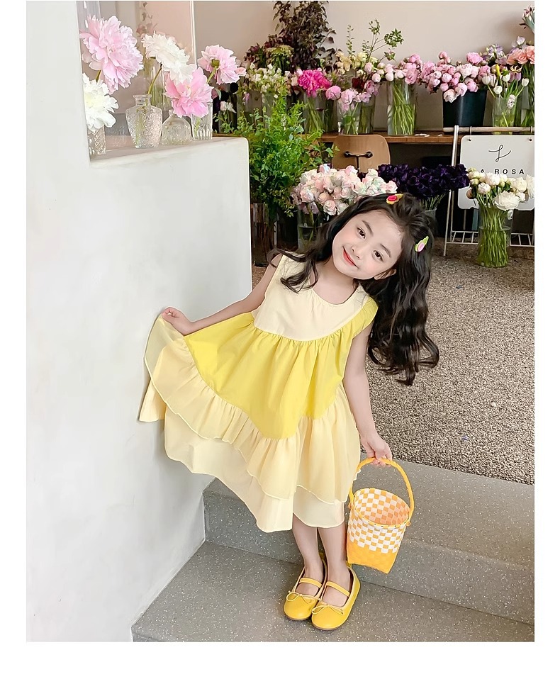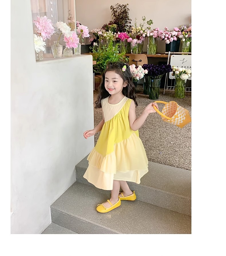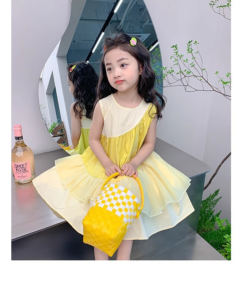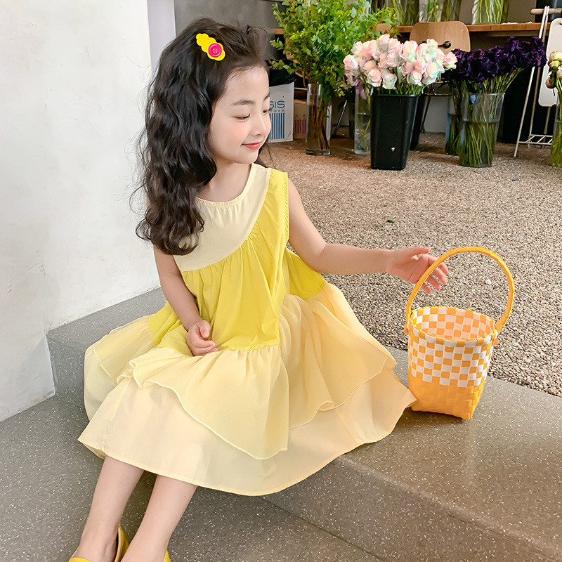 소녀의 원피스 여름 2024 새로운 아동복 서양식 쉬폰 스커트 큰 어린이 여름 소녀의 공주 스커트