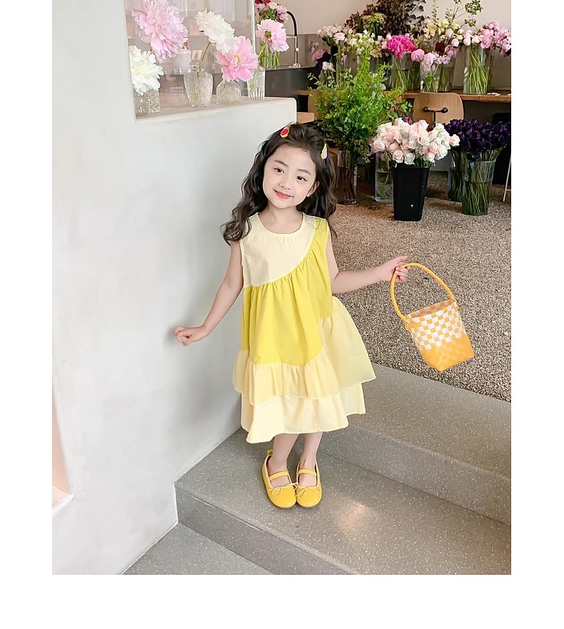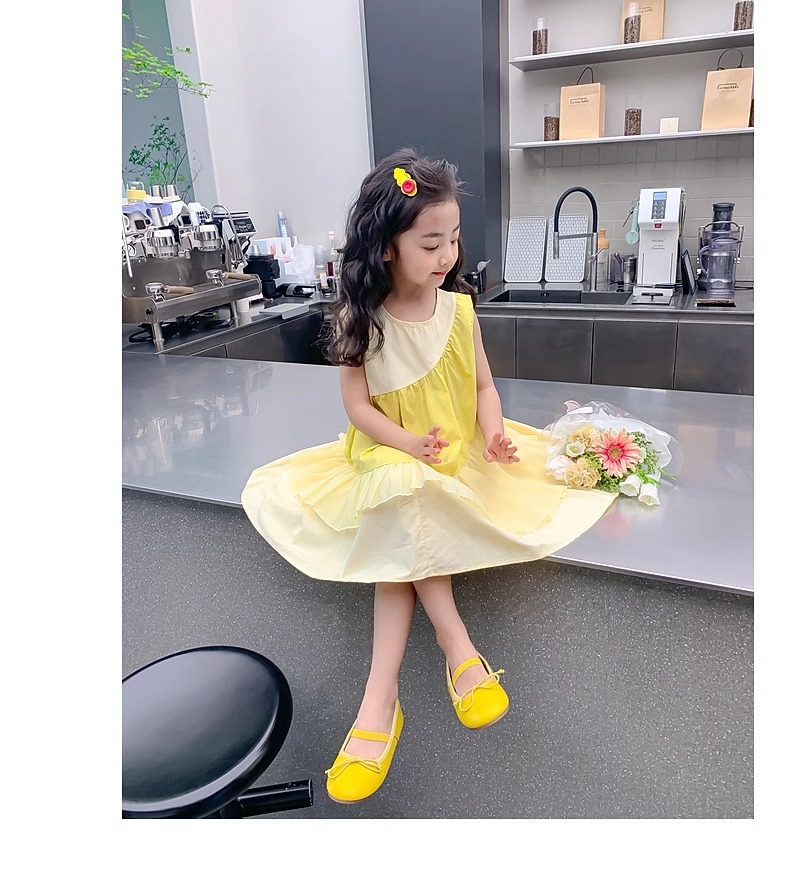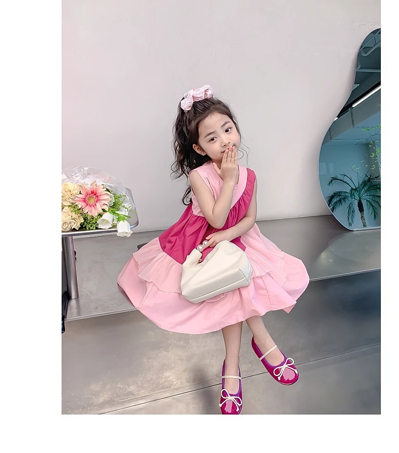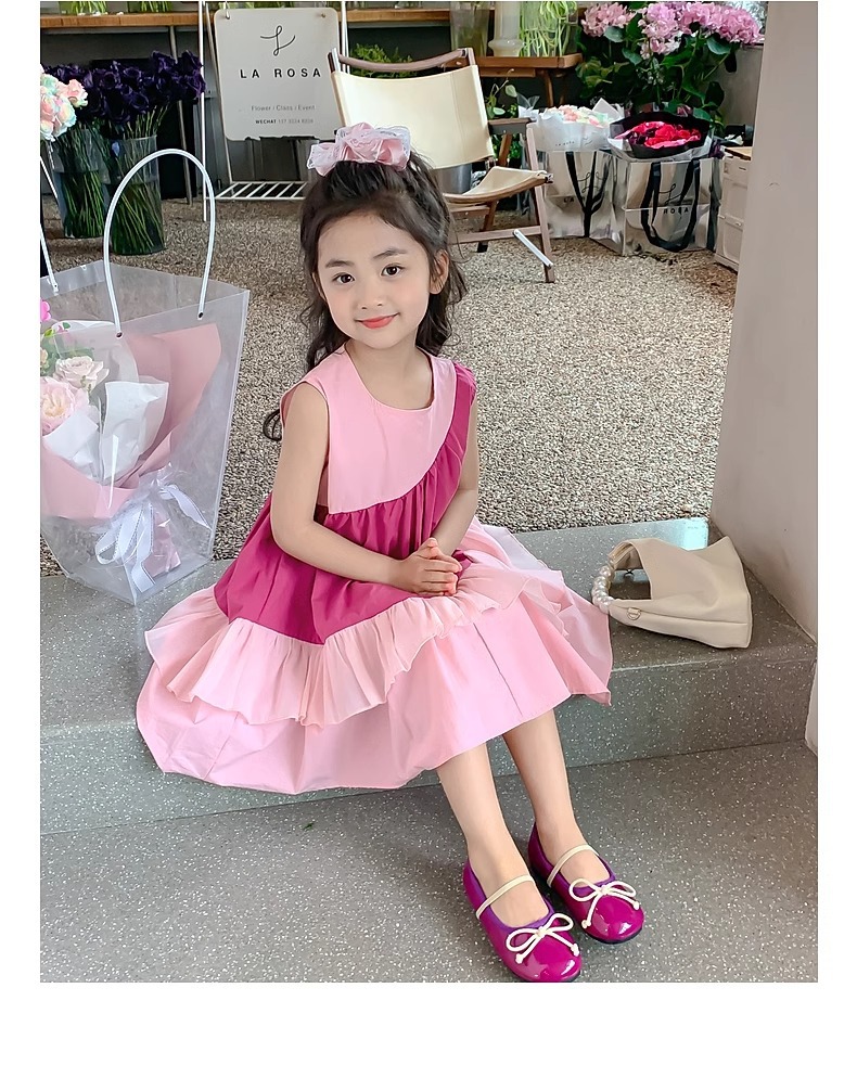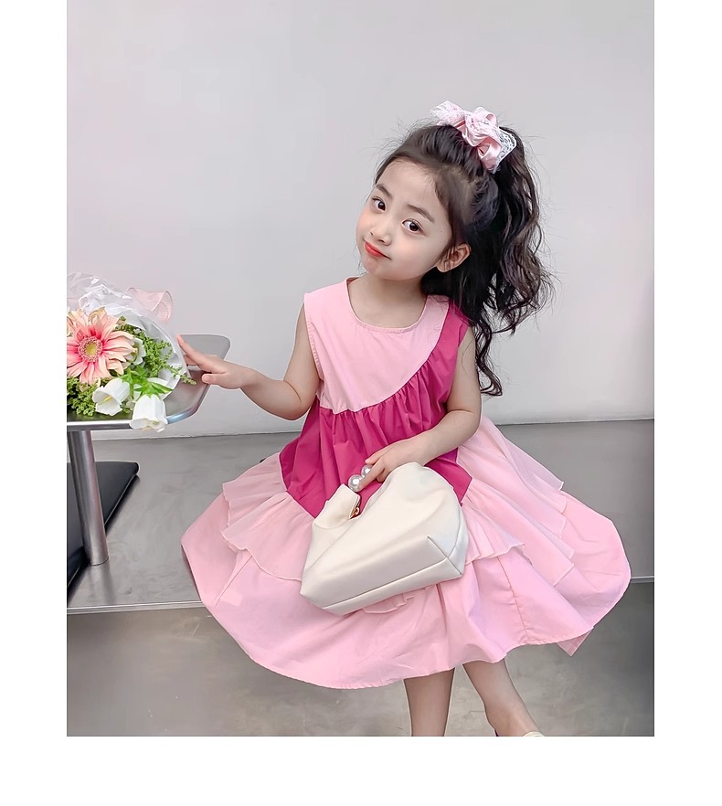 소녀의 원피스 여름 2024 새로운 아동복 서양식 쉬폰 스커트 큰 어린이 여름 소녀의 공주 스커트