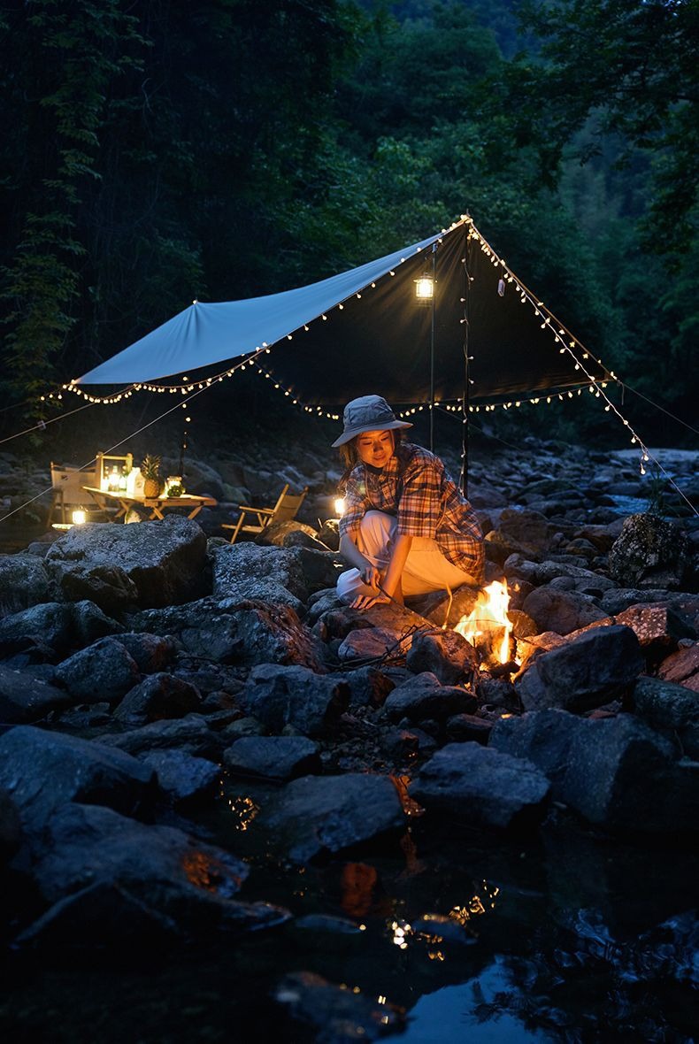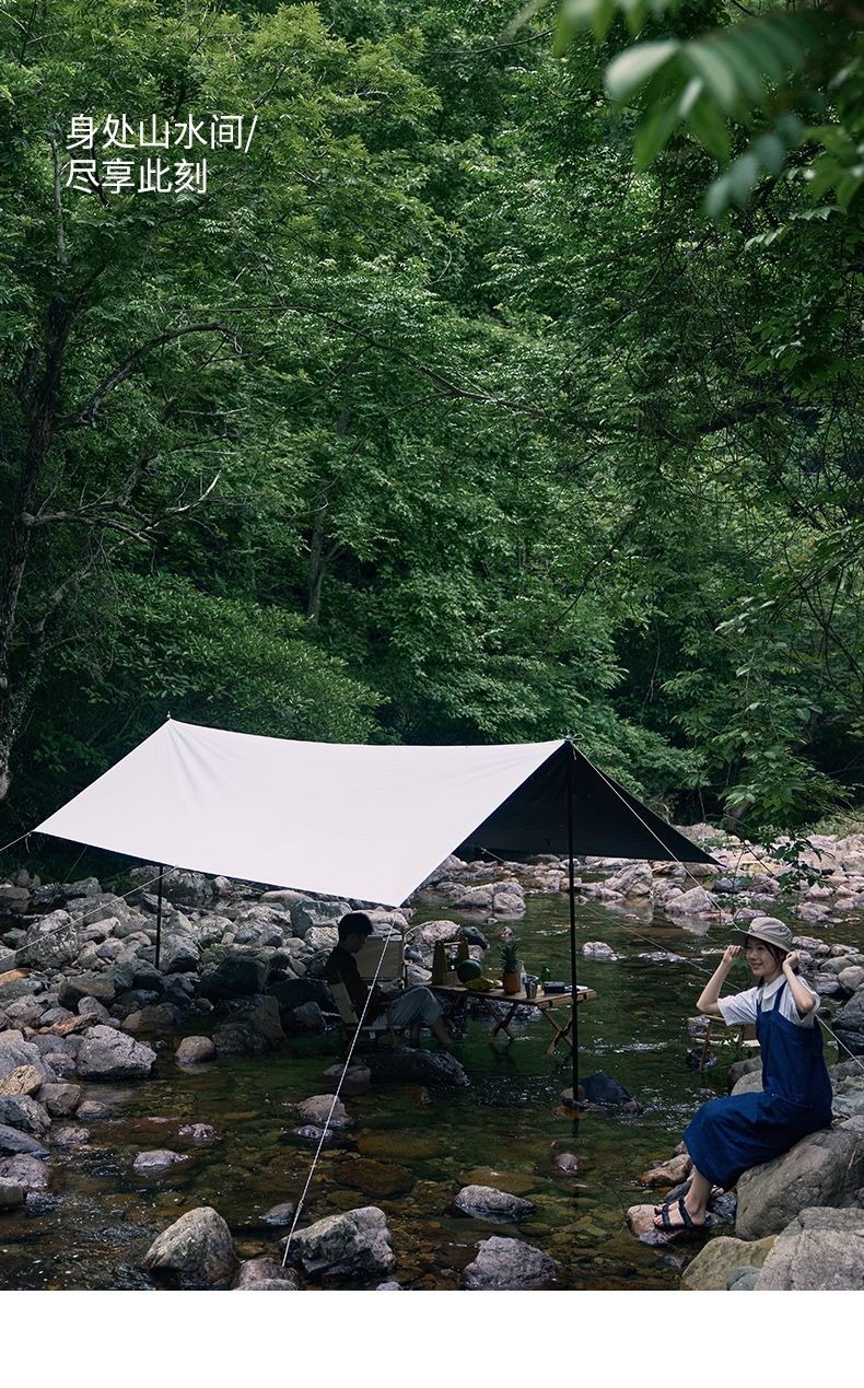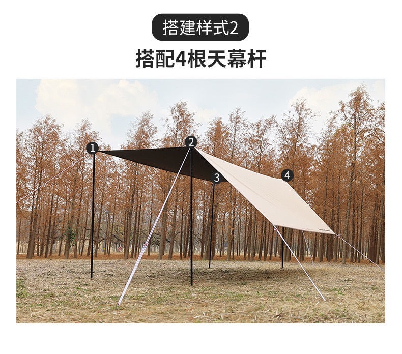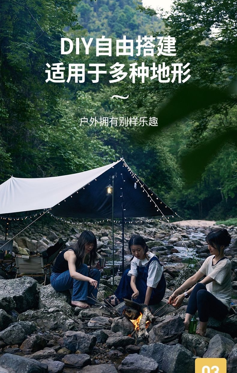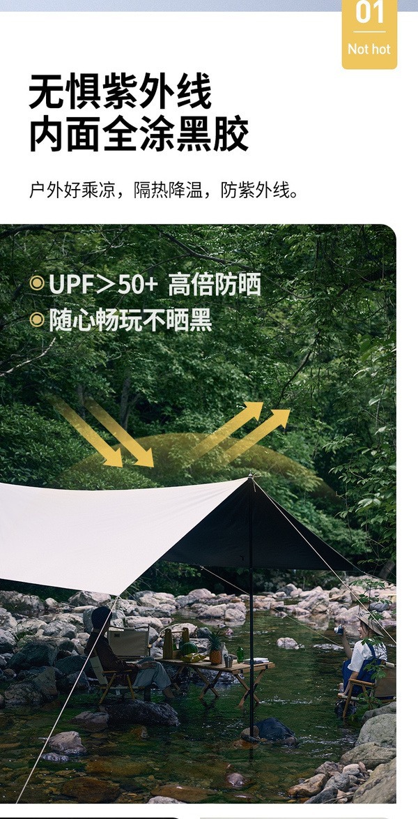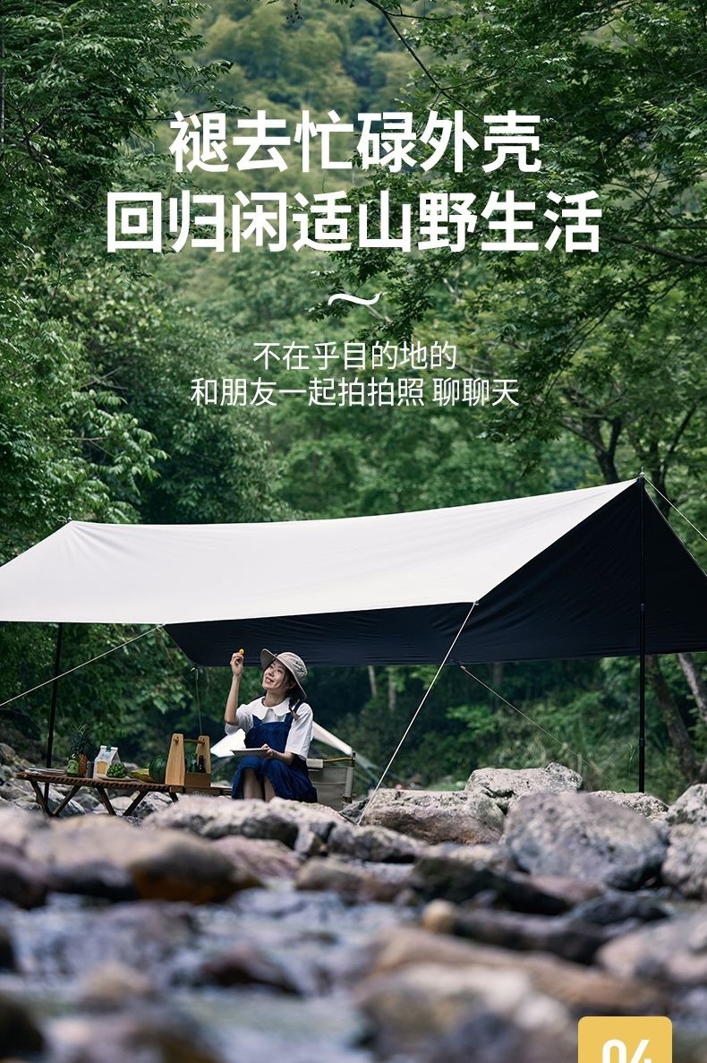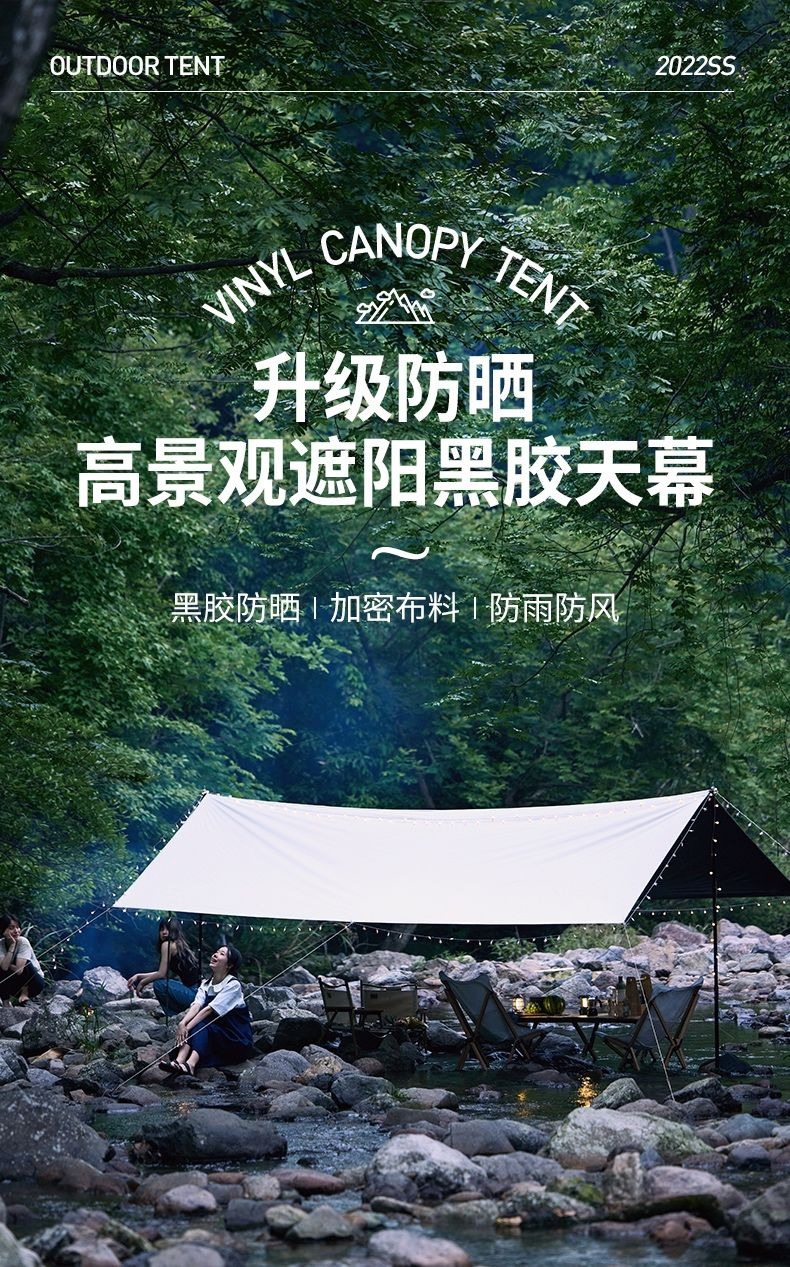 국경 간 검은 접착제 캠핑 캐노피 야외 3-4 명 두꺼운 코팅 방수 자외선 차단제 휴대용 캠핑 장비 도매스토어 가기