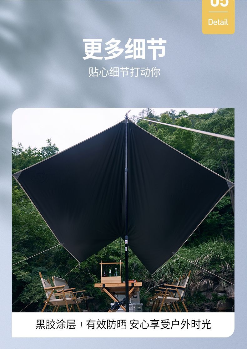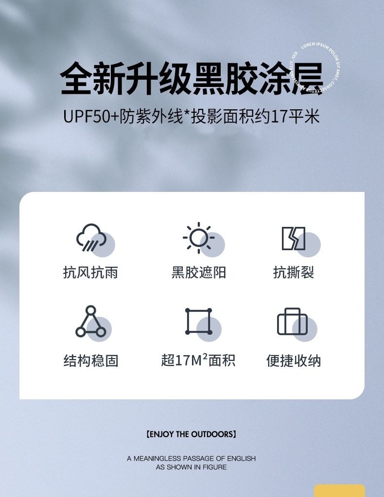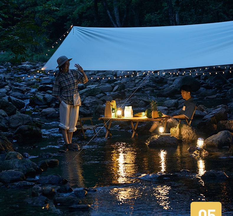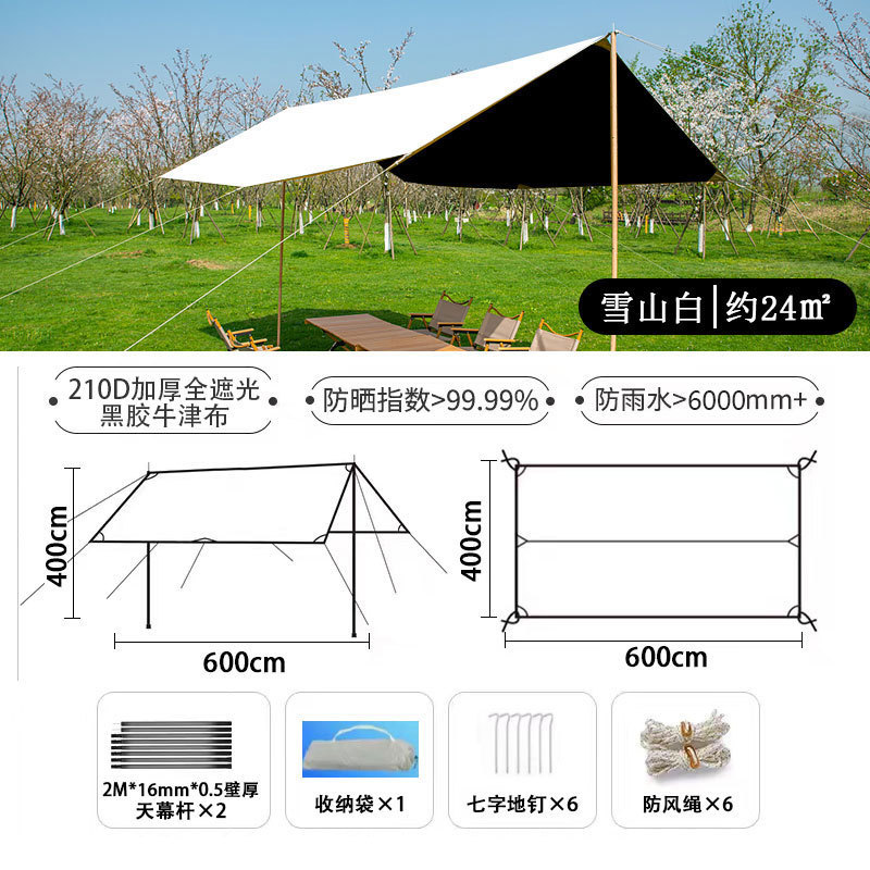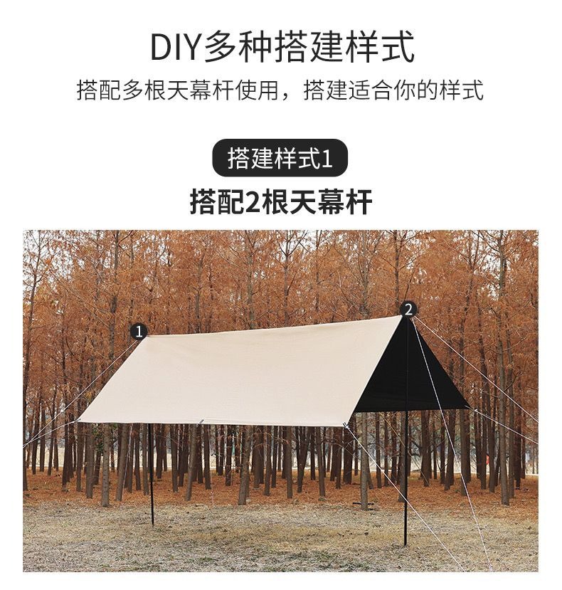 국경 간 검은 접착제 캠핑 캐노피 야외 3-4 명 두꺼운 코팅 방수 자외선 차단제 휴대용 캠핑 장비 도매