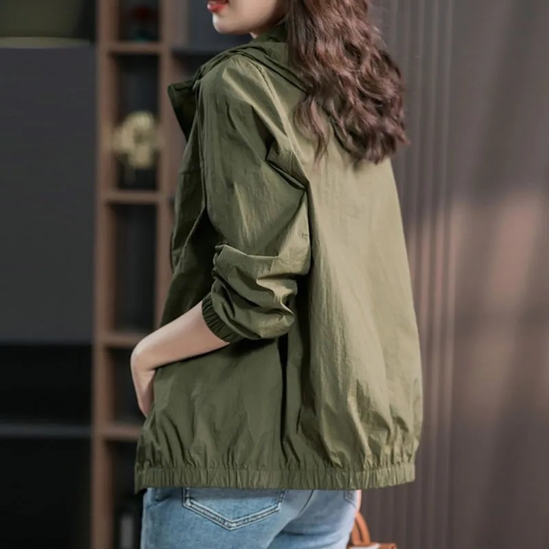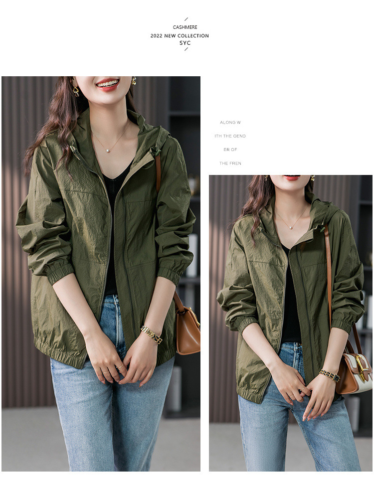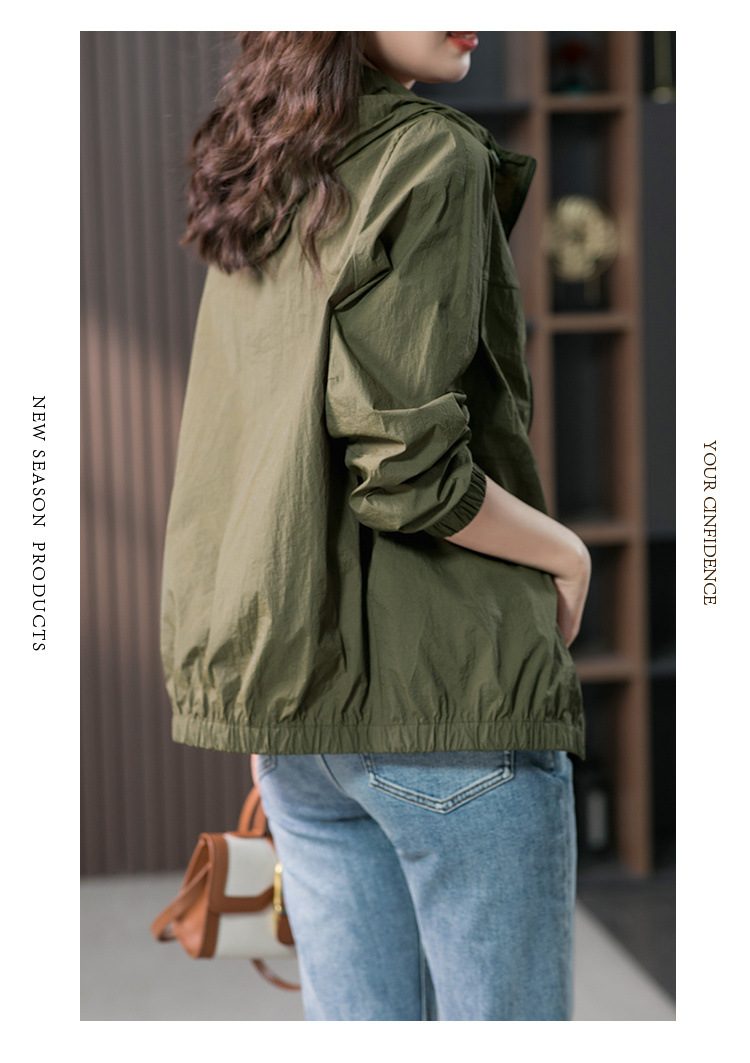 봄과 가을 후드 라이트급 쇼트 코트 여성의 태양 보호 코트 봄 새로운 한국 스타일 작은 재킷 느슨한 캐주얼 탑