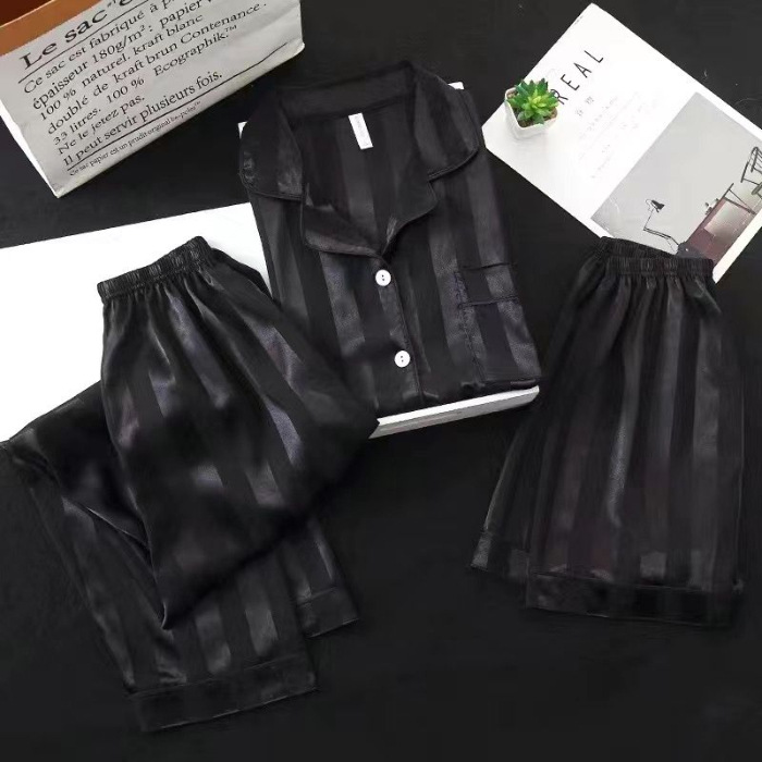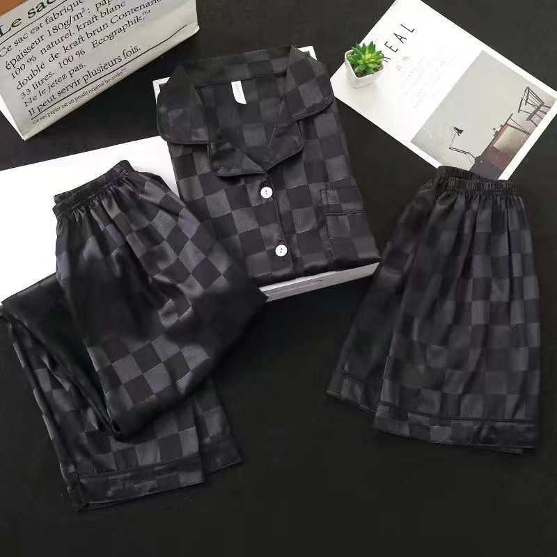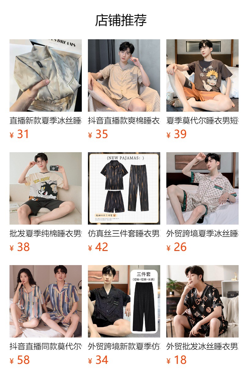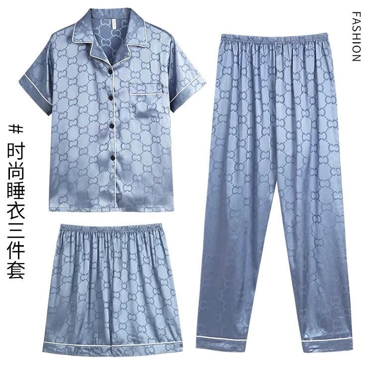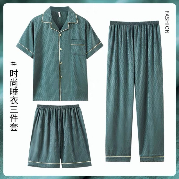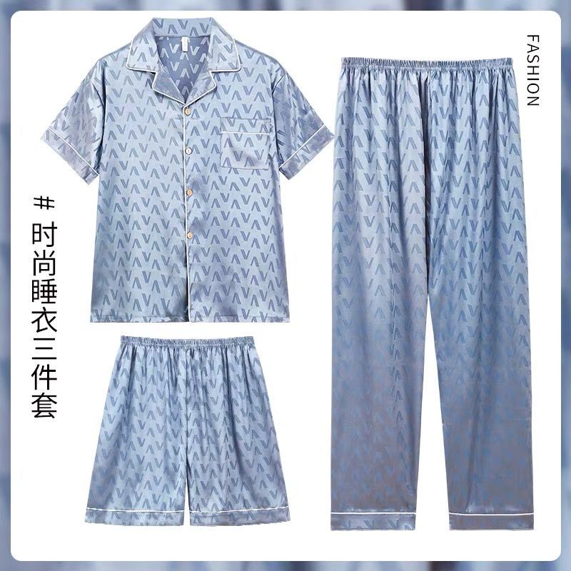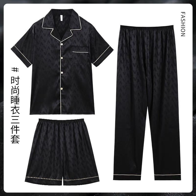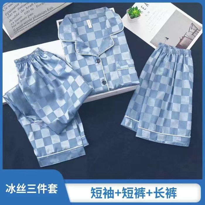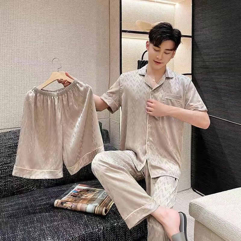 인터넷 유명 여름 아이스 실크 파자마 남성용 카디건 반팔 하이 엔드 캐주얼 의상 홈 의류 세트스토어 가기
