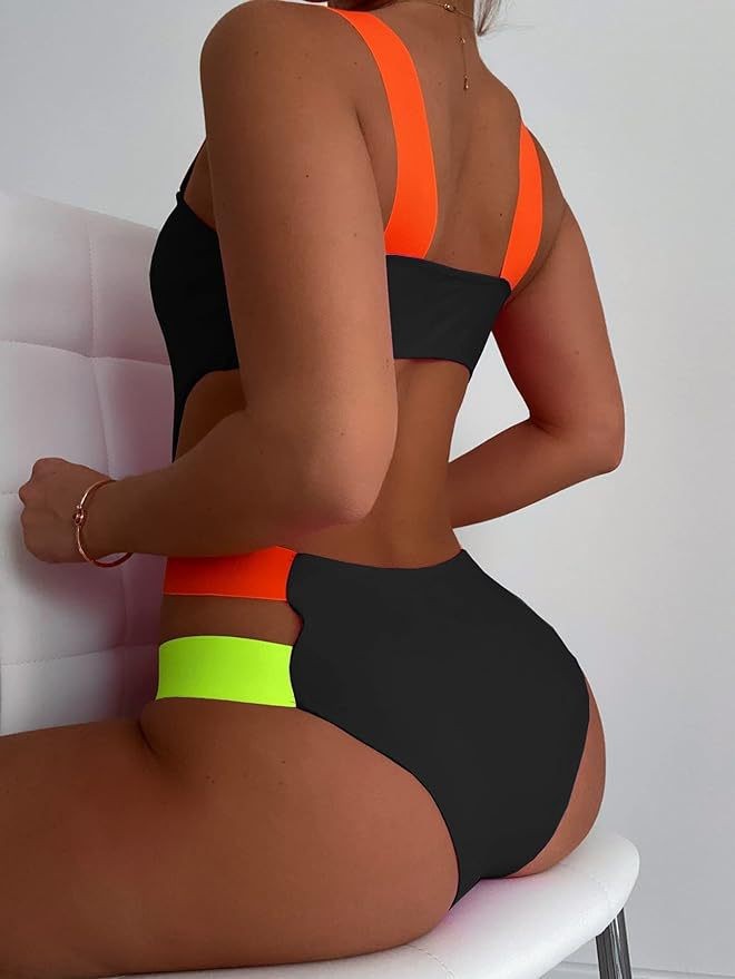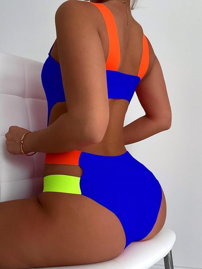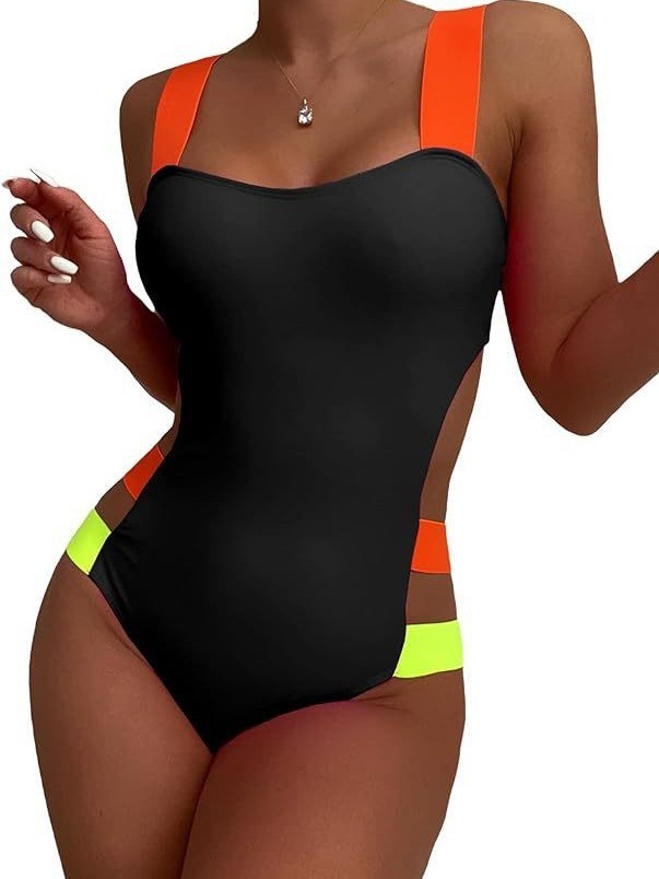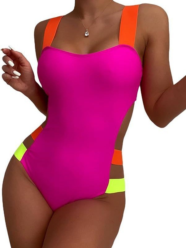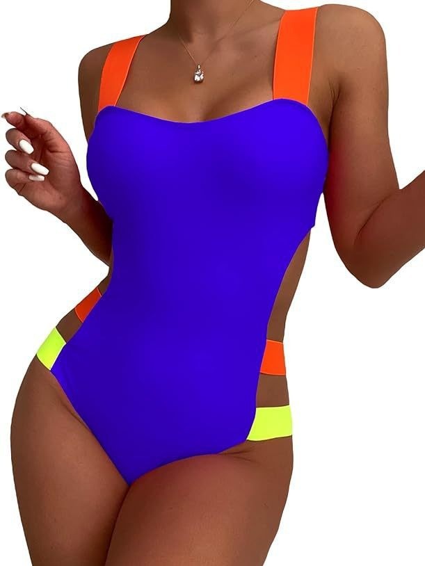 2024 여성 고급 섹시 컬러 블록 할로우 아웃 원피스 수영복 수영복, 백리스 섹시한 아름다운 뒷면