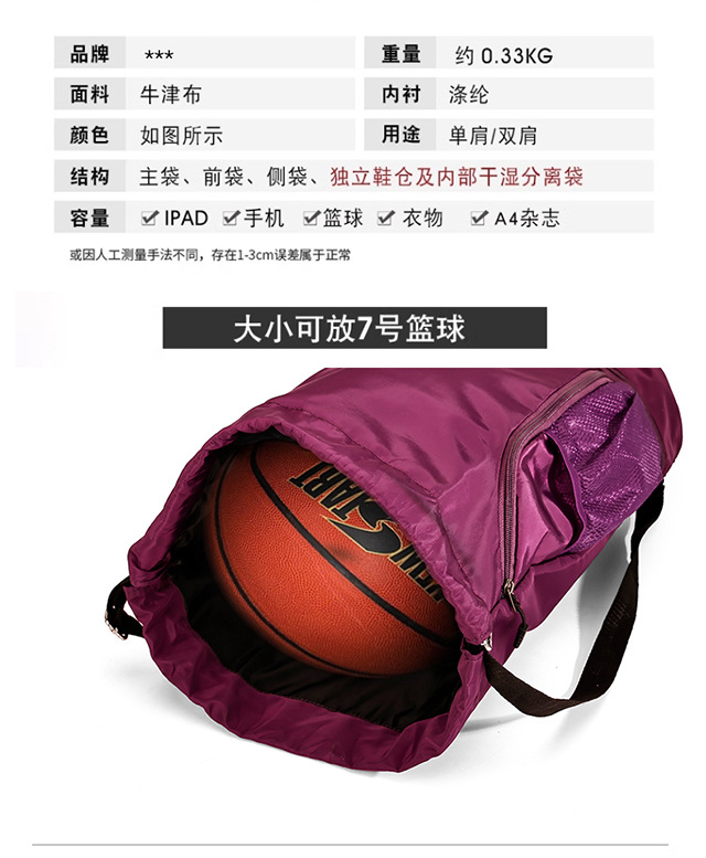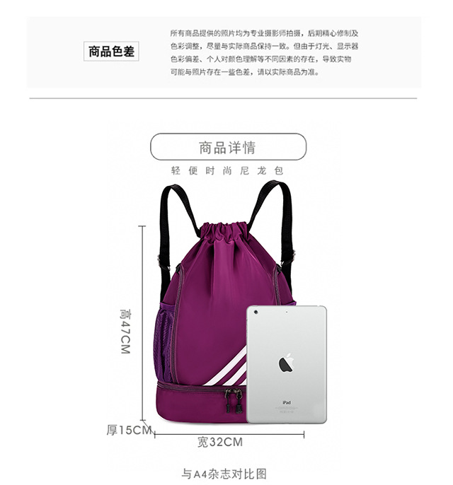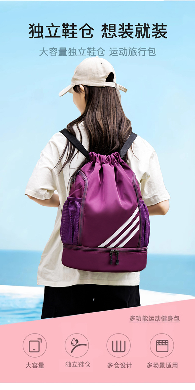 2025 새로운 농구 가방 Drawstring 간단한 경량 대용량 건식 및 습식 분리 다기능 야외 스포츠 배낭