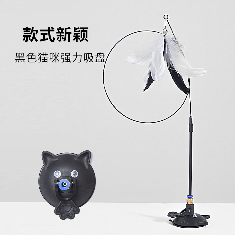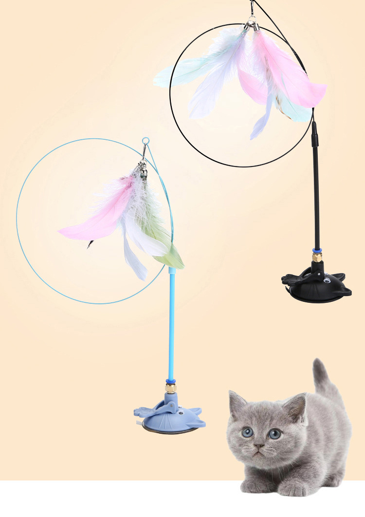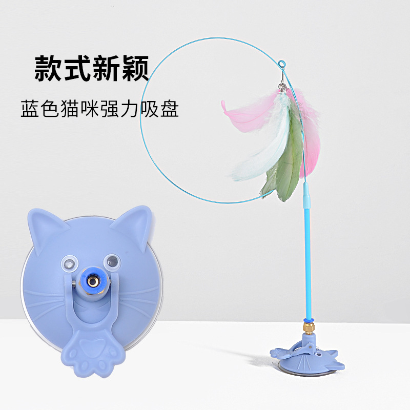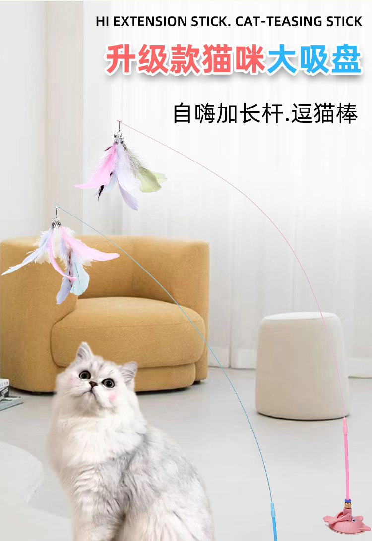 공장 고양이 머리 강한 흡입 컵 고양이 스틱 다채로운 깃털 강철 와이어 긴 막대 내구성 벨 고양이 셀프 하이 장난감스토어 가기