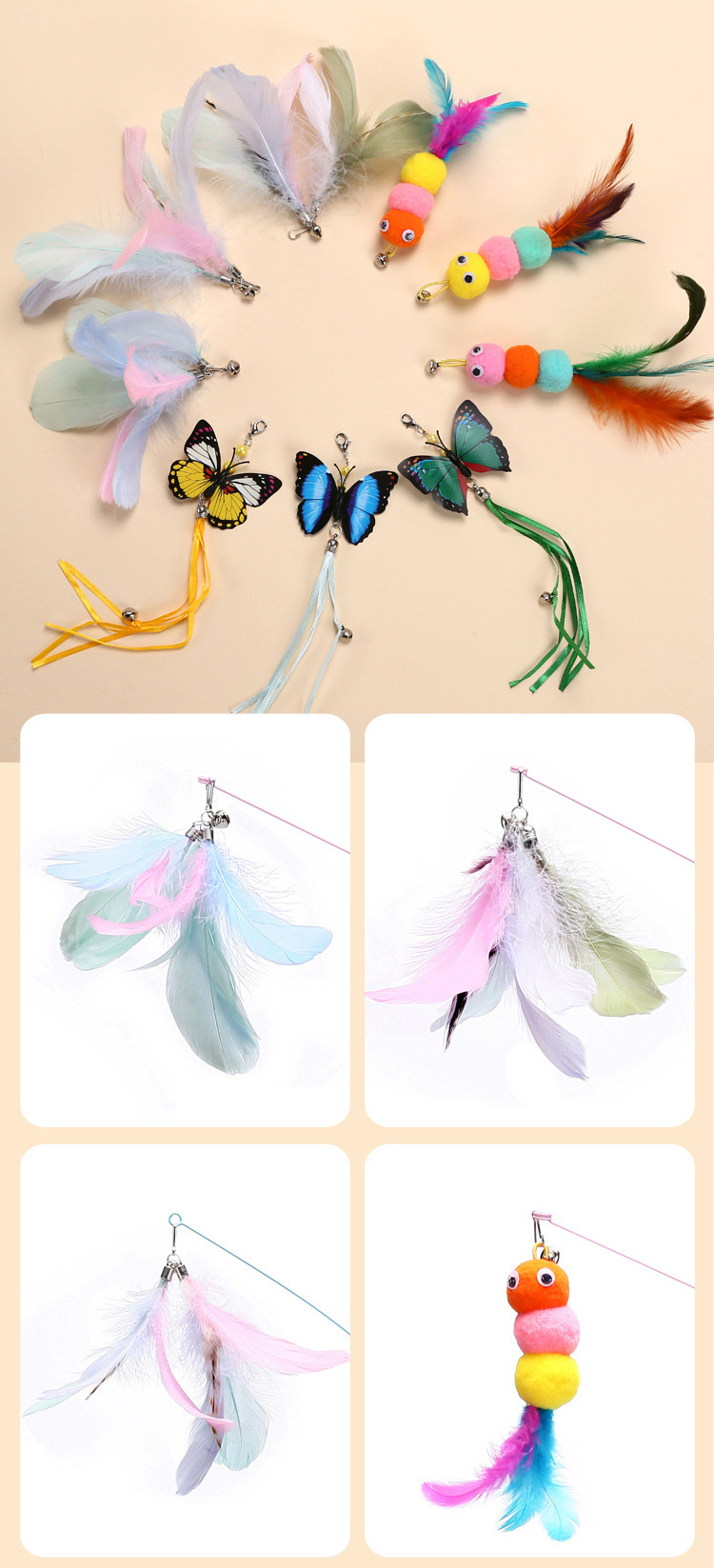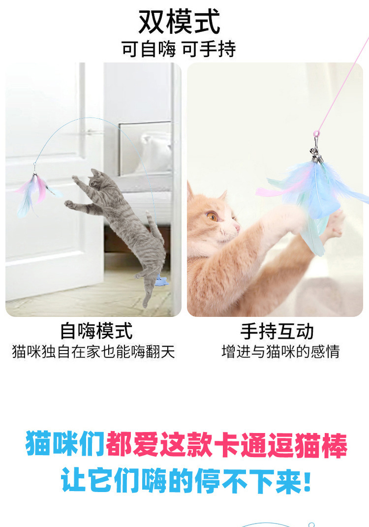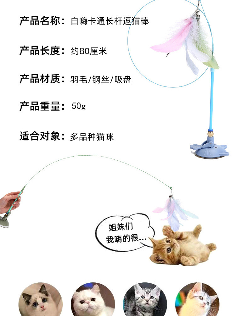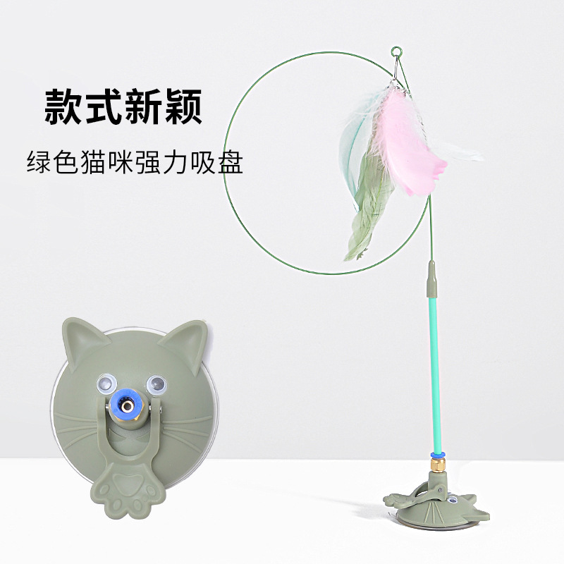 공장 고양이 머리 강한 흡입 컵 고양이 스틱 다채로운 깃털 강철 와이어 긴 막대 내구성 벨 고양이 셀프 하이 장난감스토어 가기