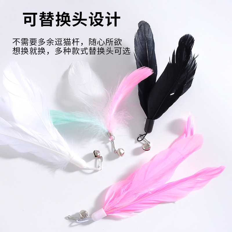 공장 고양이 머리 강한 흡입 컵 고양이 스틱 다채로운 깃털 강철 와이어 긴 막대 내구성 벨 고양이 셀프 하이 장난감