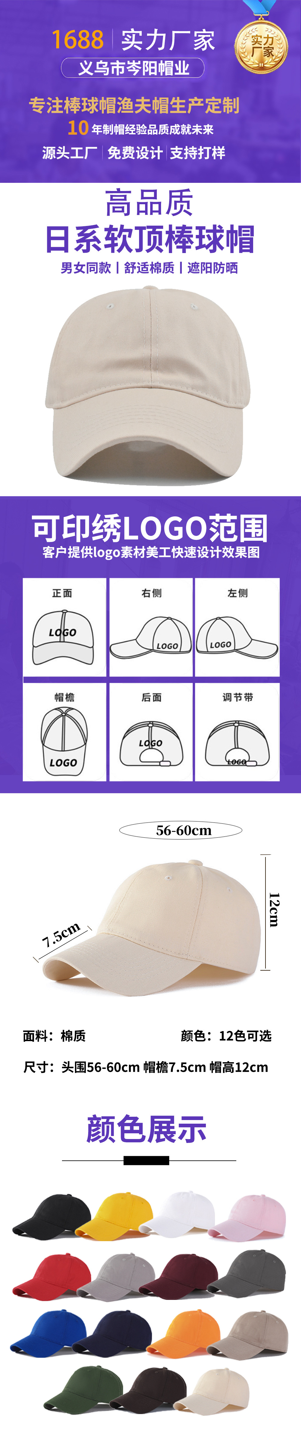 새로운 퓨어 코튼 캡 소프트 탑 솔리드 컬러 야구 모자 여자 일본 스타일 트렌디 썬 보호 보드 올 매치 야구 모자 남자