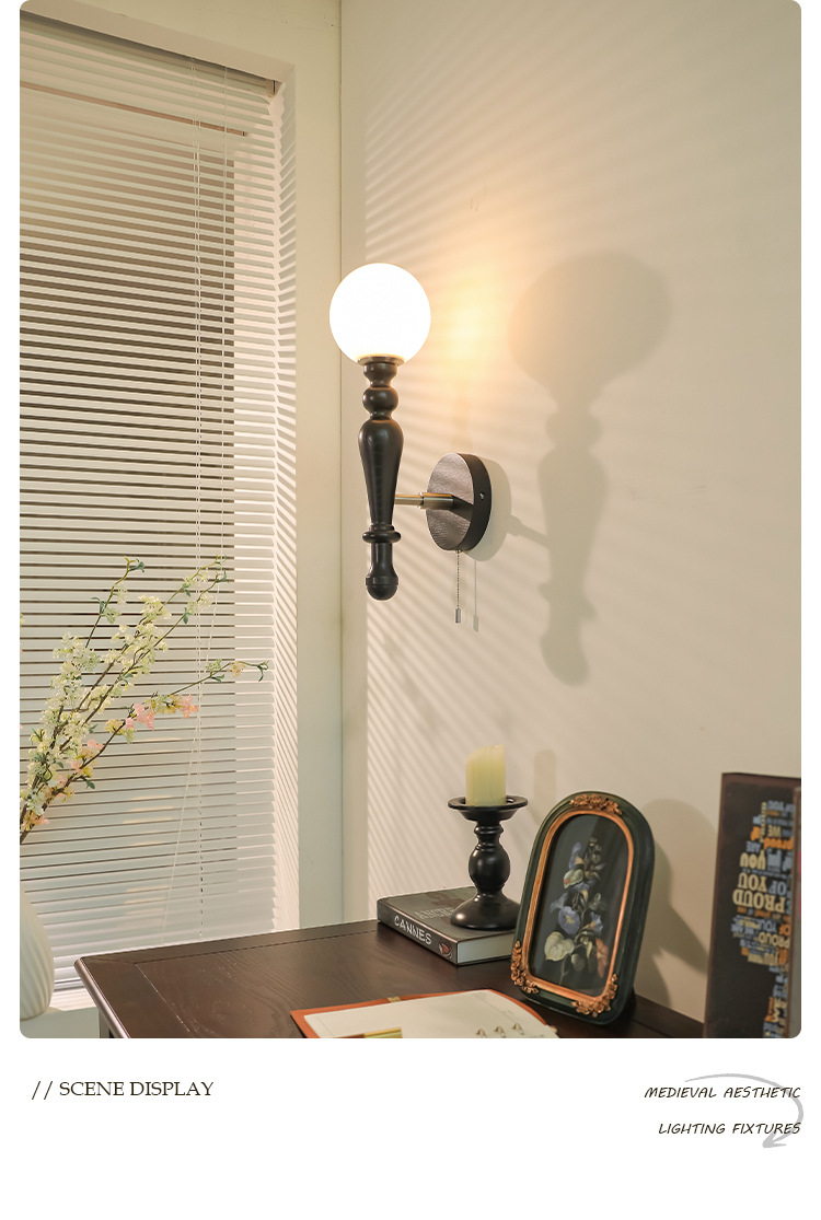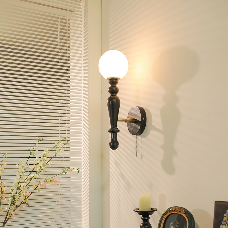 중간 고대 프랑스 스타일 로그 바람 벽 램프 침실 침실 램프 디자이너 미국 스타일 복고풍 거실 장식 램프 아트스토어 가기