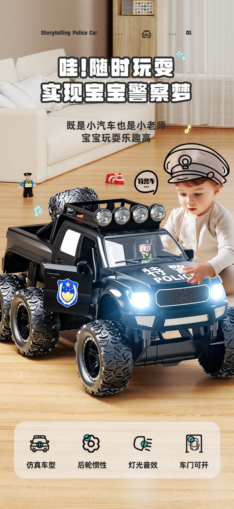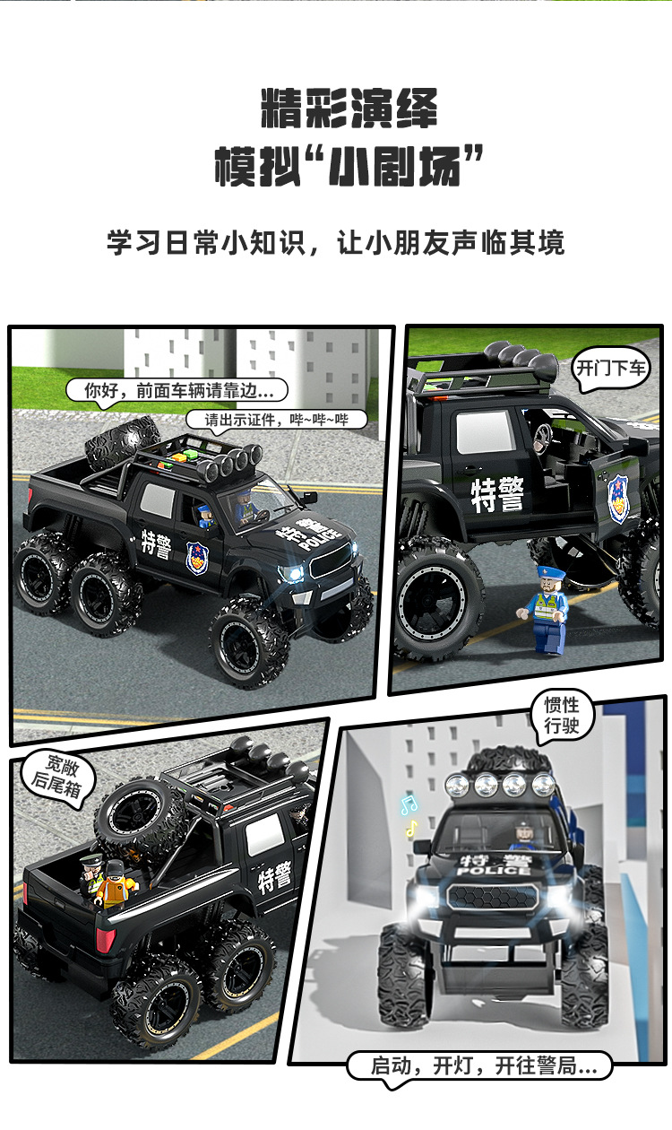 • 초대형 [합금 | 7 열린 문] 오프로드 특수 경찰차 "소리와 빛 음향 효과"