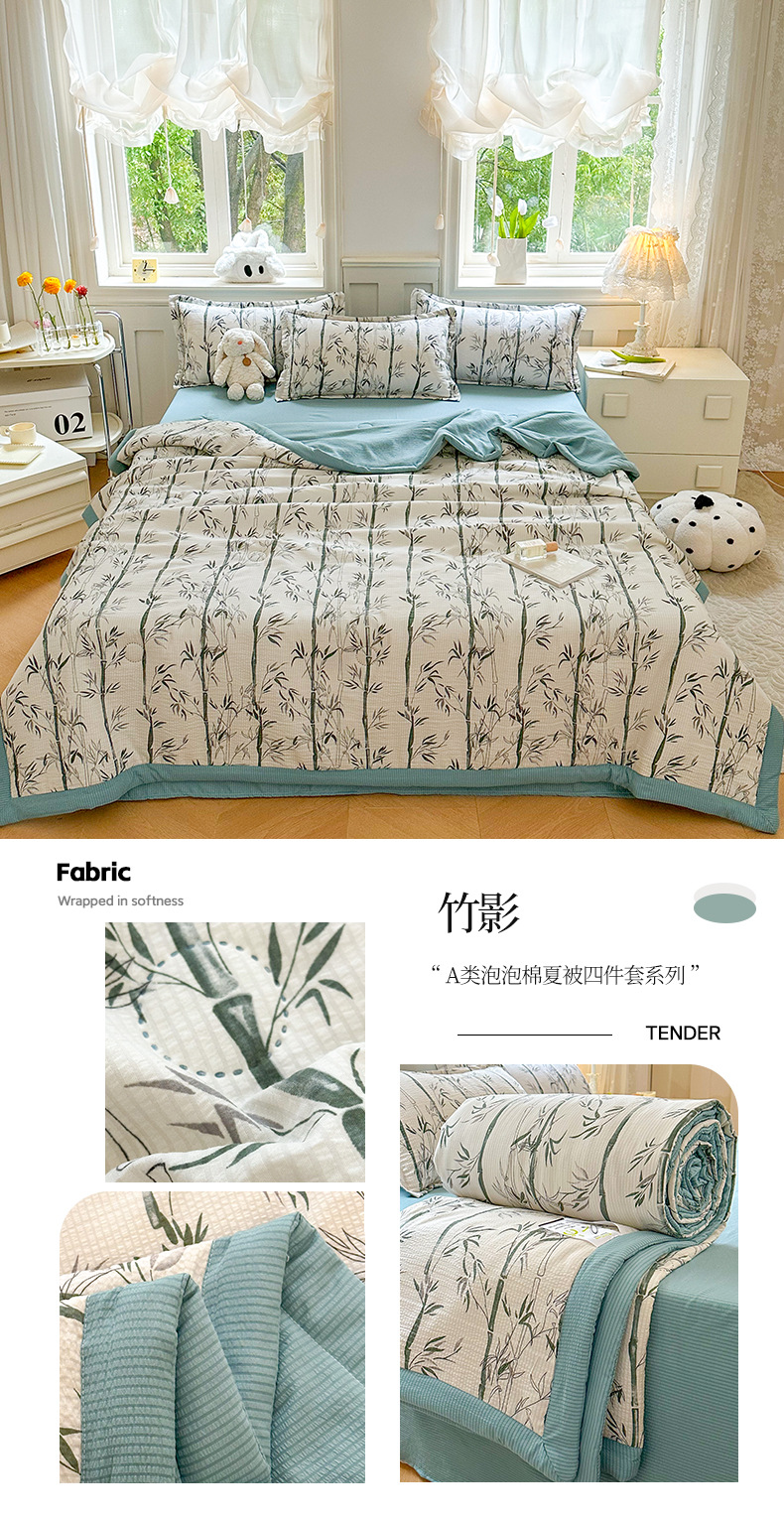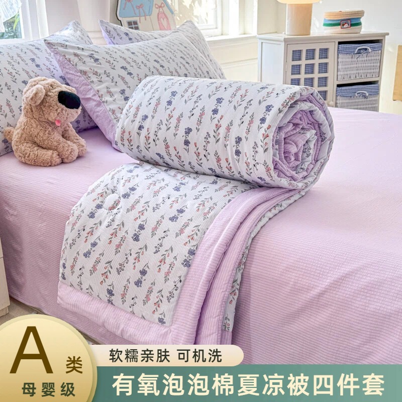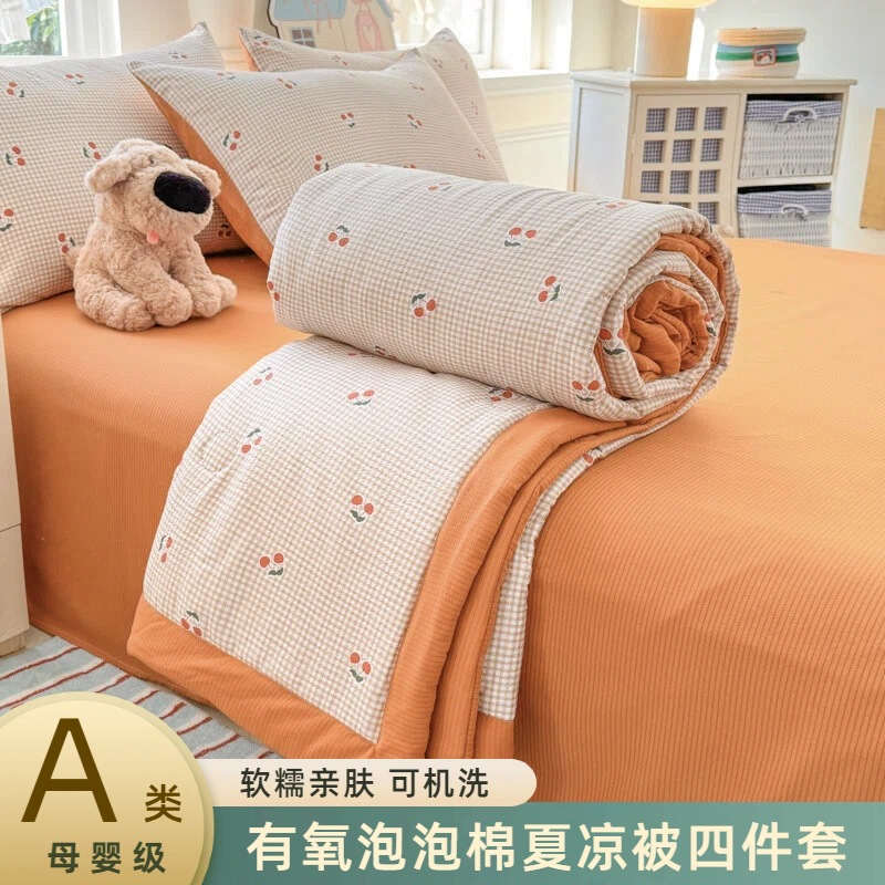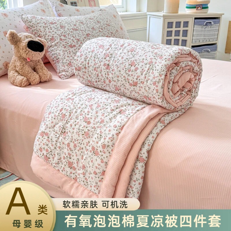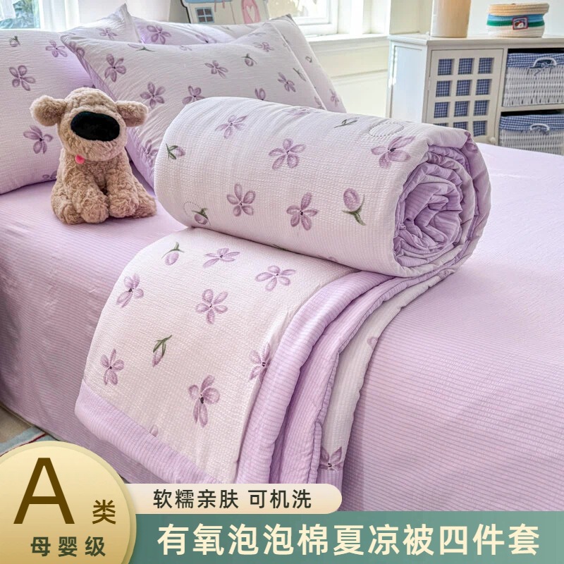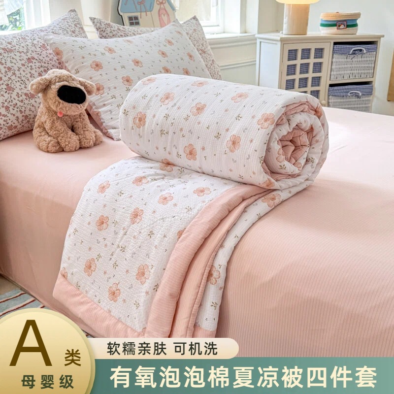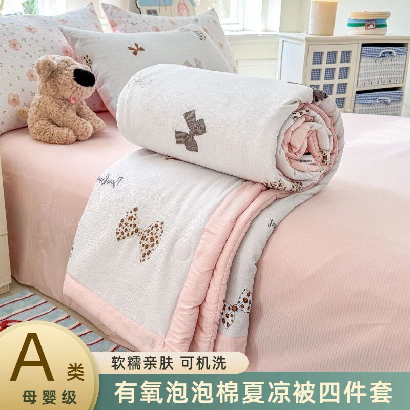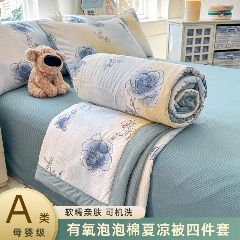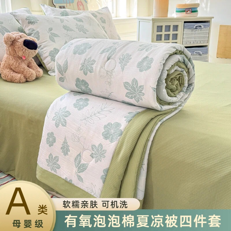 새로운 클래스 A 엄마와 유아 학년 거품 여름 이불 네 조각 피부 친화적 인 여름 시원한 이불 침대 모자 작은 신선한 에어컨 퀼트
