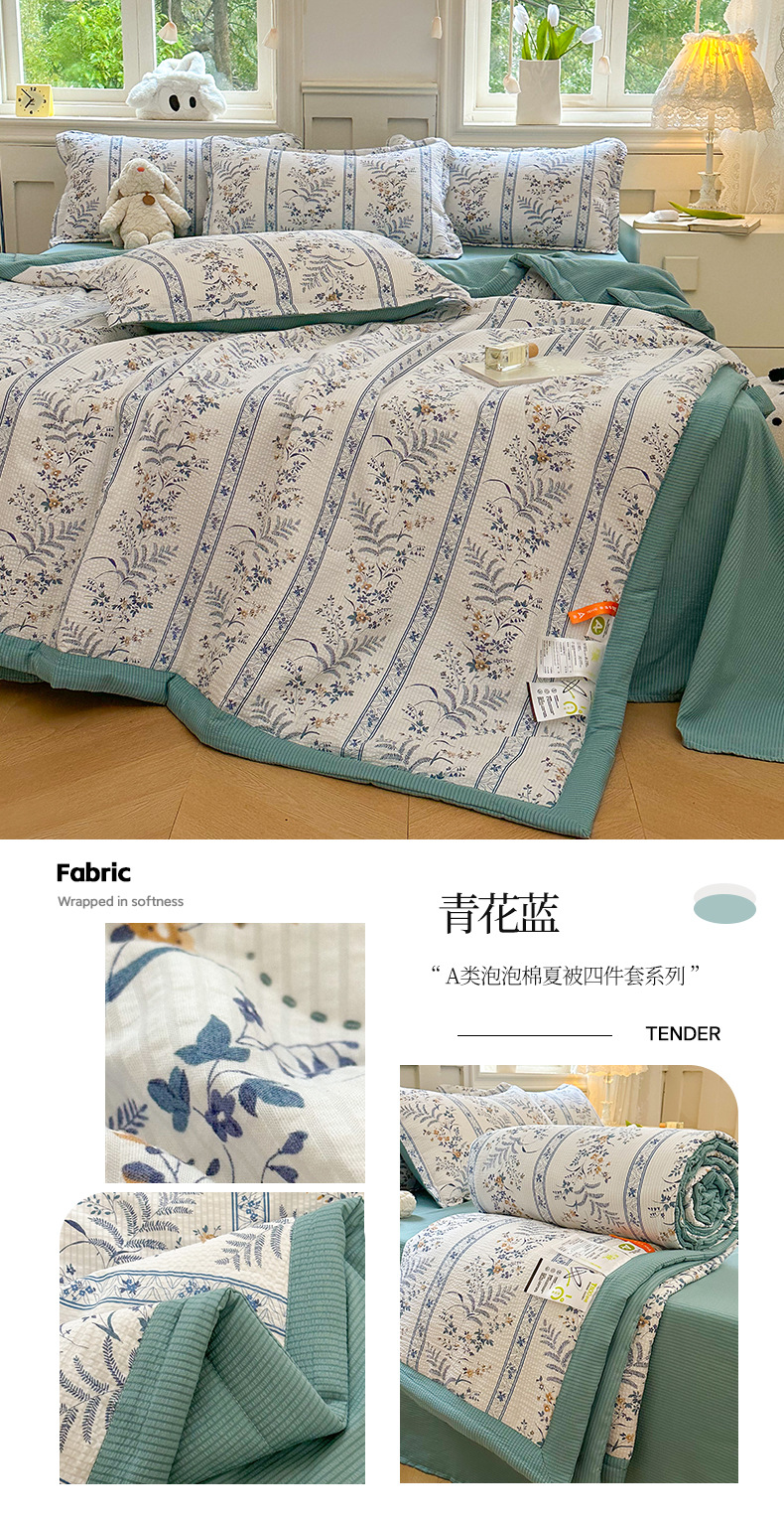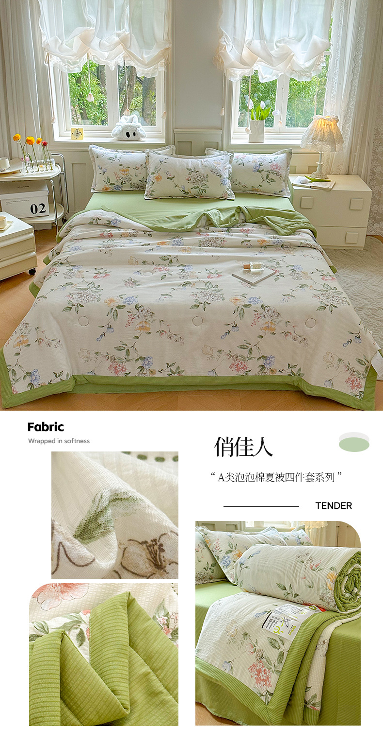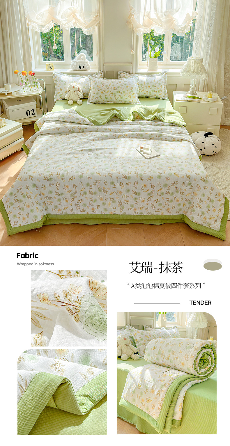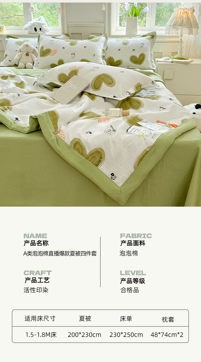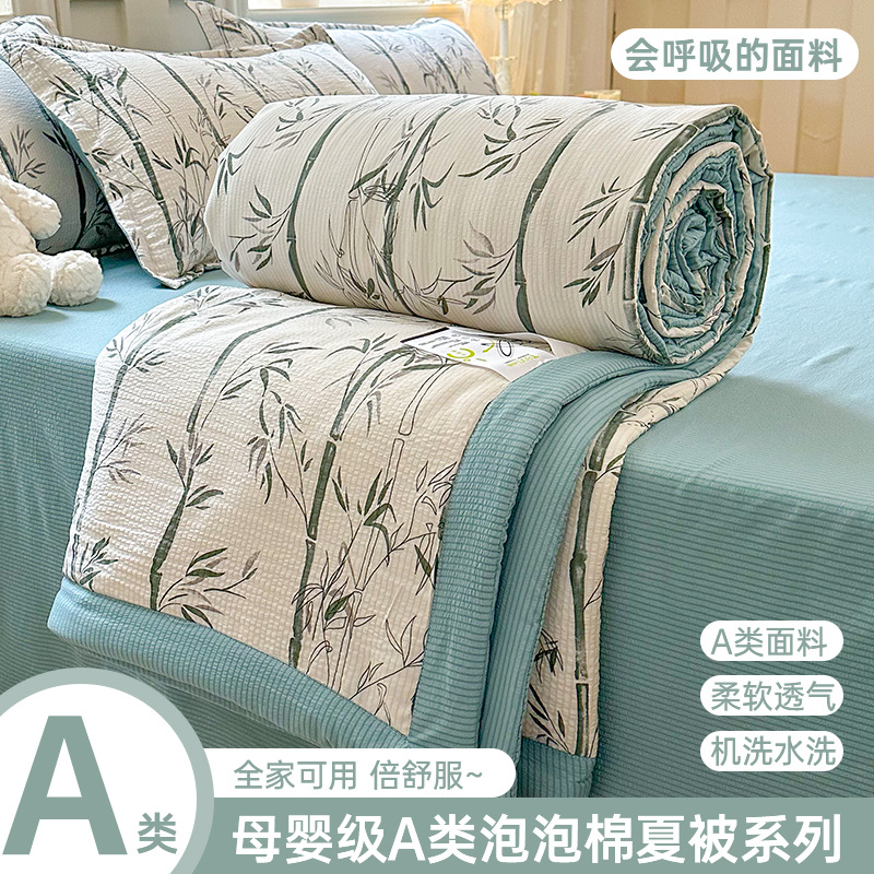 새로운 클래스 A 엄마와 유아 학년 거품 여름 이불 네 조각 피부 친화적 인 여름 시원한 이불 침대 모자 작은 신선한 에어컨 퀼트