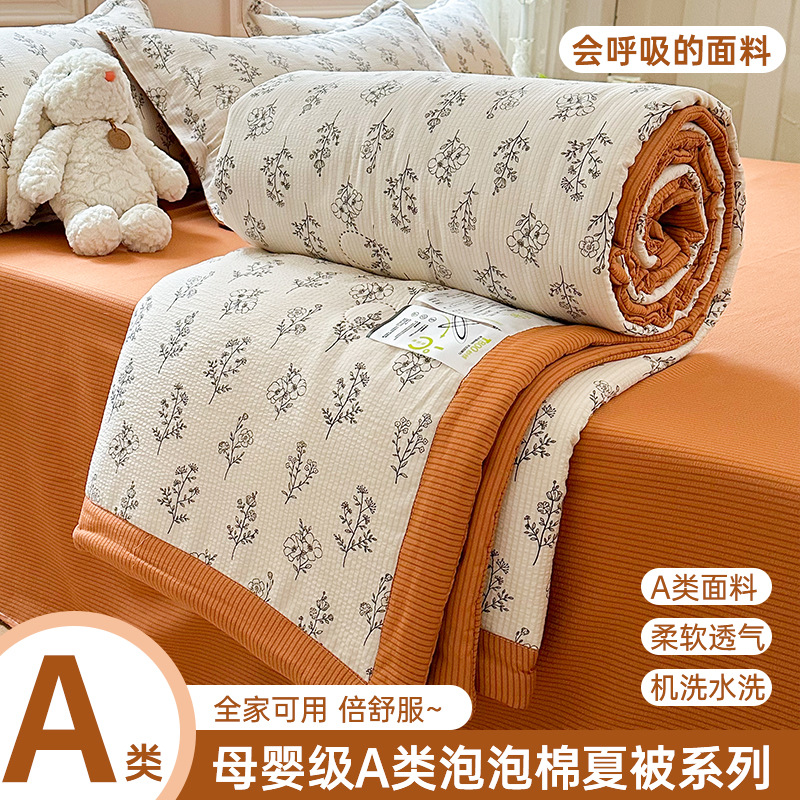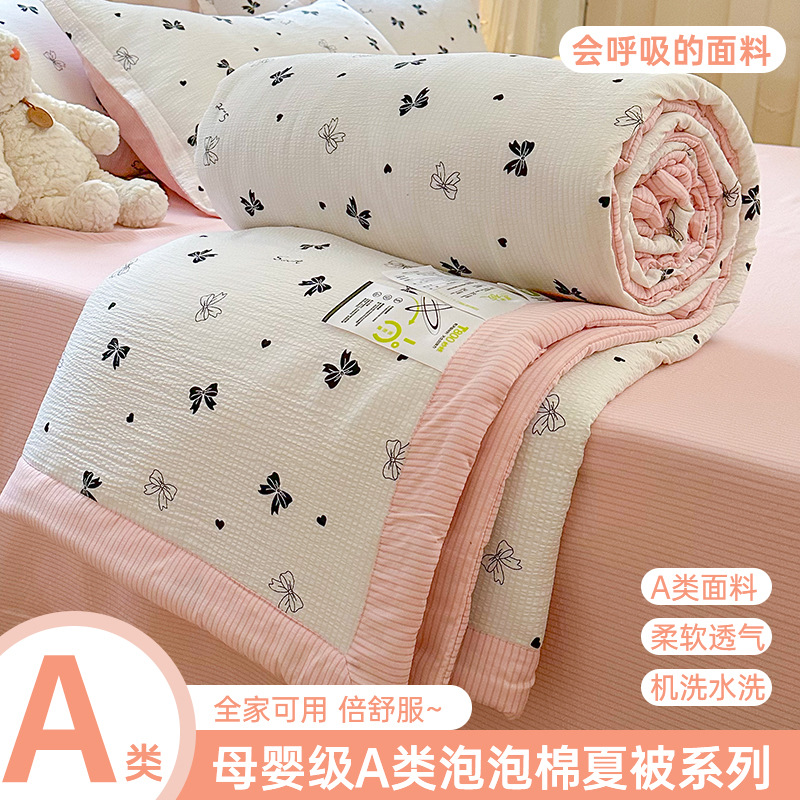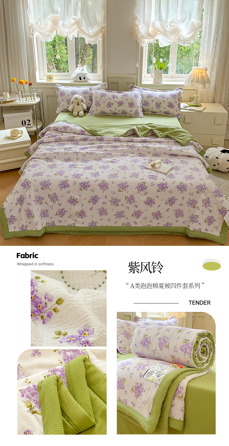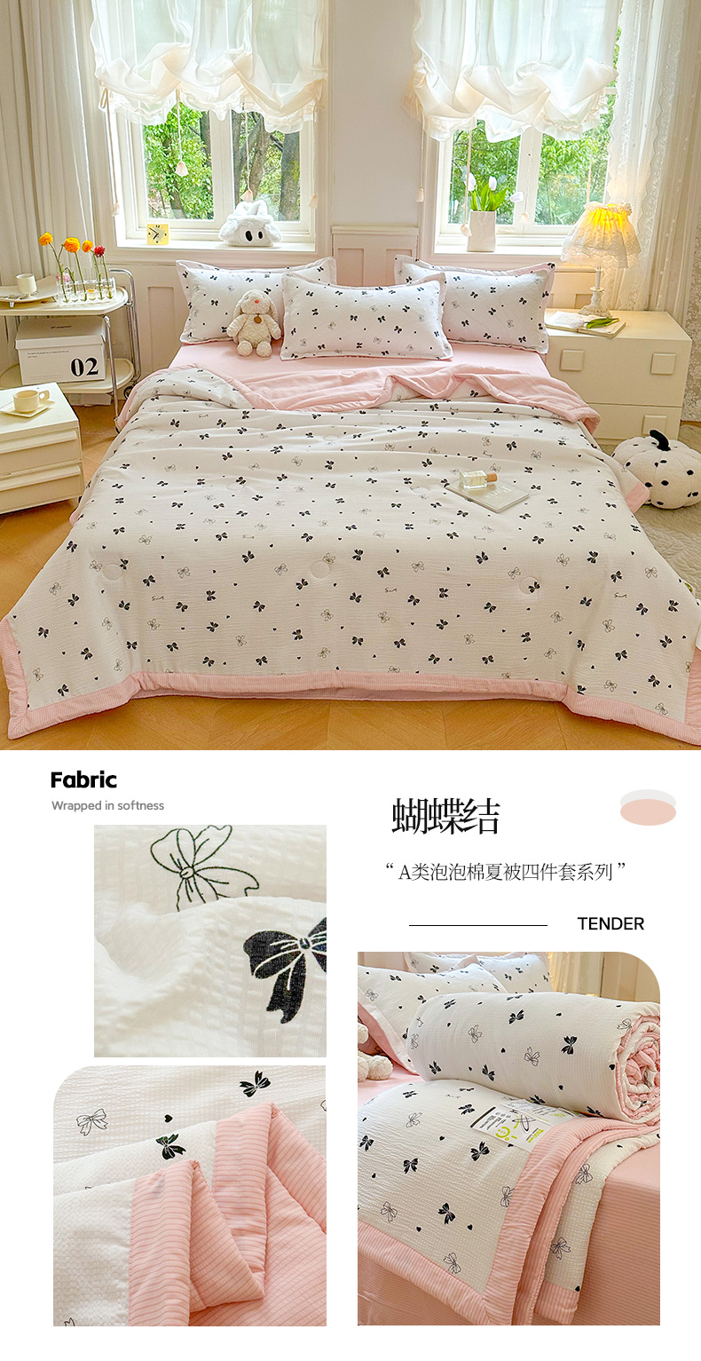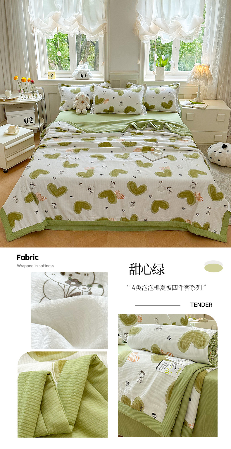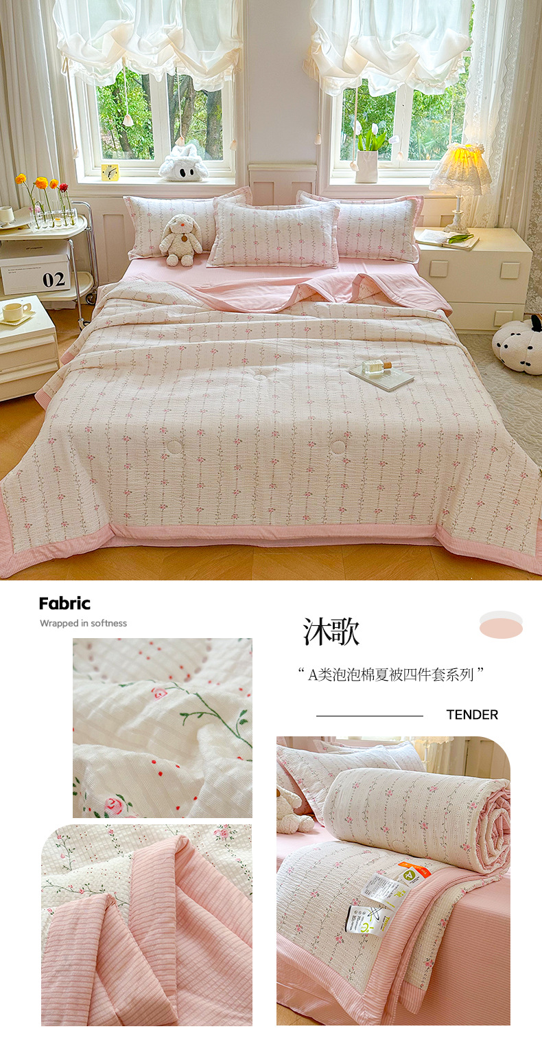 새로운 클래스 A 엄마와 유아 학년 거품 여름 이불 네 조각 피부 친화적 인 여름 시원한 이불 침대 모자 작은 신선한 에어컨 퀼트