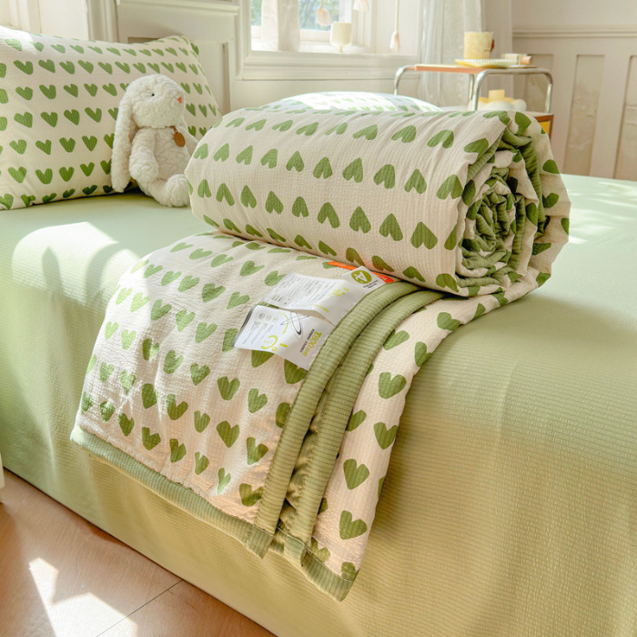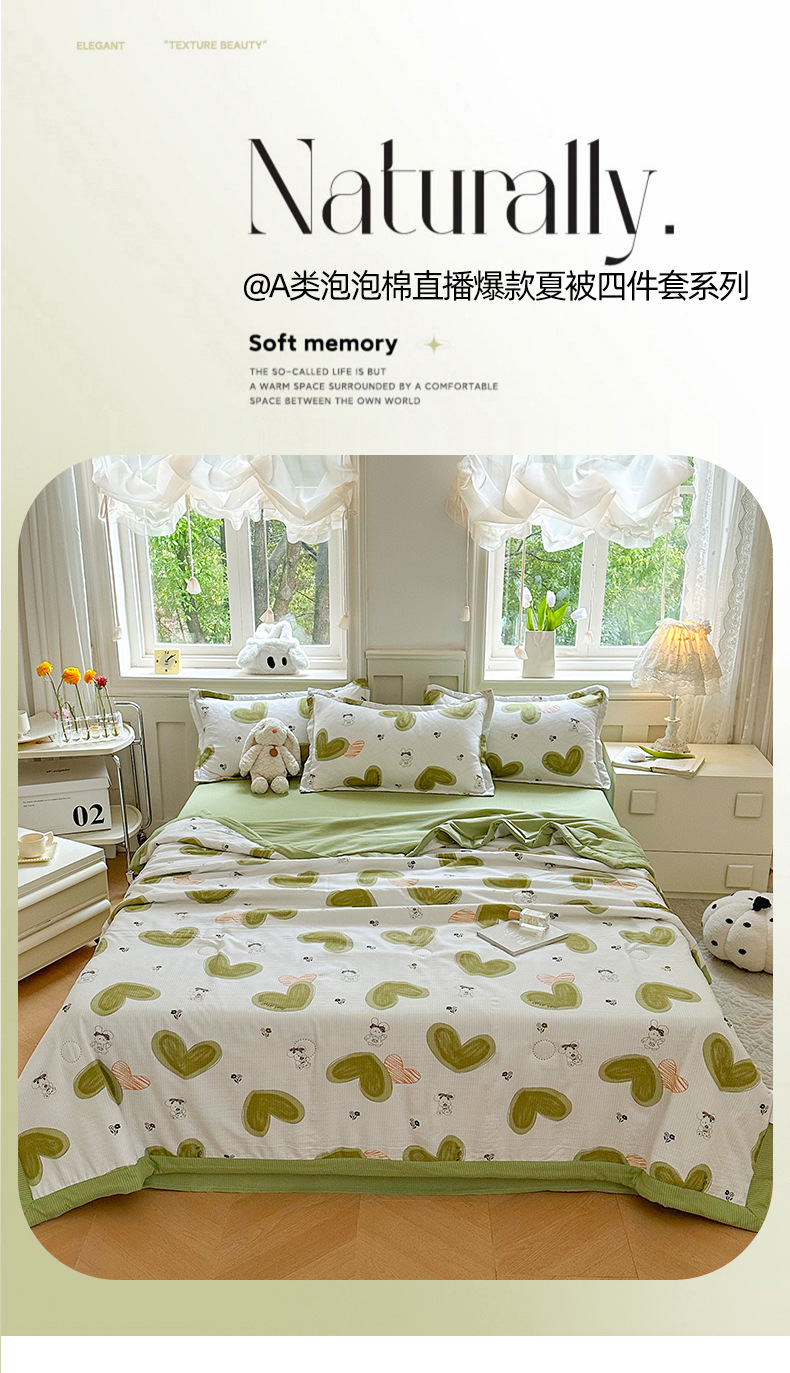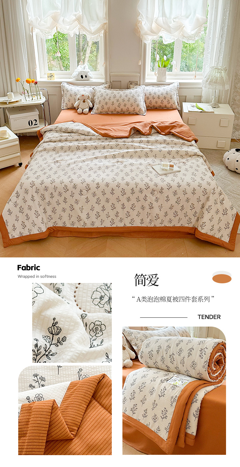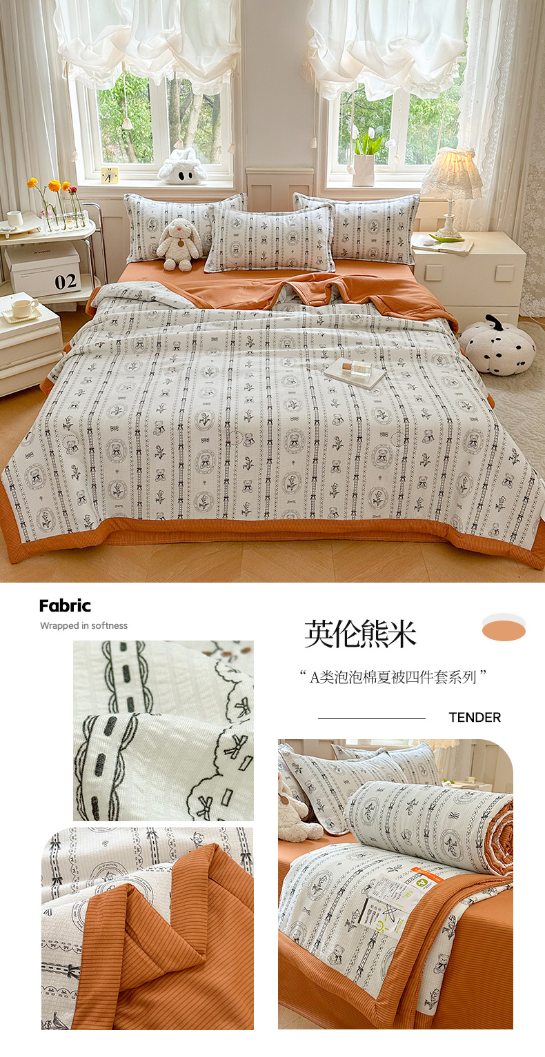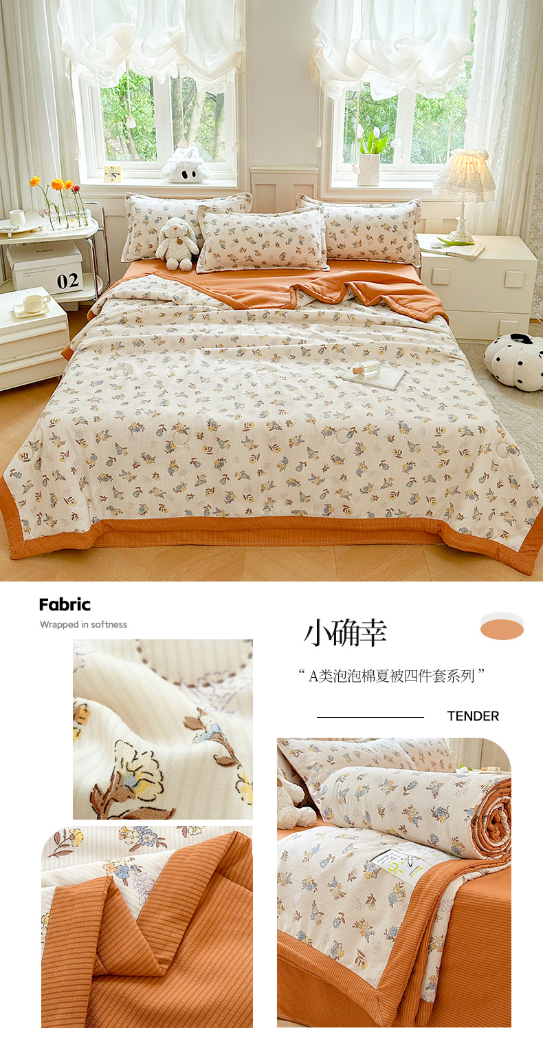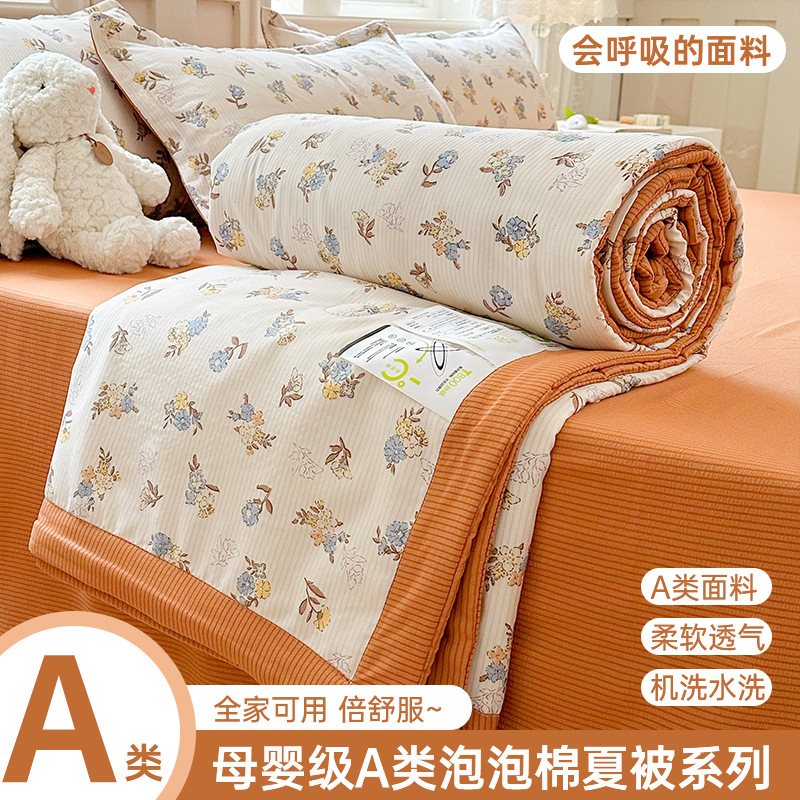 새로운 클래스 A 엄마와 유아 학년 거품 여름 이불 네 조각 피부 친화적 인 여름 시원한 이불 침대 모자 작은 신선한 에어컨 퀼트