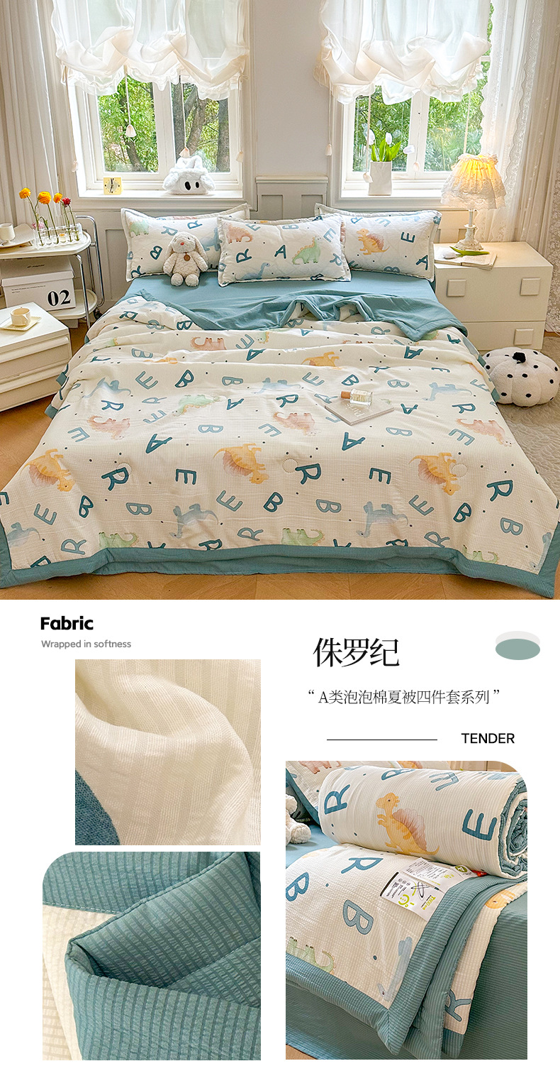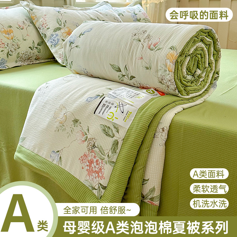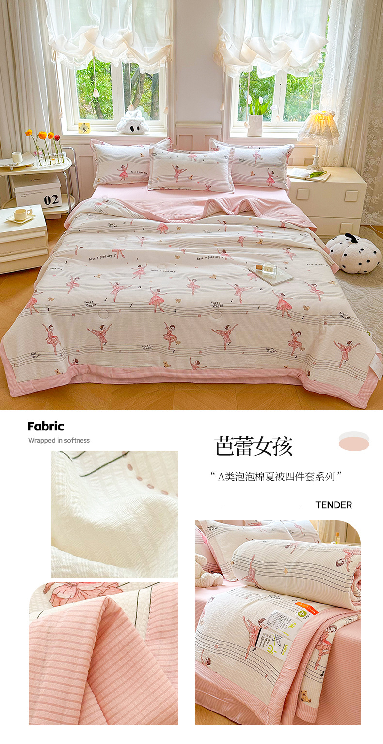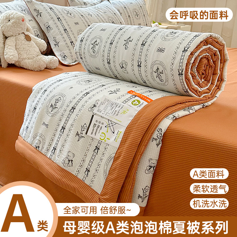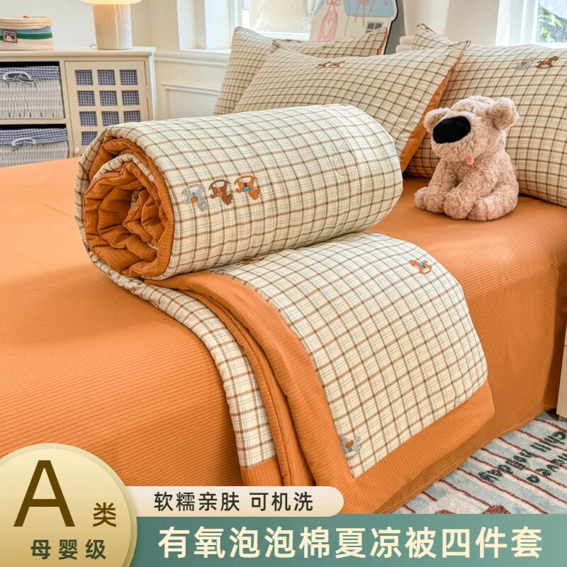 새로운 클래스 A 엄마와 유아 학년 거품 여름 이불 네 조각 피부 친화적 인 여름 시원한 이불 침대 모자 작은 신선한 에어컨 퀼트스토어 가기
