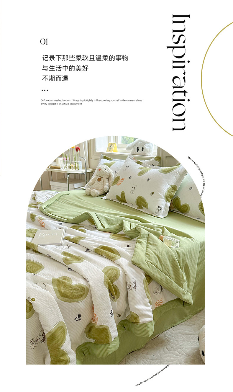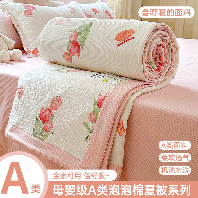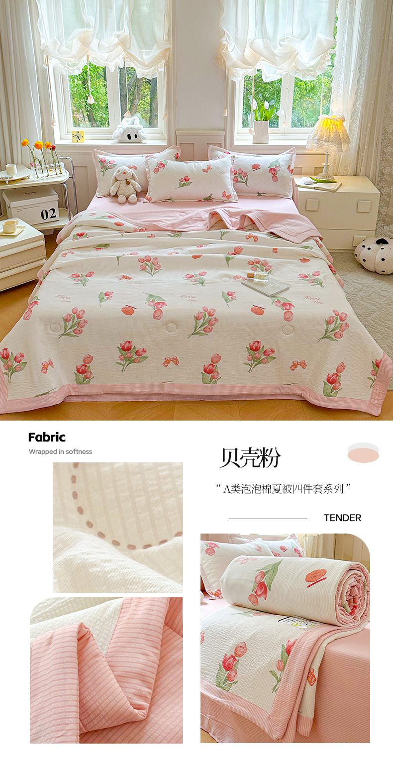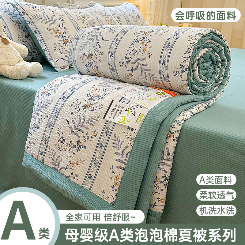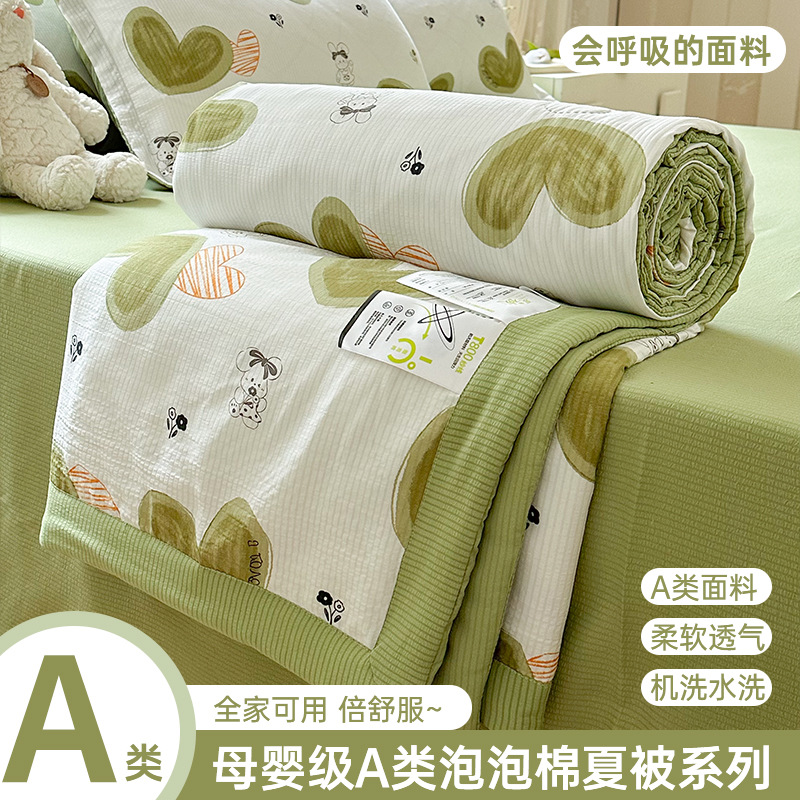 새로운 클래스 A 엄마와 유아 학년 거품 여름 이불 네 조각 피부 친화적 인 여름 시원한 이불 침대 모자 작은 신선한 에어컨 퀼트스토어 가기
