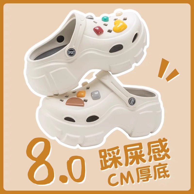 8.0 슈퍼 두꺼운 하단 에바 홀 신발 여성의 2024 새로운 도착 비 슬립 탈취제 여름 해변 샌들